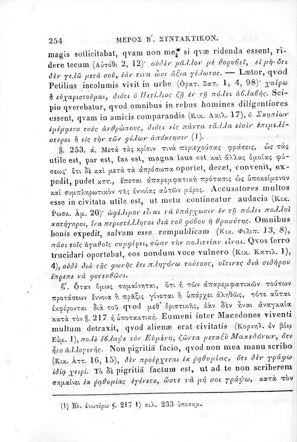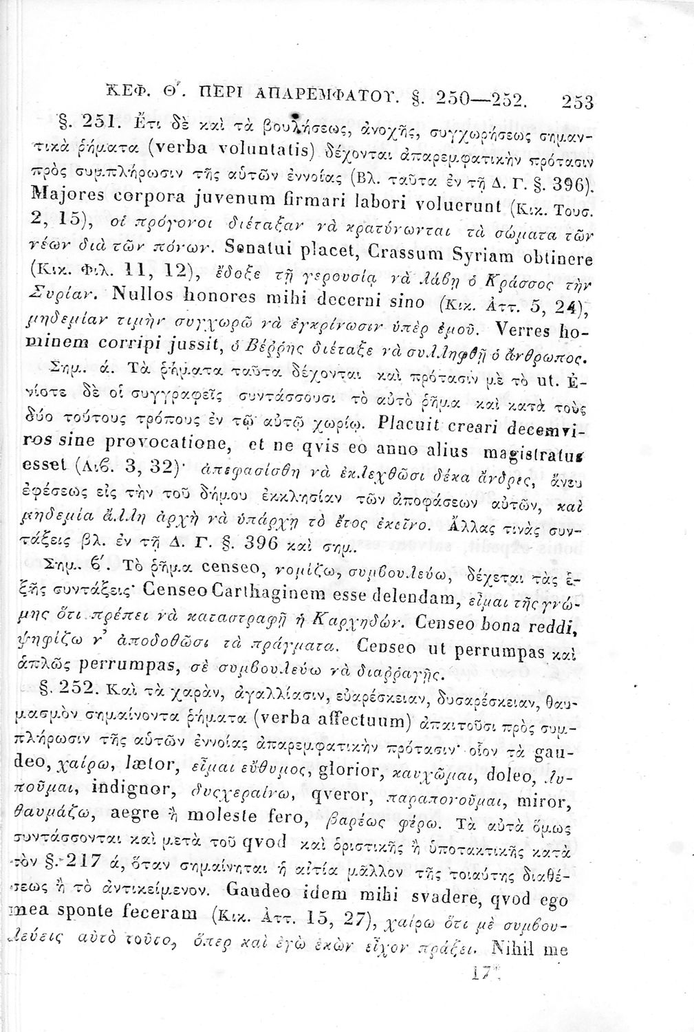 Γραμματικής της λατινικής γλώσσας για τα Ελληνικά Σχολεία και Γυμνάσια που περιέχει δύο τμήματα: το τεχνολογικό που εστιάζει στα μέρη του λόγου και το συντακτικό που ασχολείται με τις πτώσεις, τις εγκλίσεις, ...