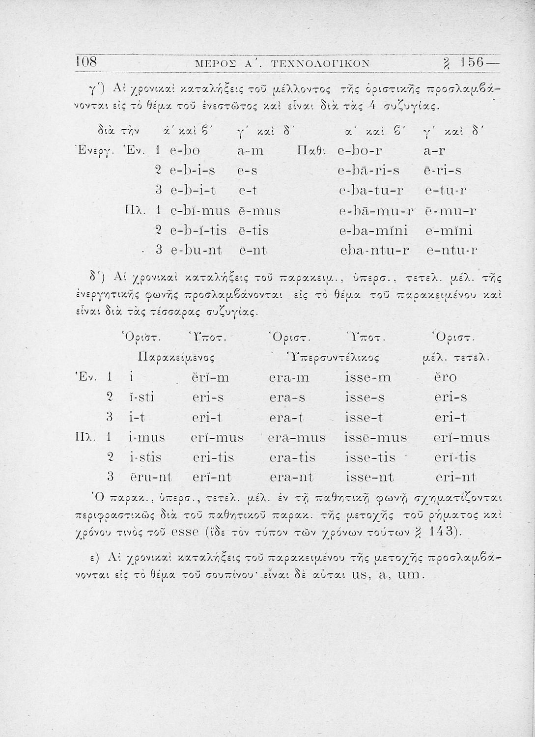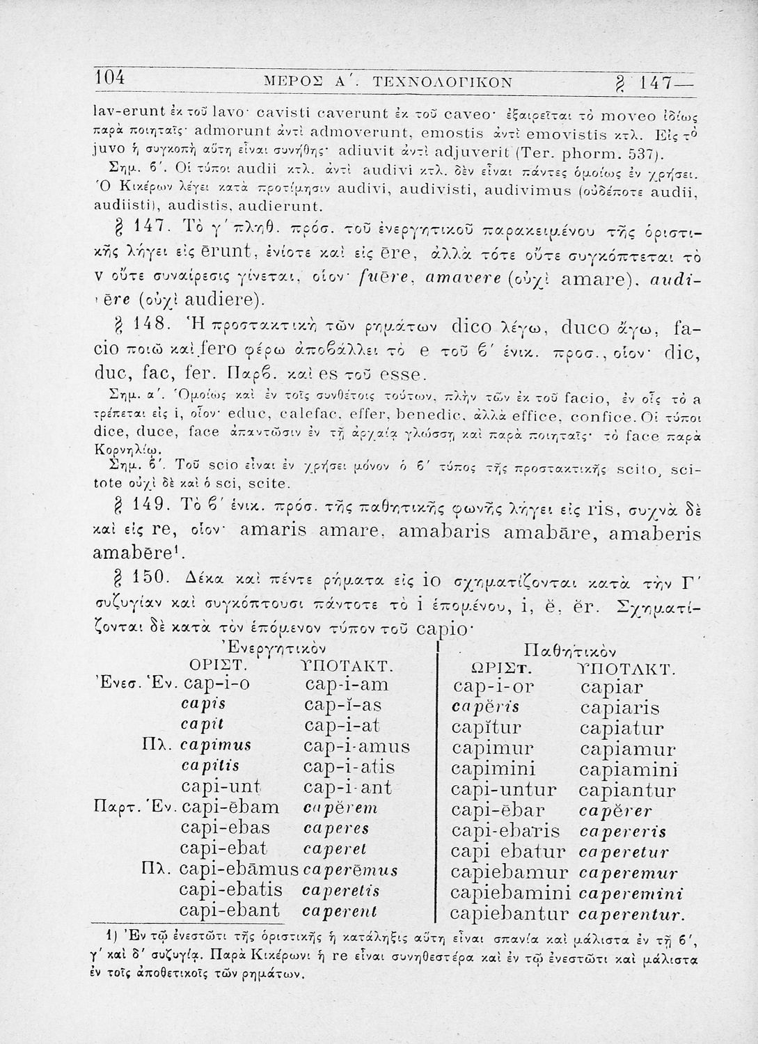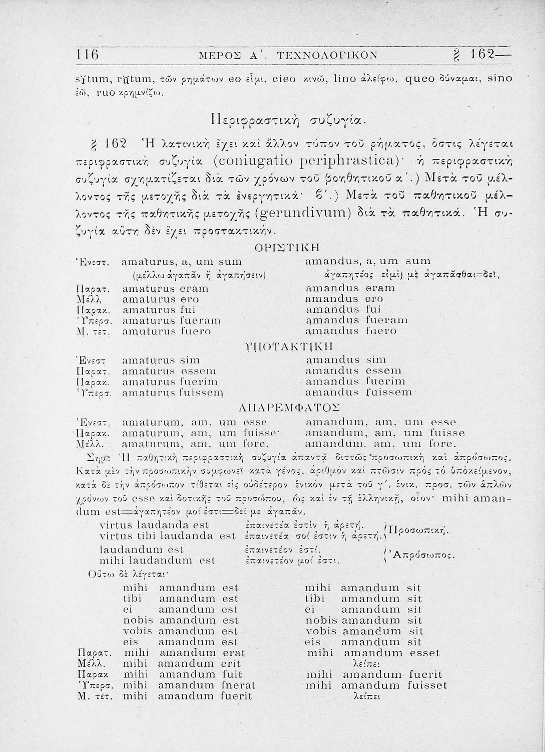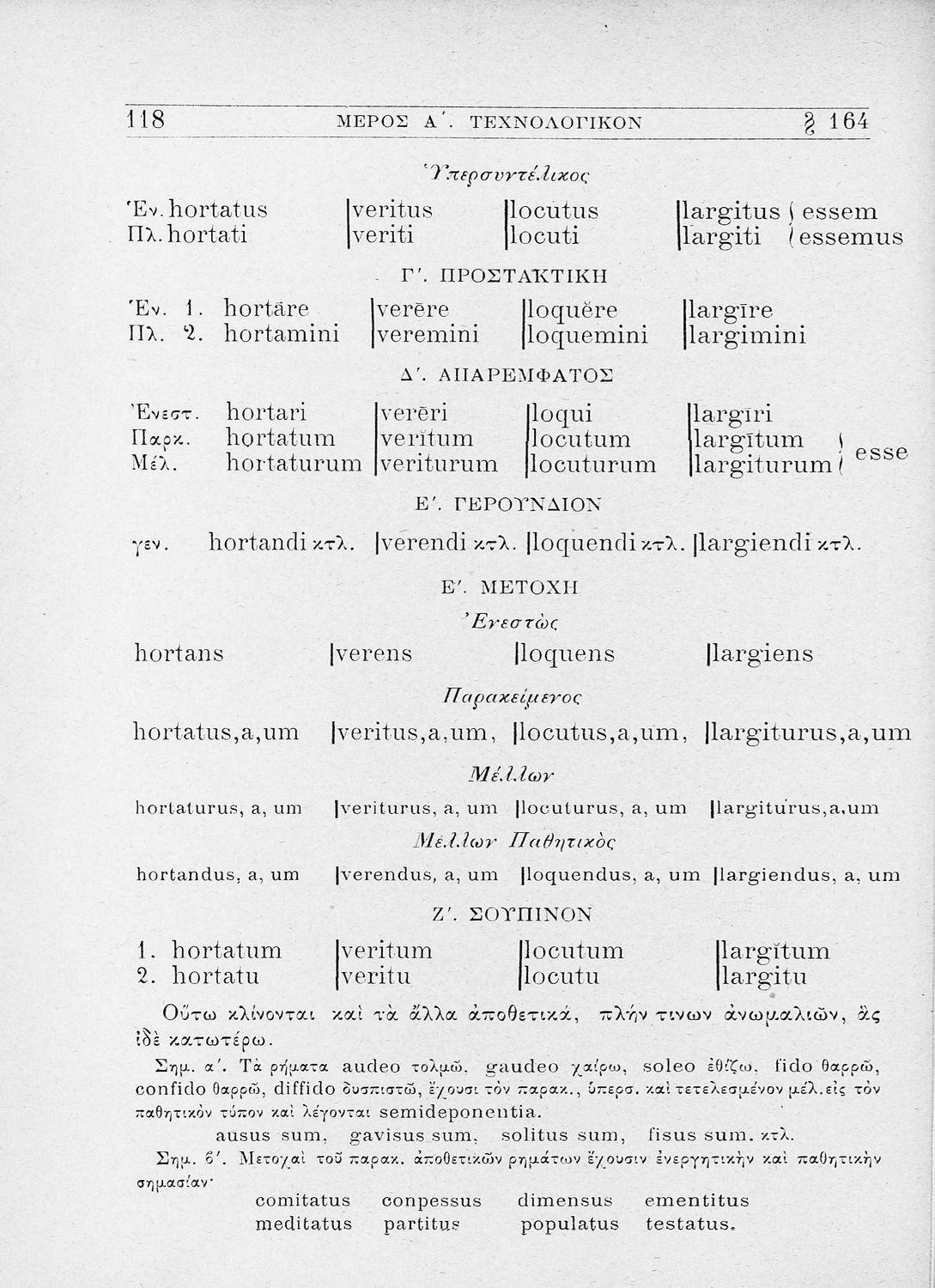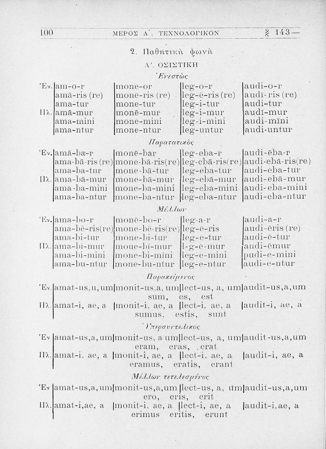 Λατινική γραμματική προς χρήσιν μαθητών Γυμνασίων εγκεκριμένη υπό του υπουργείου των εκκλησιαστικών και της δημόσιας εκπαιδεύσεως, μέρος Α΄, το "τεχνολογικόν"