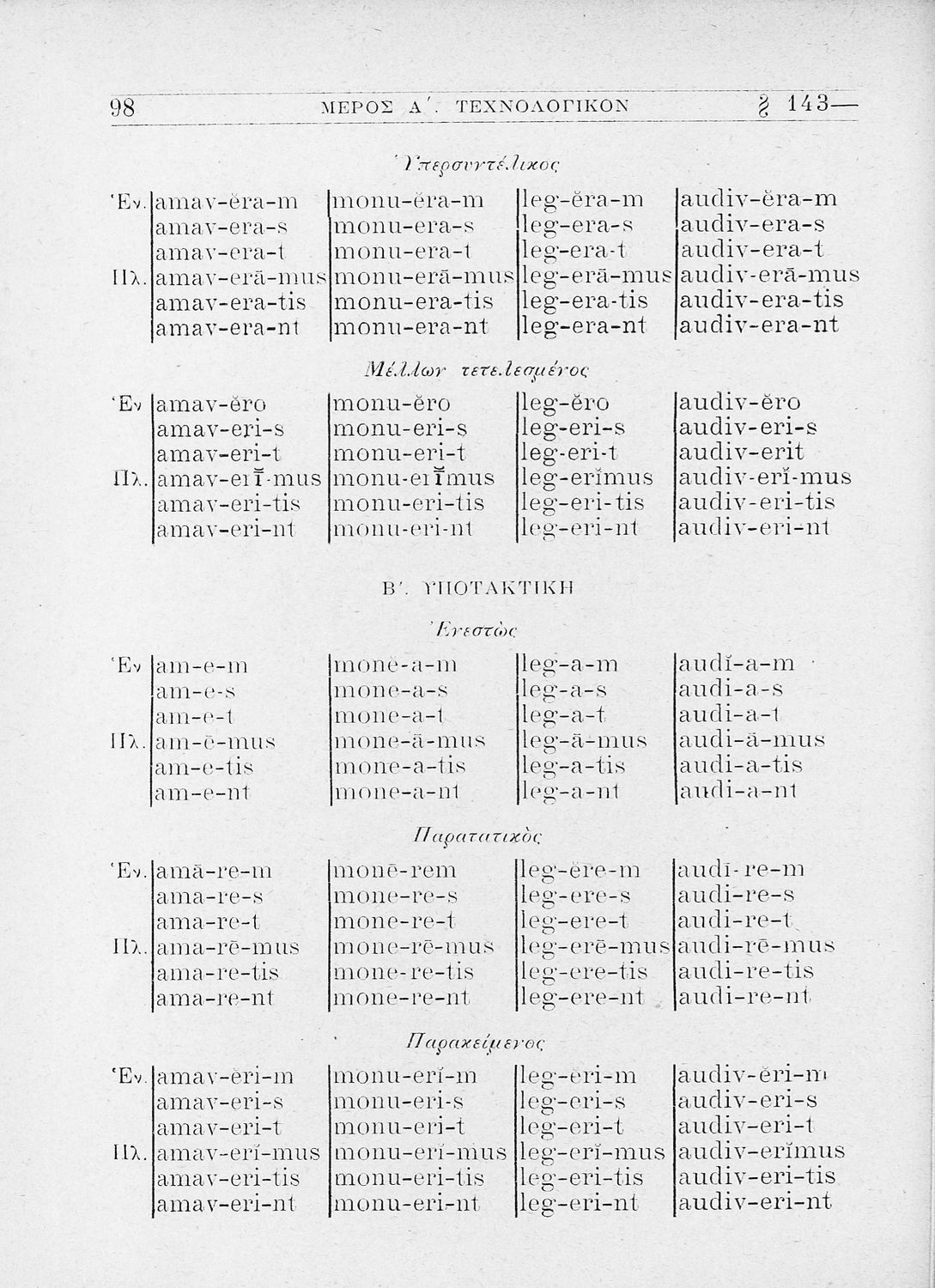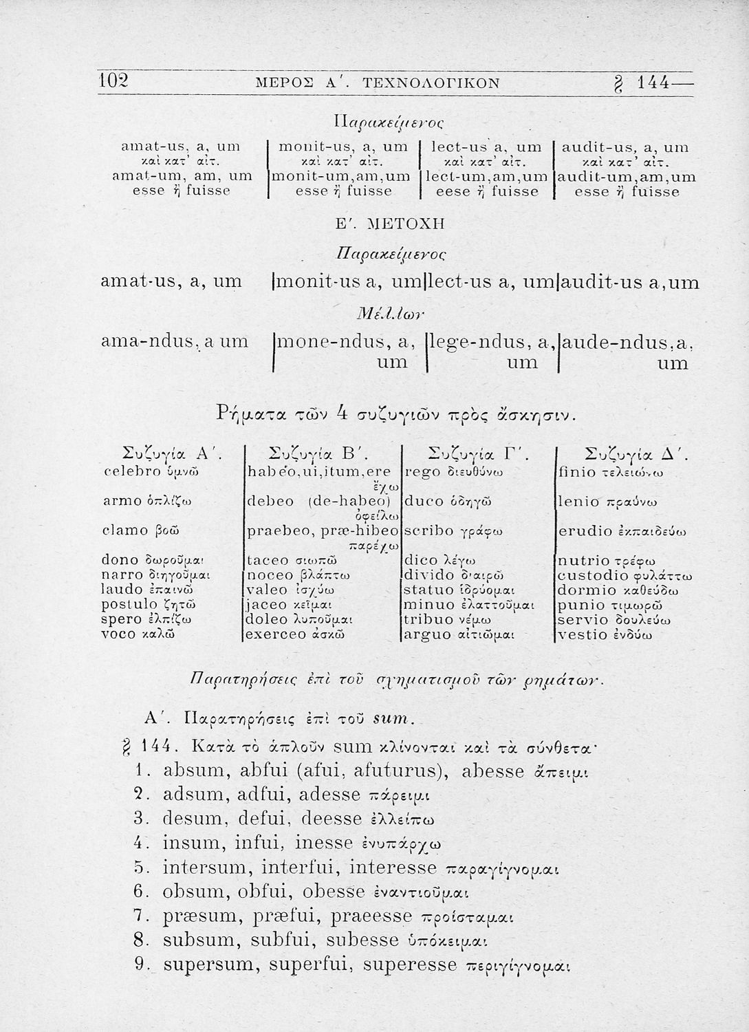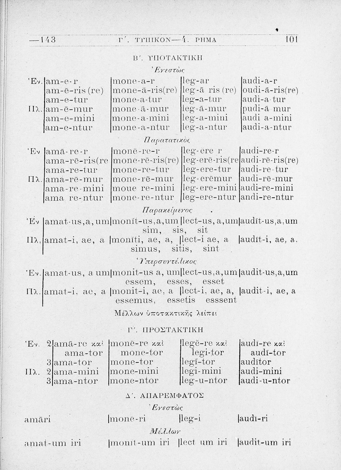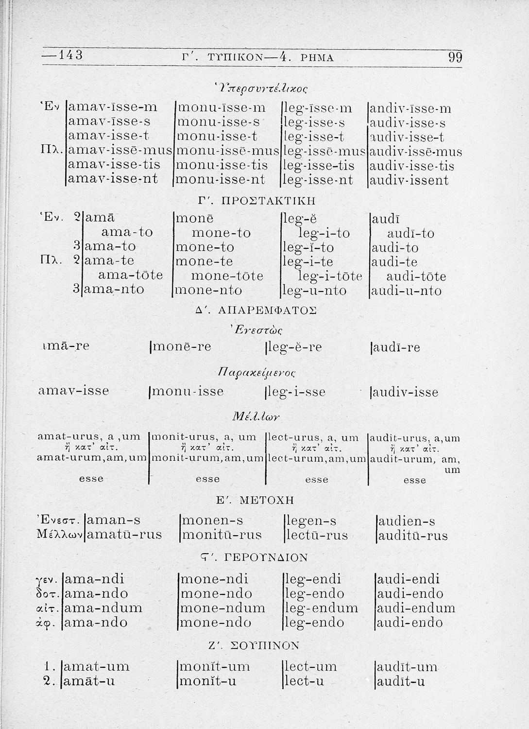 Λατινική γραμματική προς χρήσιν μαθητών Γυμνασίων εγκεκριμένη υπό του υπουργείου των εκκλησιαστικών και της δημόσιας εκπαιδεύσεως, μέρος Α΄, το "τεχνολογικόν"