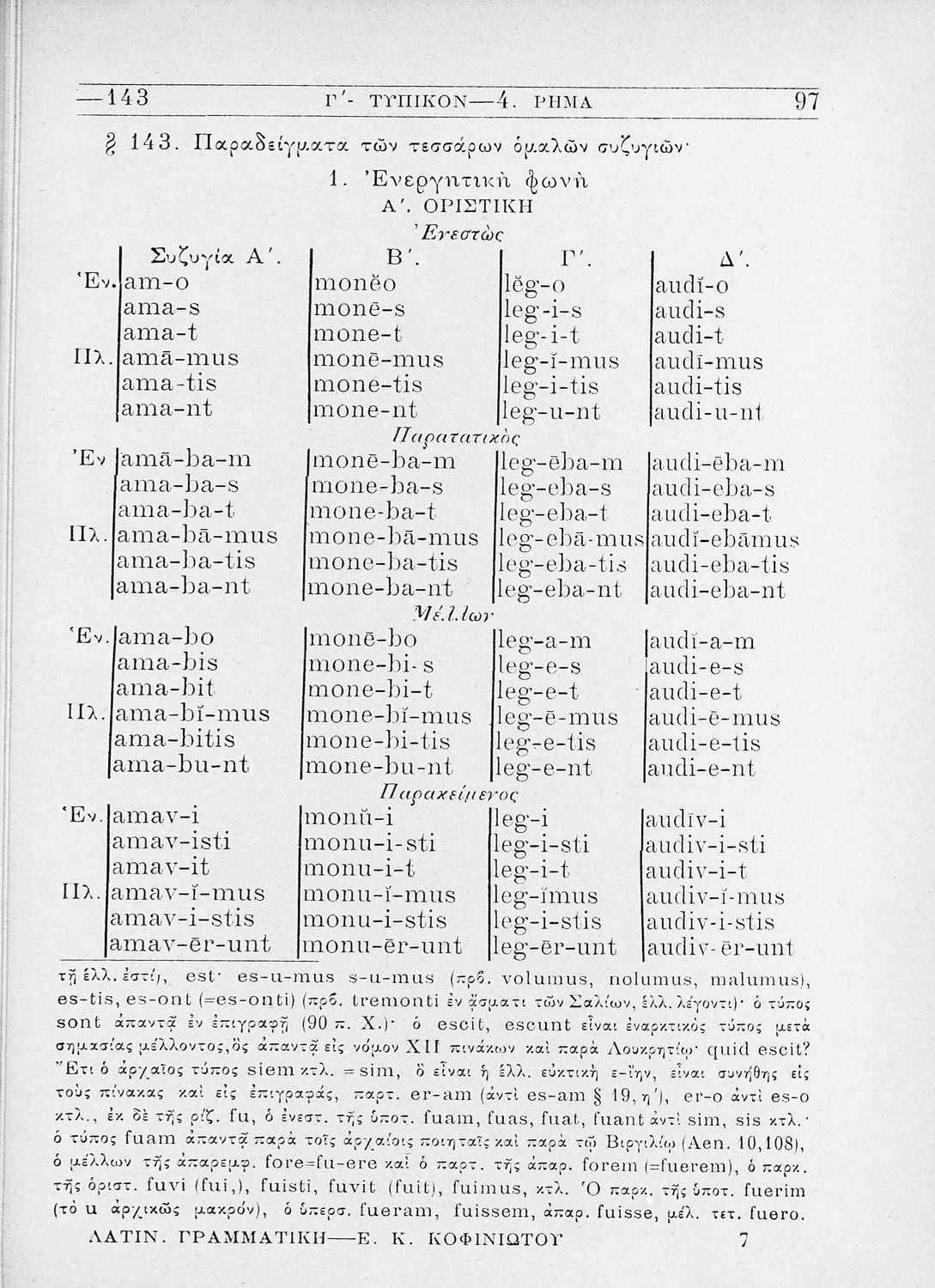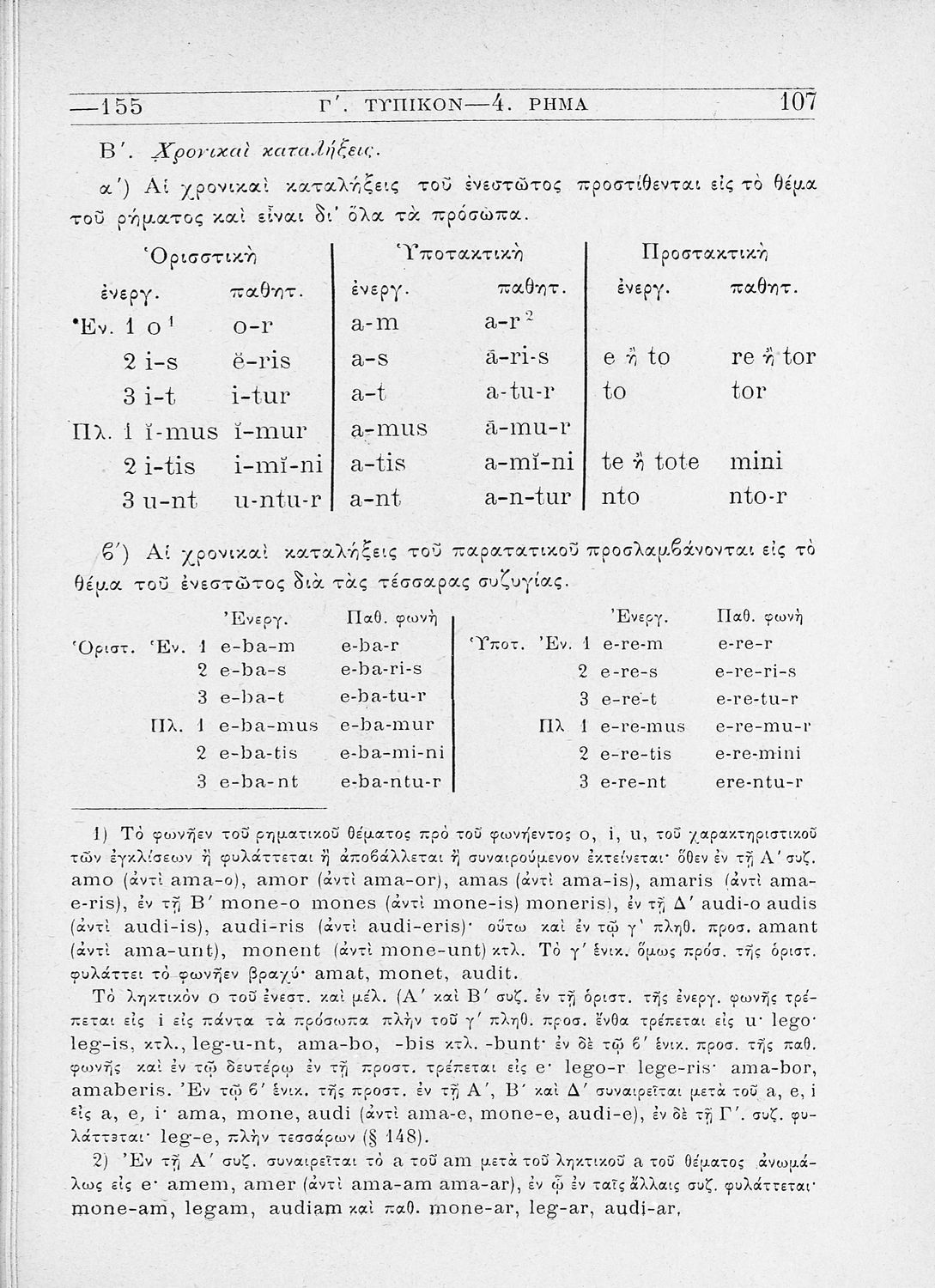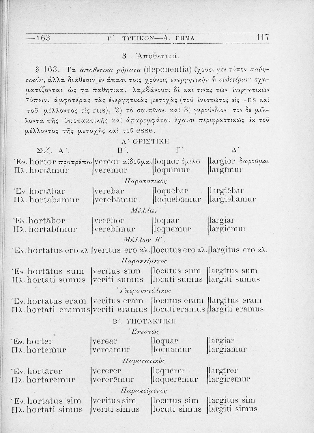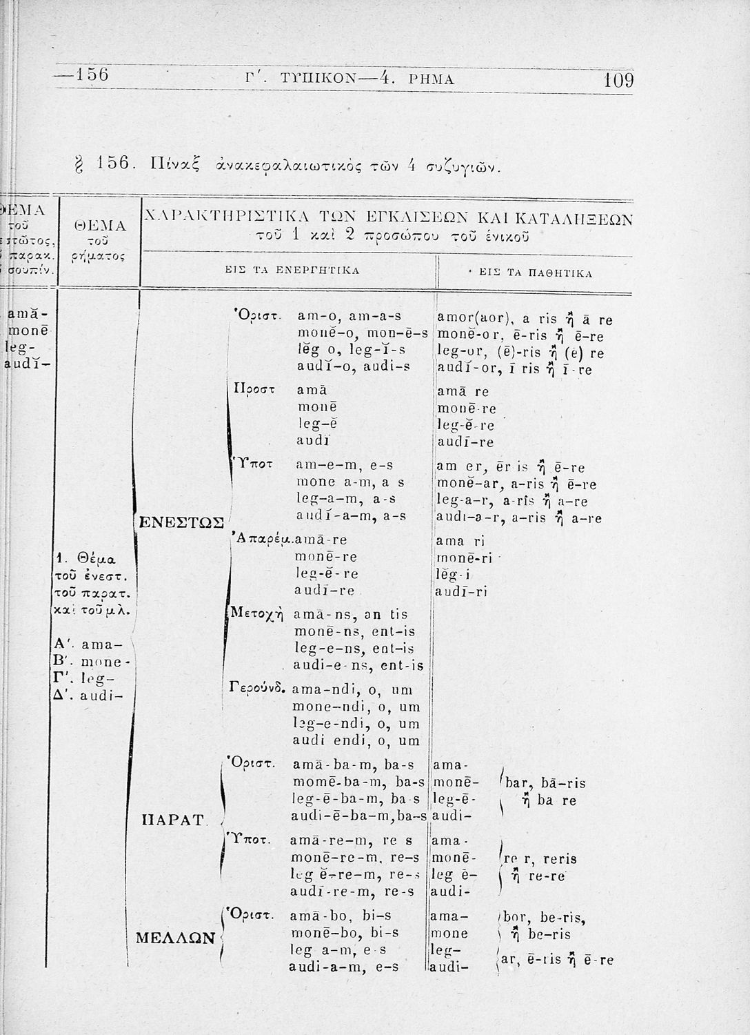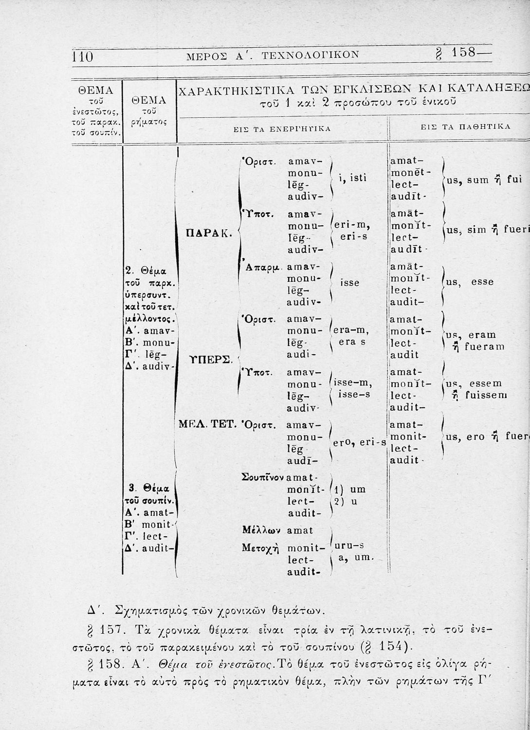 Λατινική γραμματική προς χρήσιν μαθητών Γυμνασίων εγκεκριμένη υπό του υπουργείου των εκκλησιαστικών και της δημόσιας εκπαιδεύσεως, μέρος Α΄, το "τεχνολογικόν"