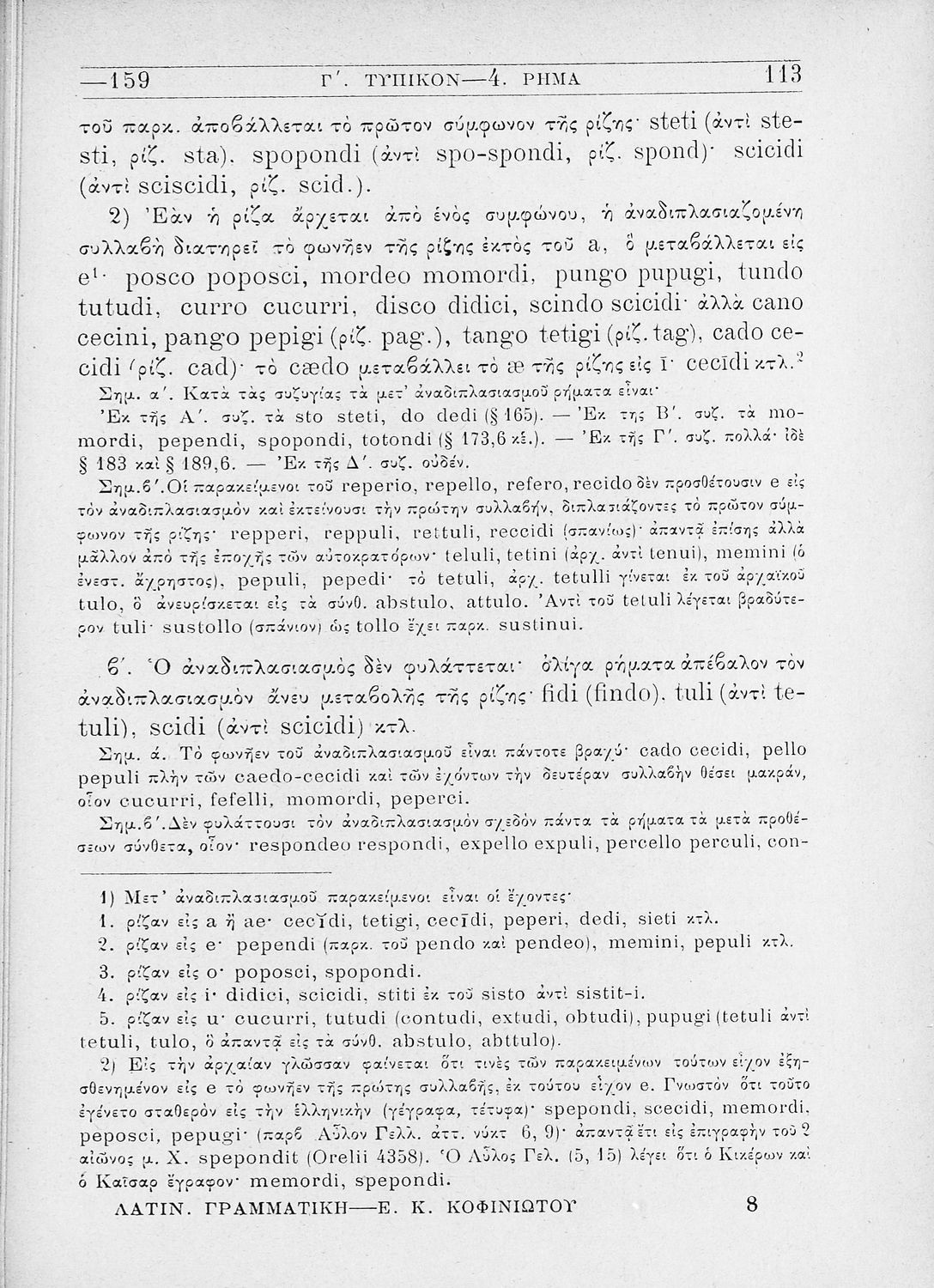 Σχολικό εγχειρίδιο Λατινικών που περιλαμβάνει τη γραμματική της λατινικής και είναι χωρισμένο στο τεχνολογικό, το τυπολογικό και το ετυμολογικό μέρος.