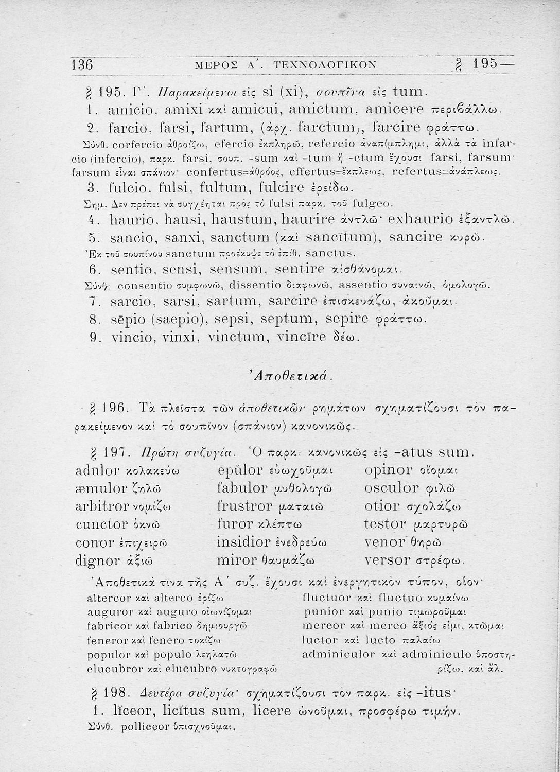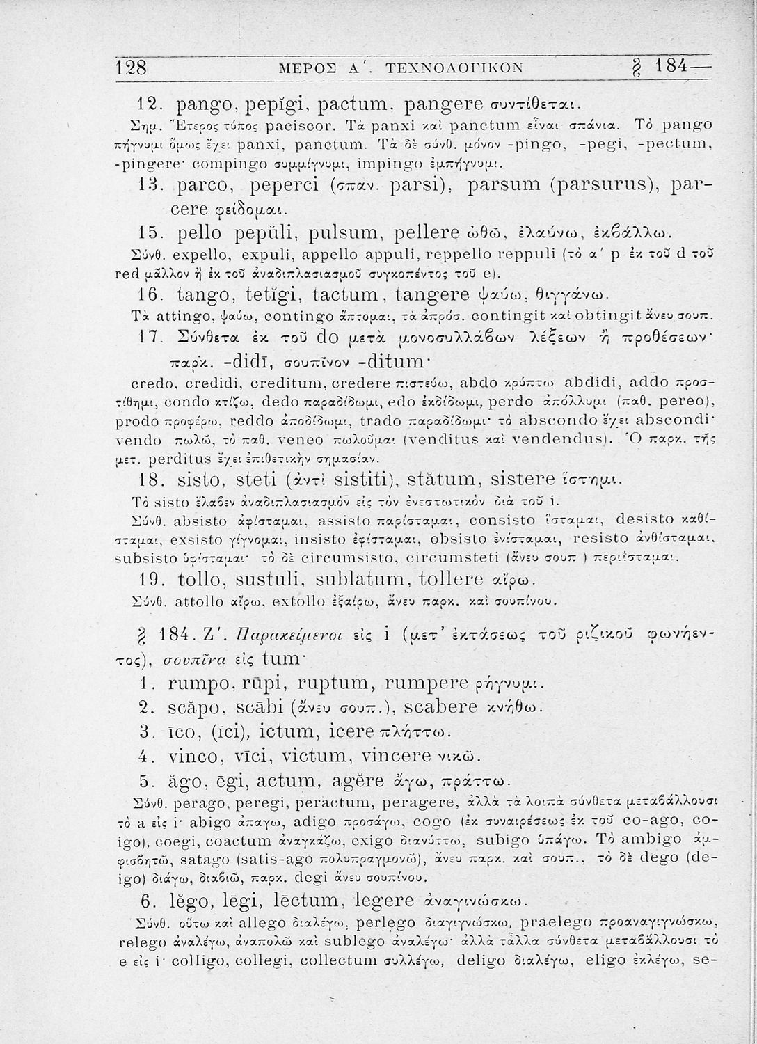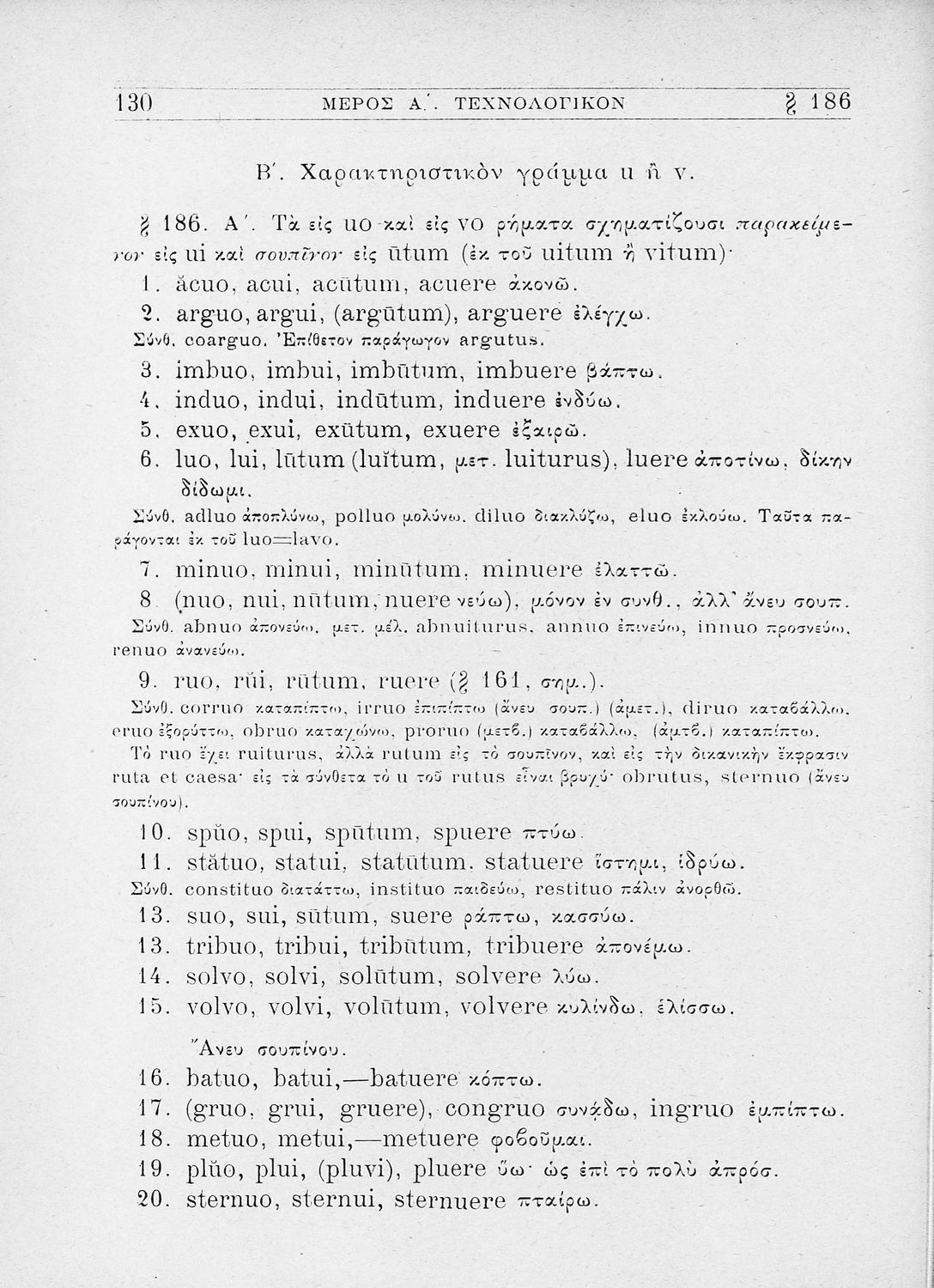 Λατινική γραμματική προς χρήσιν μαθητών Γυμνασίων εγκεκριμένη υπό του υπουργείου των εκκλησιαστικών και της δημόσιας εκπαιδεύσεως, μέρος Α΄, το "τεχνολογικόν"