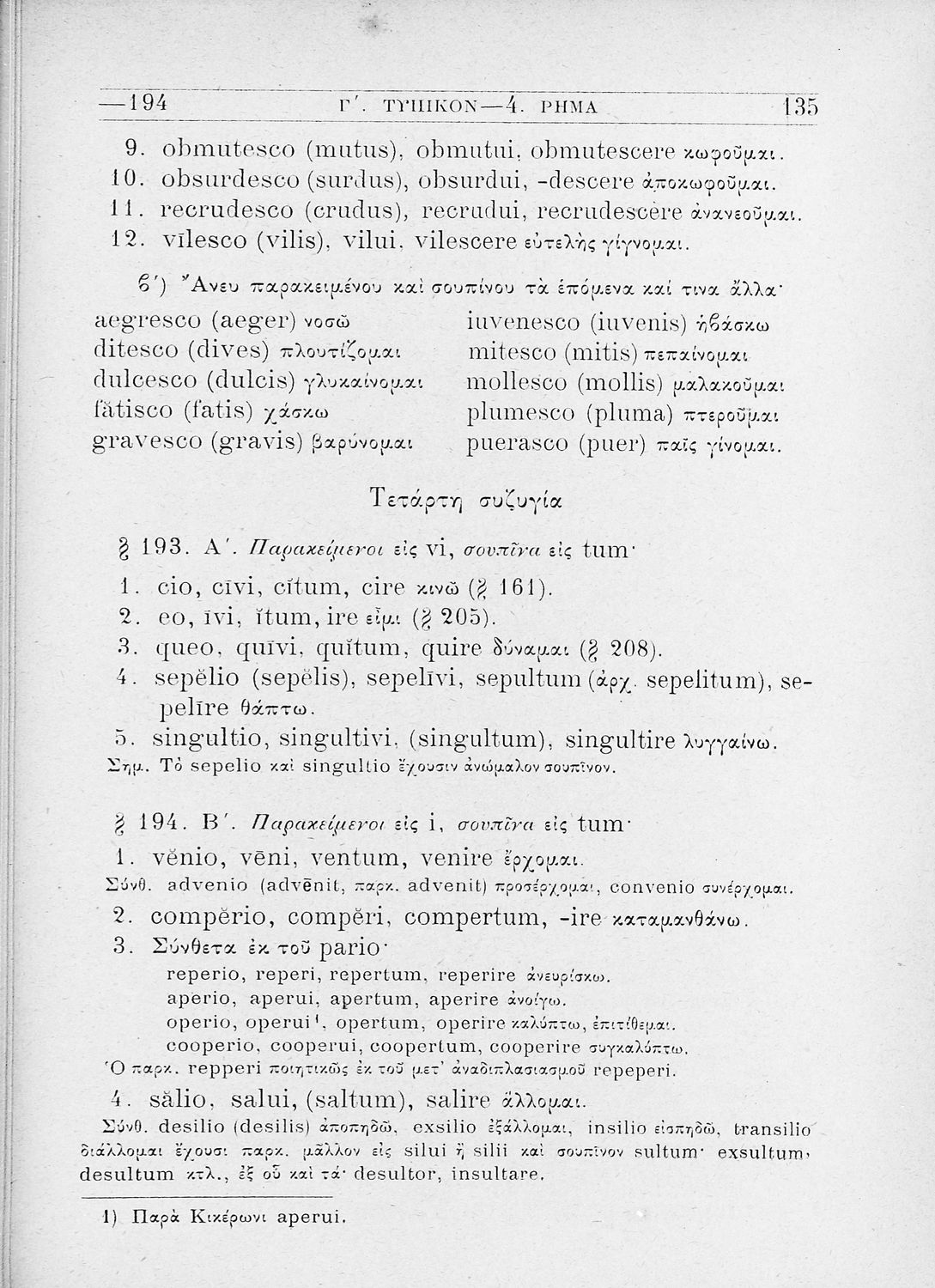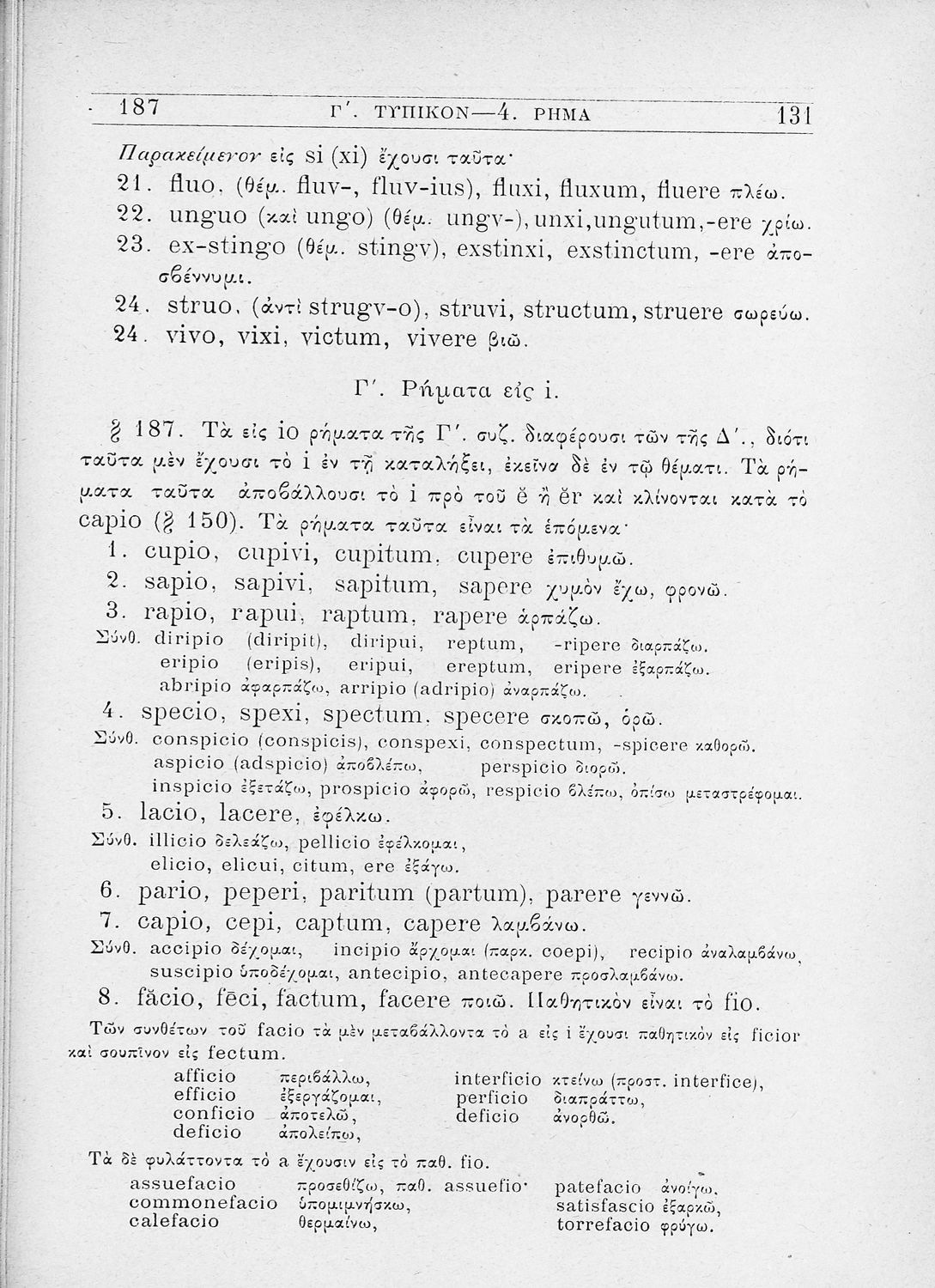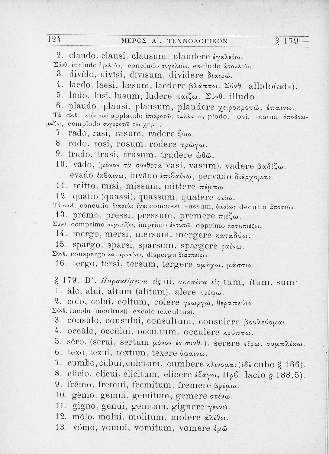 Λατινική γραμματική προς χρήσιν μαθητών Γυμνασίων εγκεκριμένη υπό του υπουργείου των εκκλησιαστικών και της δημόσιας εκπαιδεύσεως, μέρος Α΄, το "τεχνολογικόν"