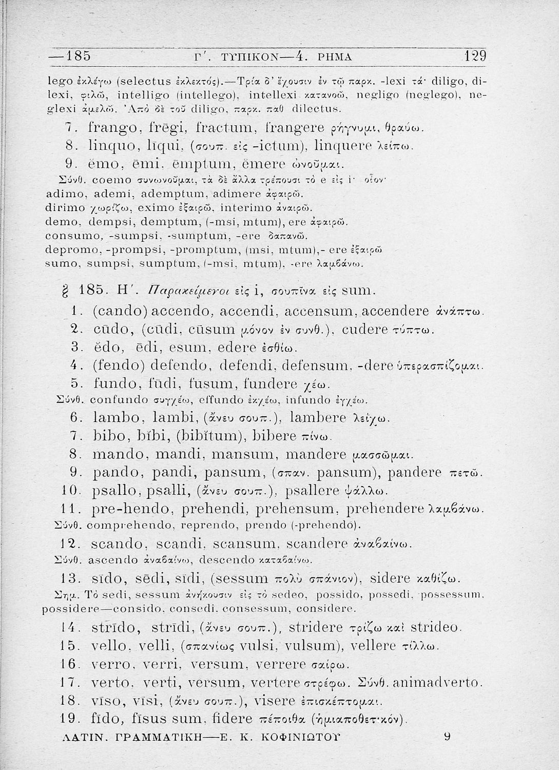 Σχολικό εγχειρίδιο Λατινικών που περιλαμβάνει τη γραμματική της λατινικής και είναι χωρισμένο στο τεχνολογικό, το τυπολογικό και το ετυμολογικό μέρος.