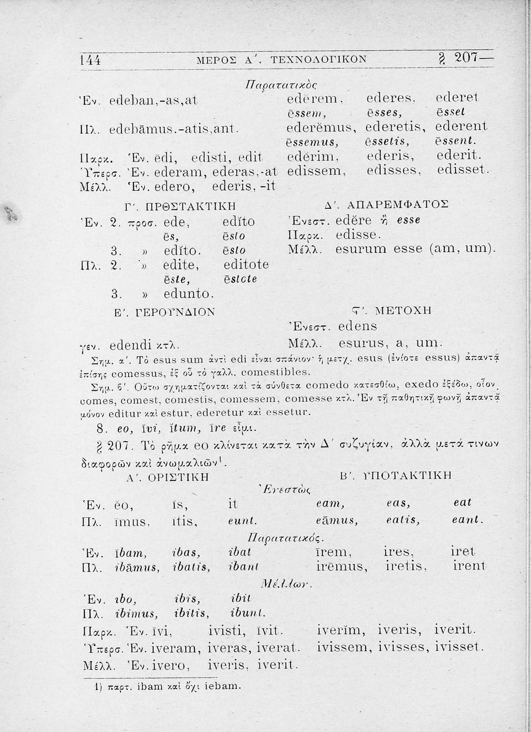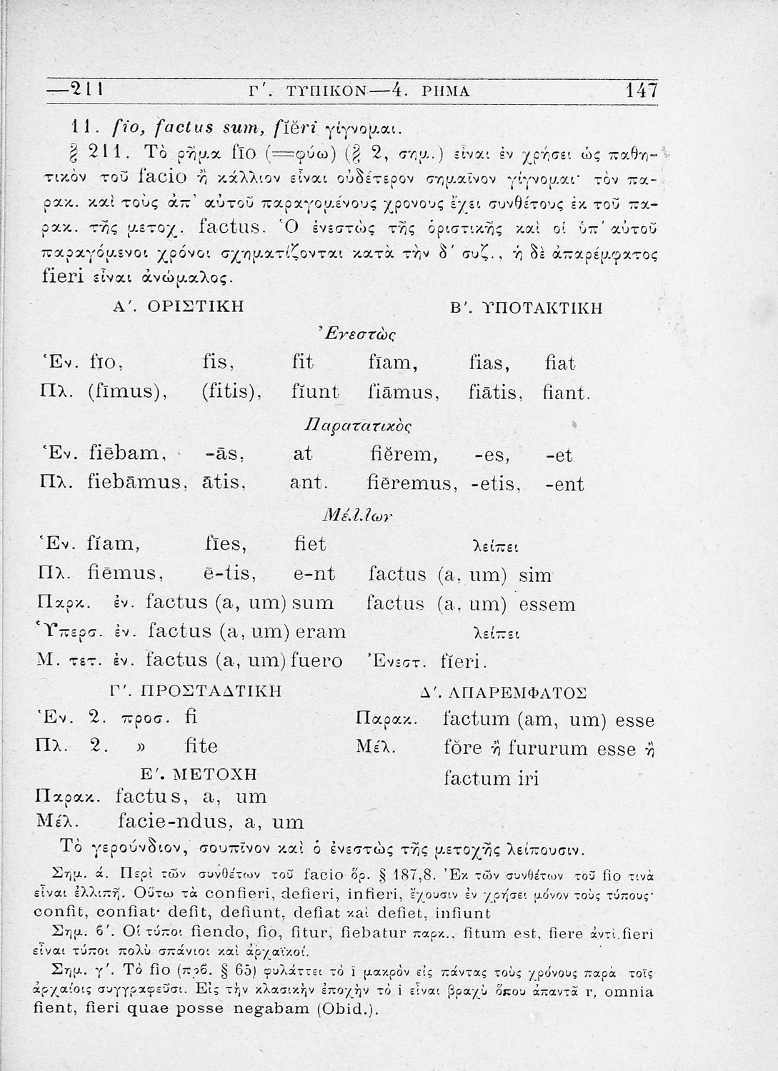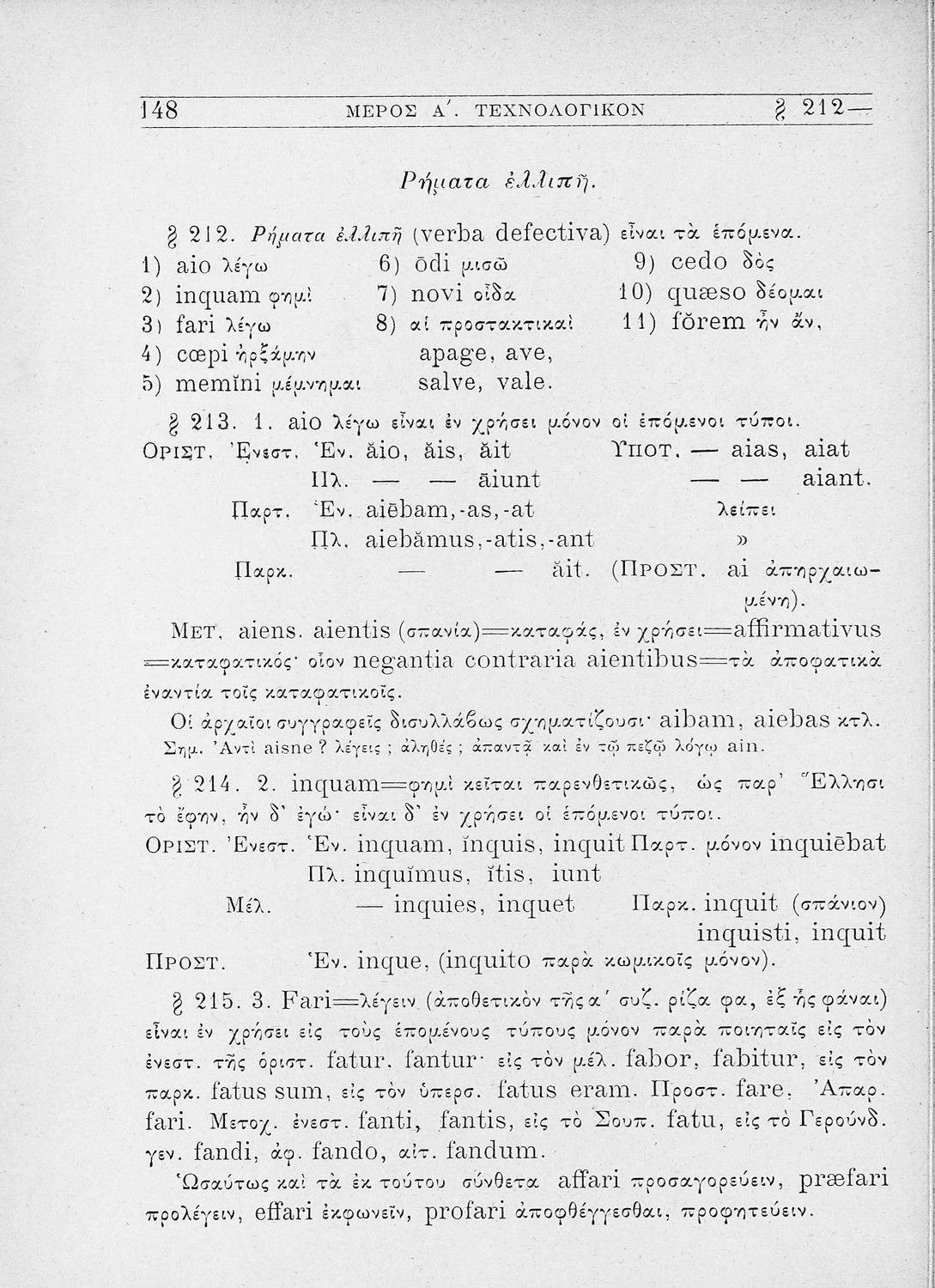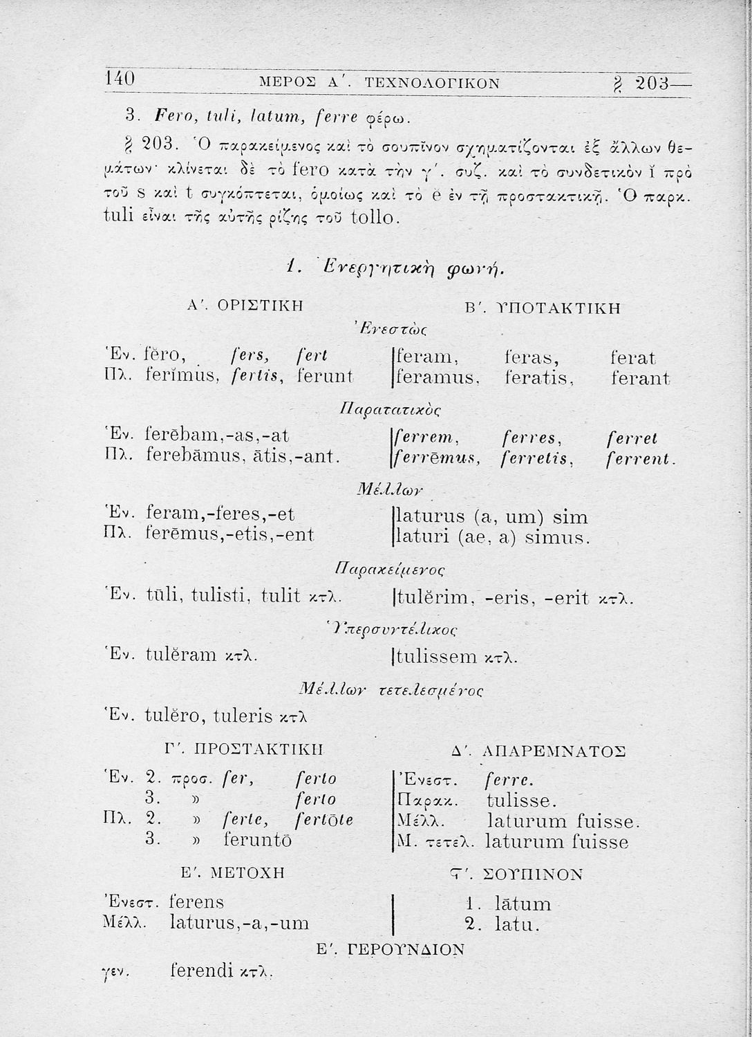 Λατινική γραμματική προς χρήσιν μαθητών Γυμνασίων εγκεκριμένη υπό του υπουργείου των εκκλησιαστικών και της δημόσιας εκπαιδεύσεως, μέρος Α΄, το "τεχνολογικόν"