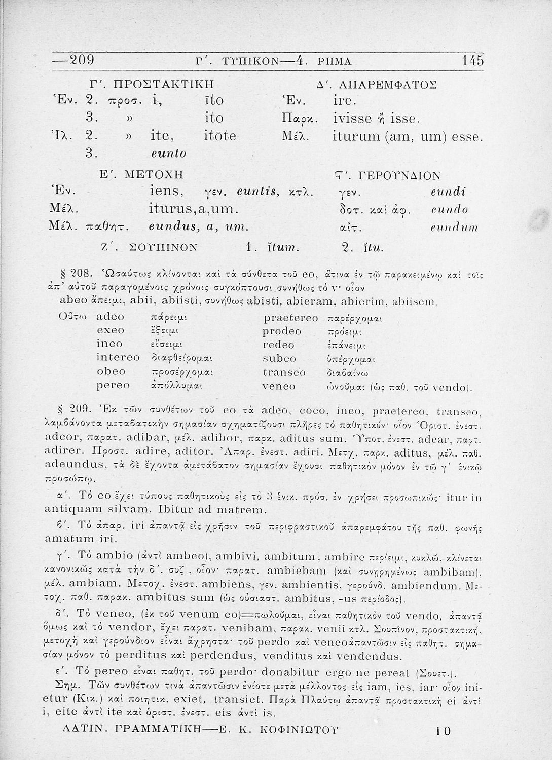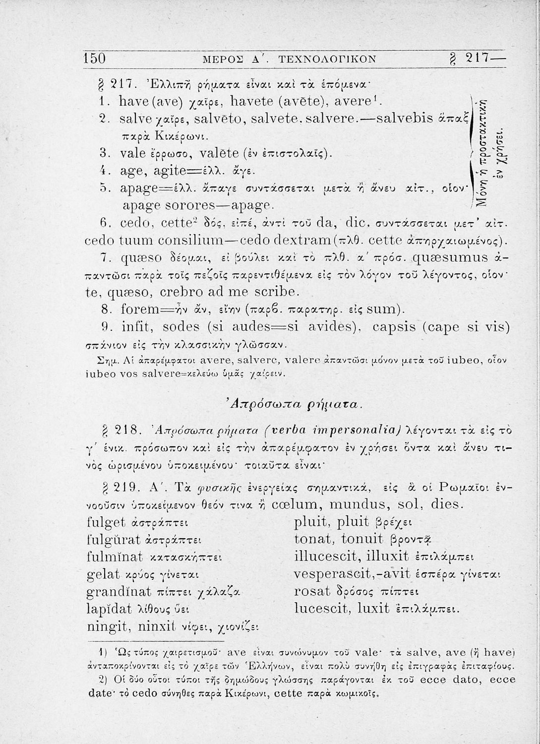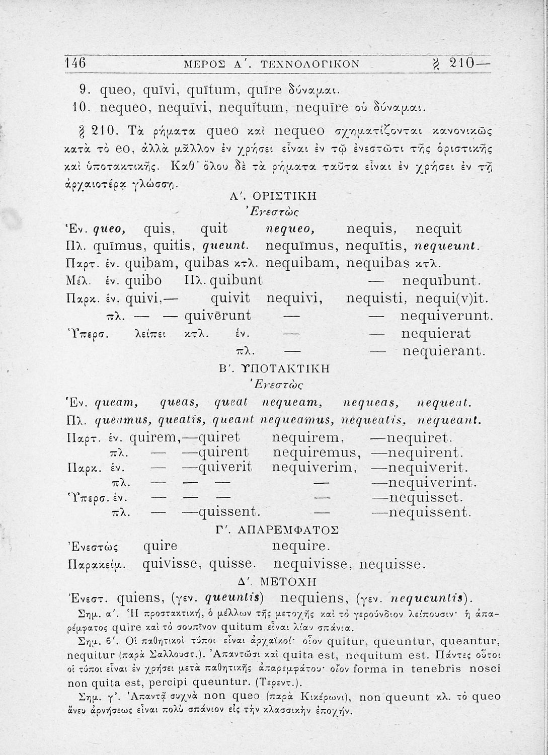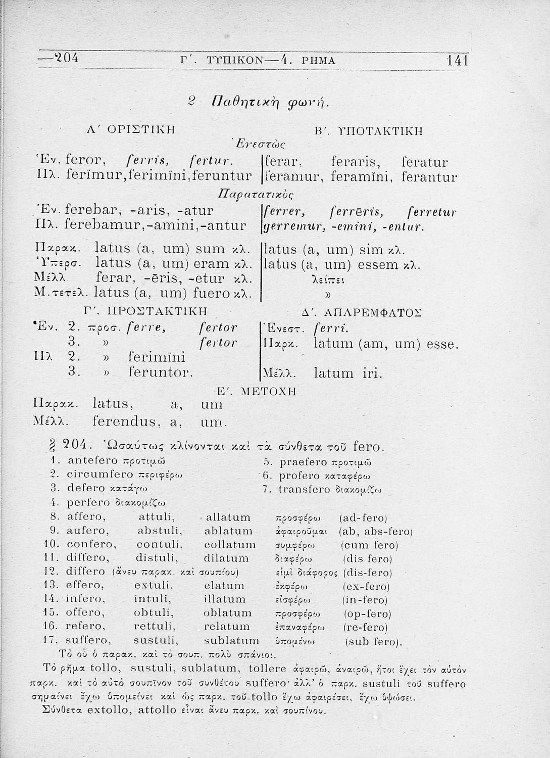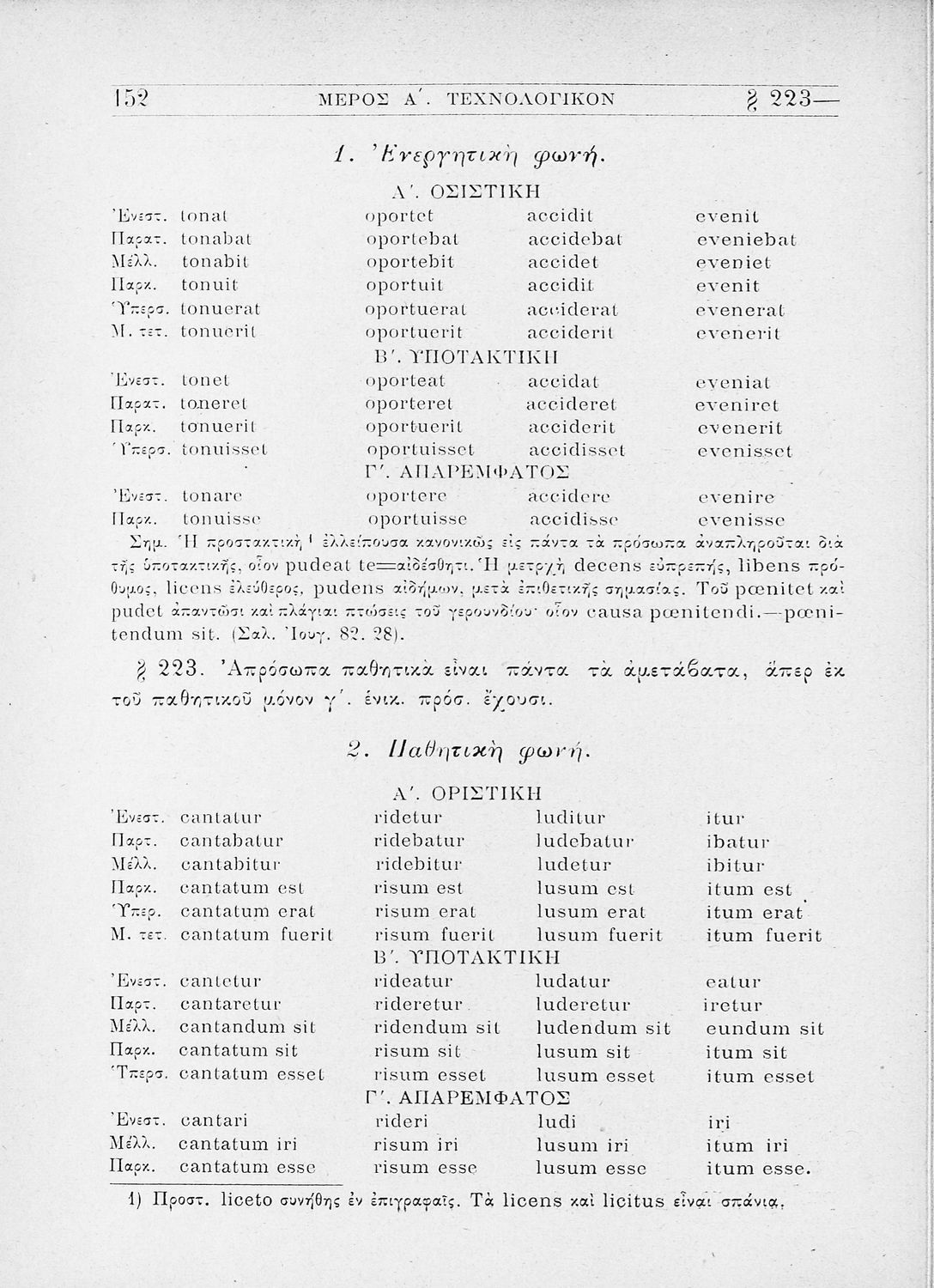 Λατινική γραμματική προς χρήσιν μαθητών Γυμνασίων εγκεκριμένη υπό του υπουργείου των εκκλησιαστικών και της δημόσιας εκπαιδεύσεως, μέρος Α΄, το "τεχνολογικόν"