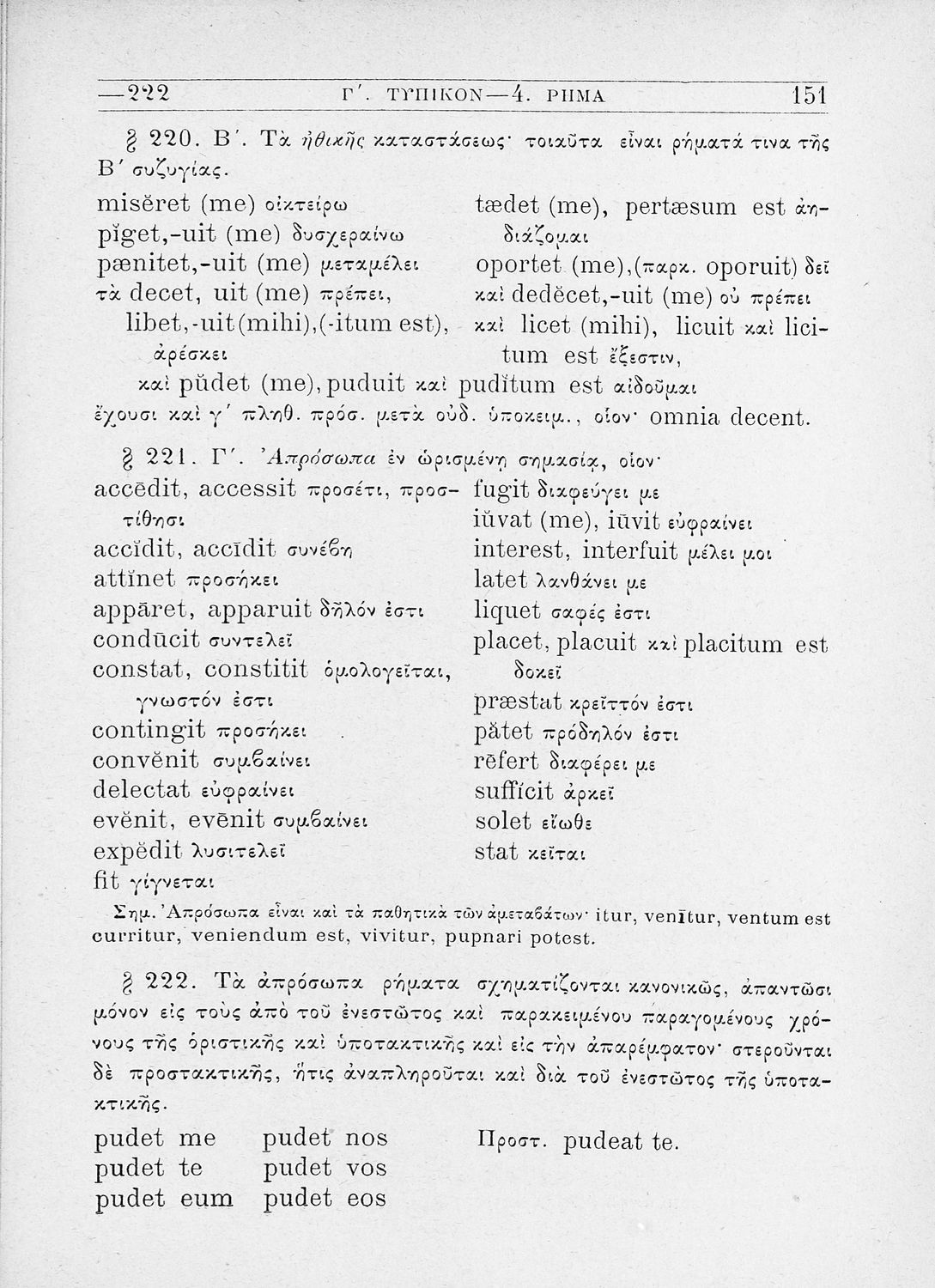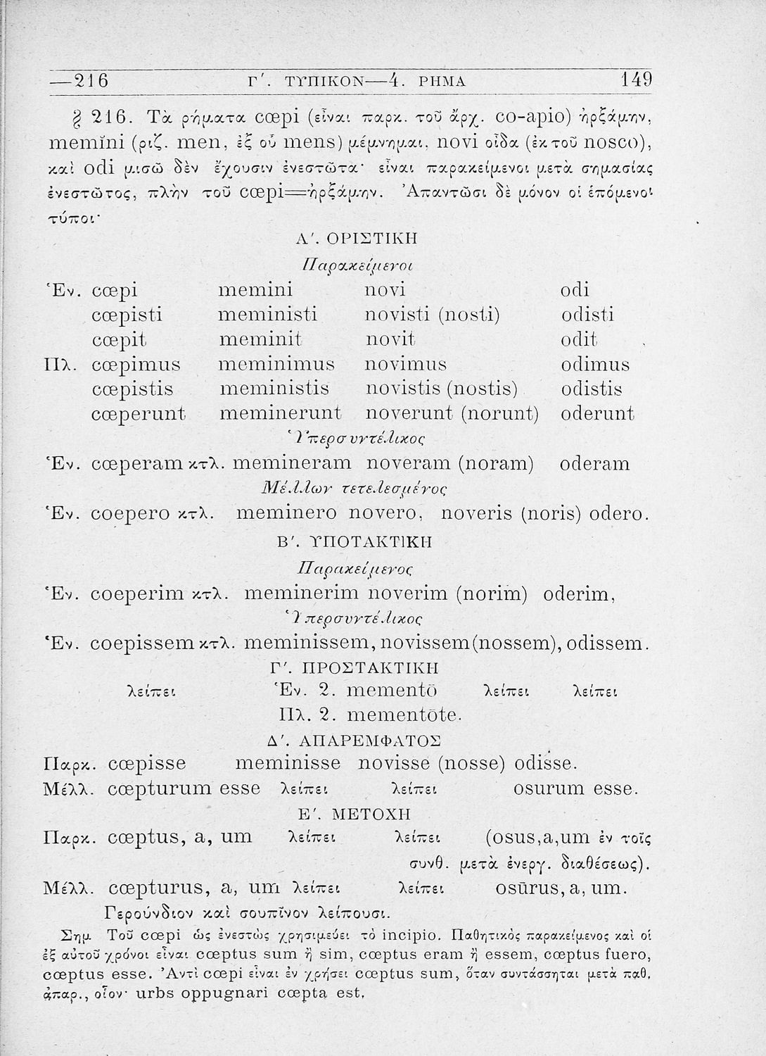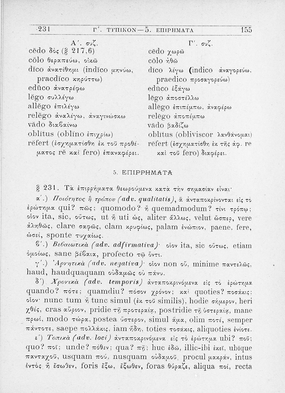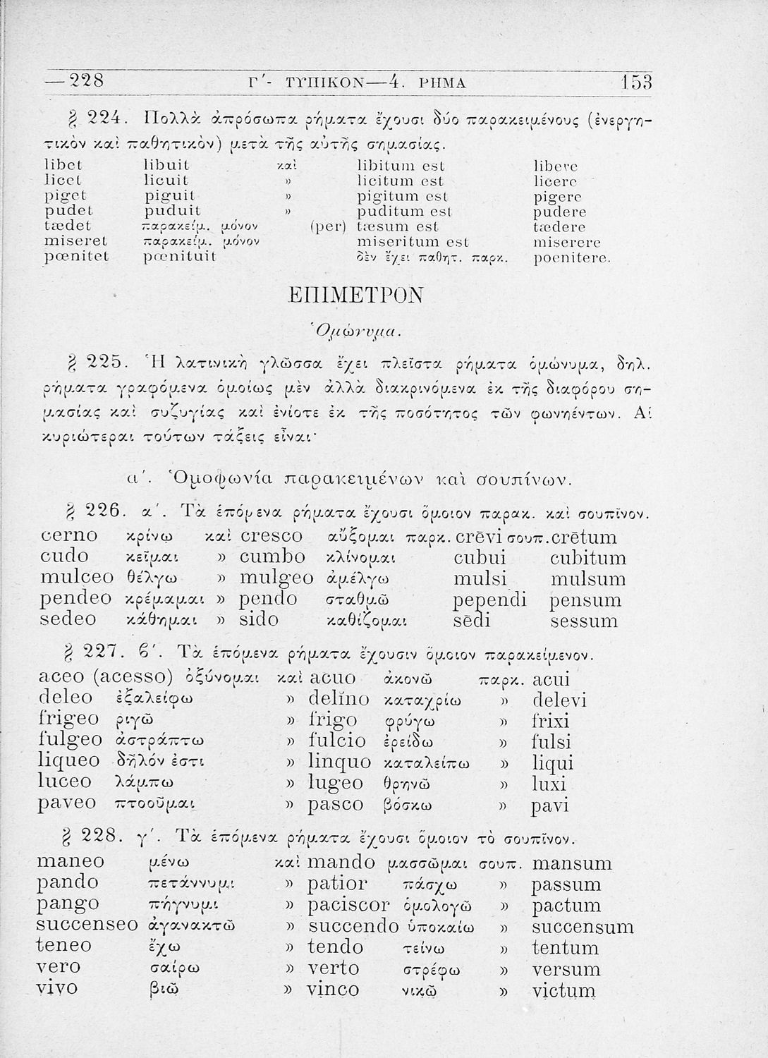 Λατινική γραμματική προς χρήσιν μαθητών Γυμνασίων εγκεκριμένη υπό του υπουργείου των εκκλησιαστικών και της δημόσιας εκπαιδεύσεως, μέρος Α΄, το "τεχνολογικόν"