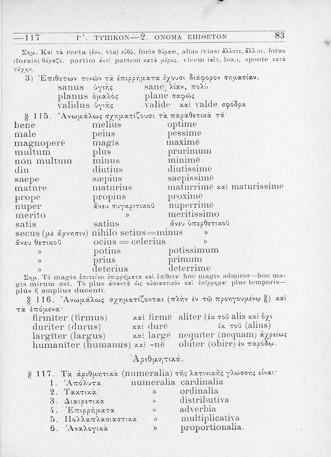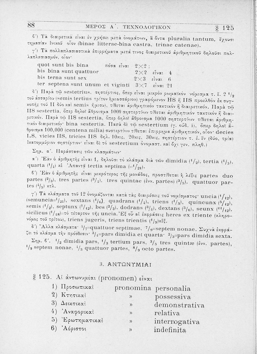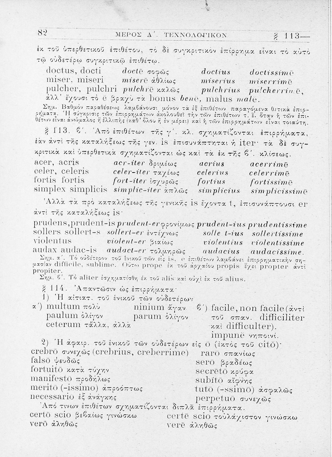 Σχολικό εγχειρίδιο Λατινικών που περιλαμβάνει τη γραμματική της λατινικής και είναι χωρισμένο στο τεχνολογικό, το τυπολογικό και το ετυμολογικό μέρος.