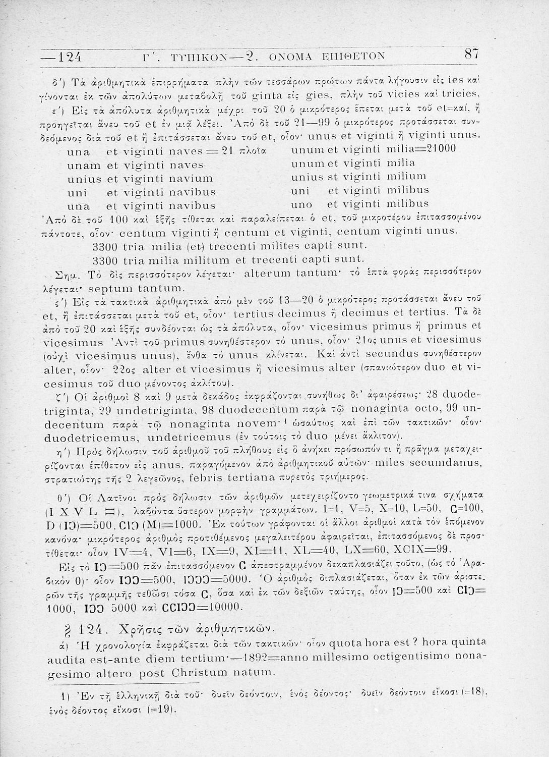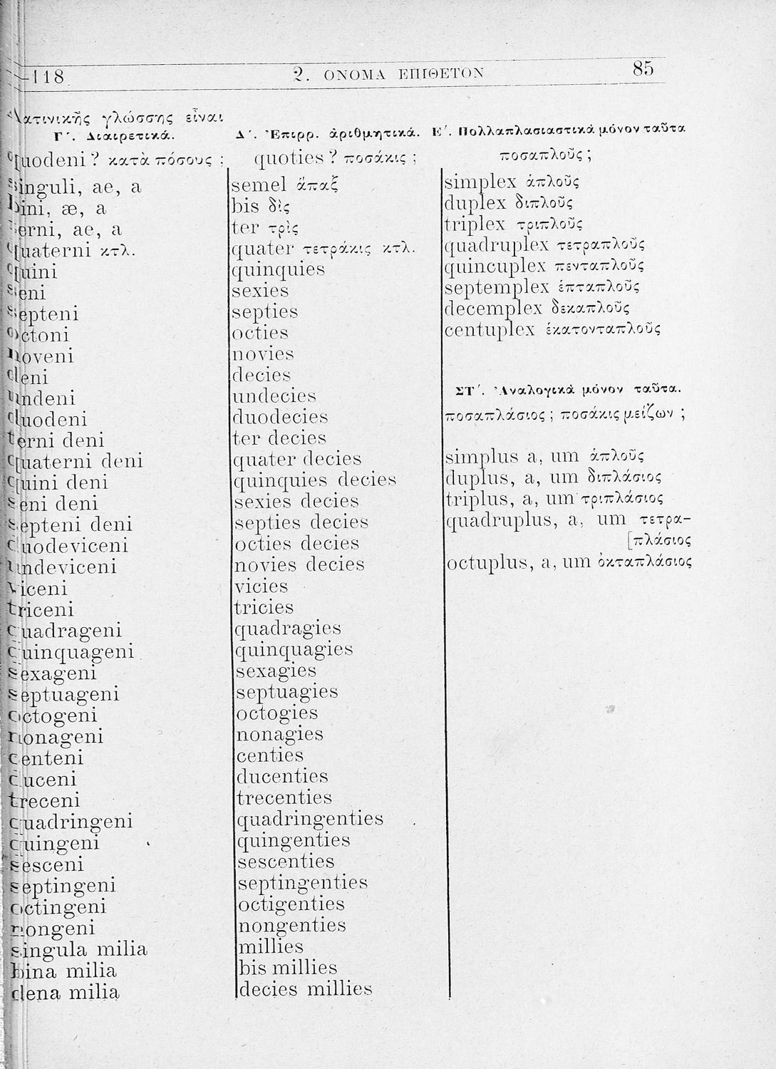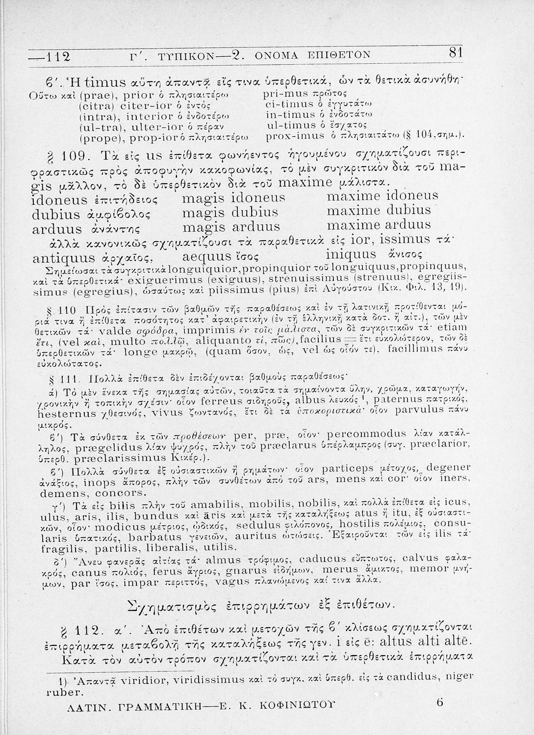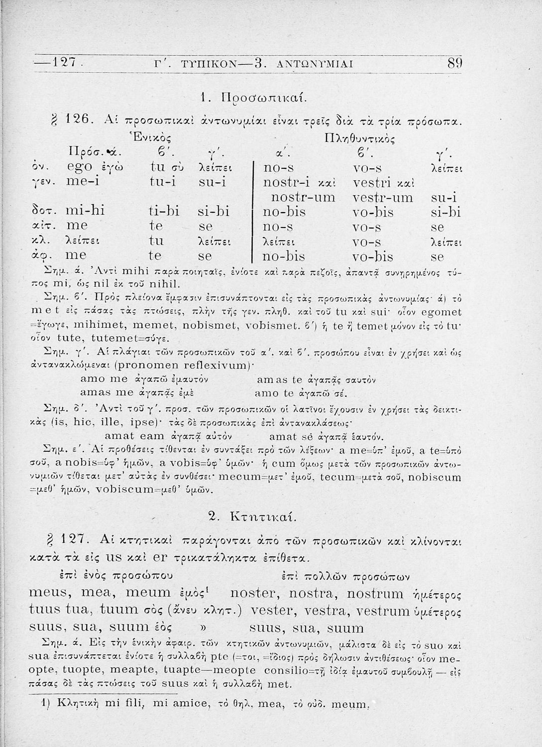 Σχολικό εγχειρίδιο Λατινικών που περιλαμβάνει τη γραμματική της λατινικής και είναι χωρισμένο στο τεχνολογικό, το τυπολογικό και το ετυμολογικό μέρος.
