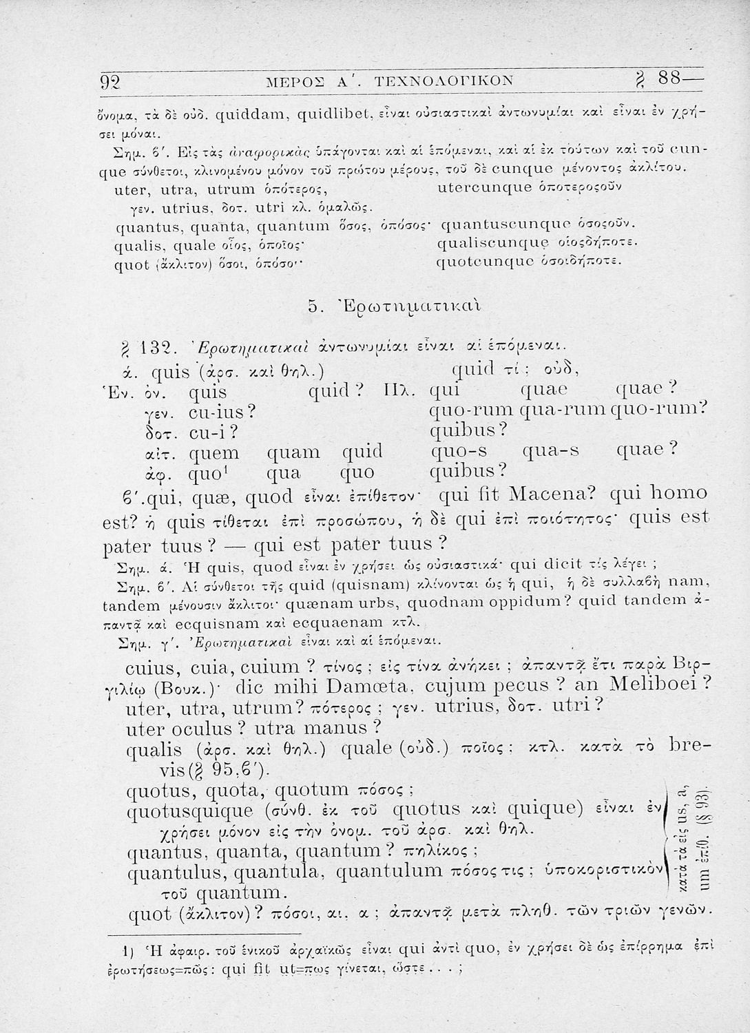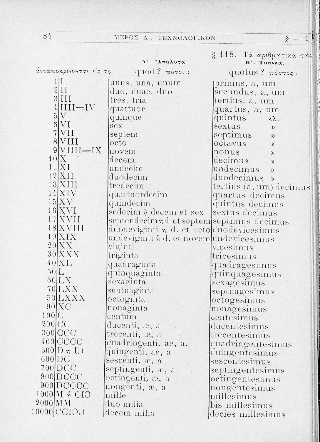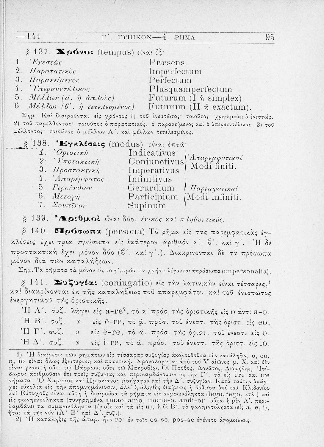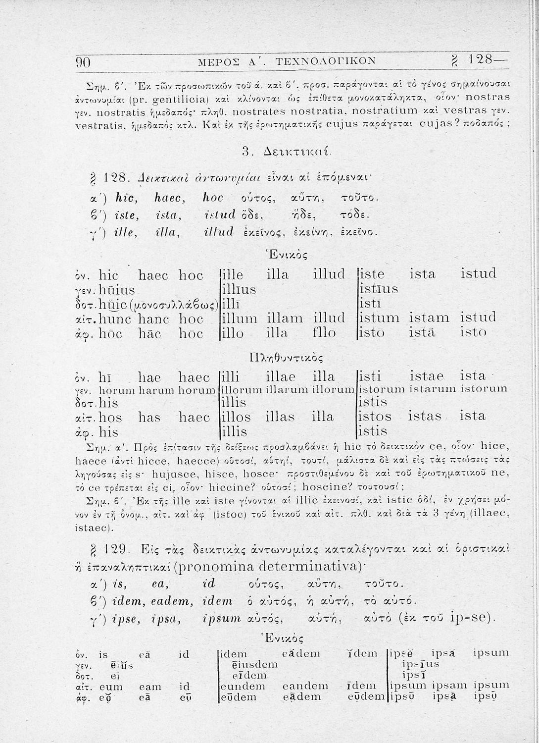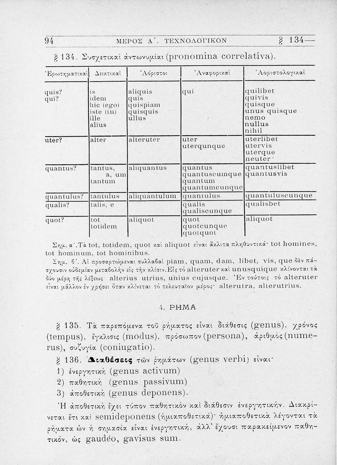 Λατινική γραμματική προς χρήσιν μαθητών Γυμνασίων εγκεκριμένη υπό του υπουργείου των εκκλησιαστικών και της δημόσιας εκπαιδεύσεως, μέρος Α΄, το "τεχνολογικόν"