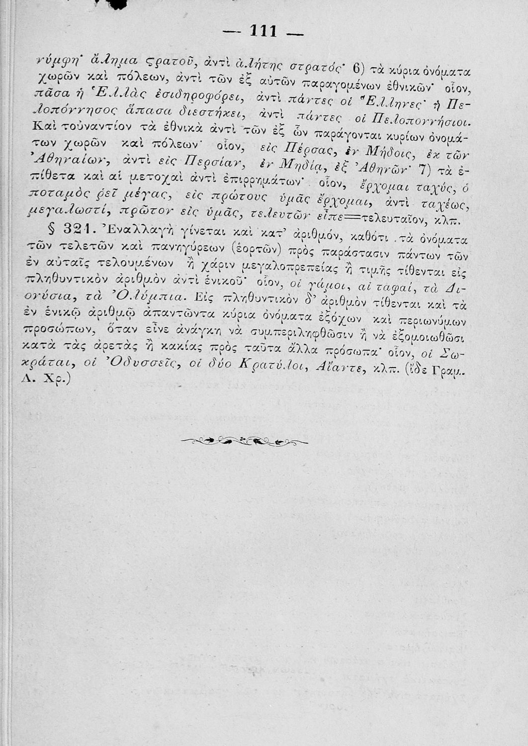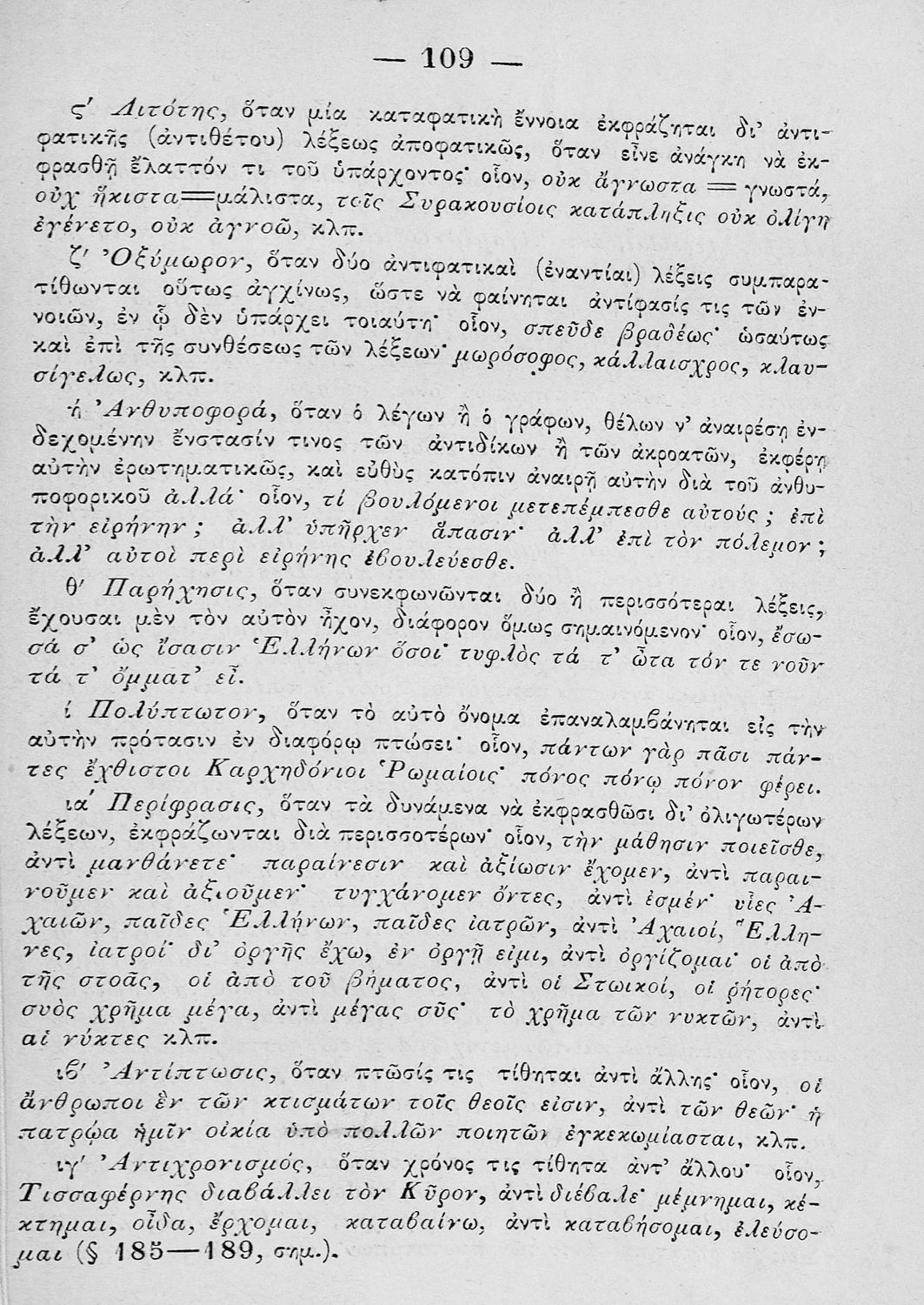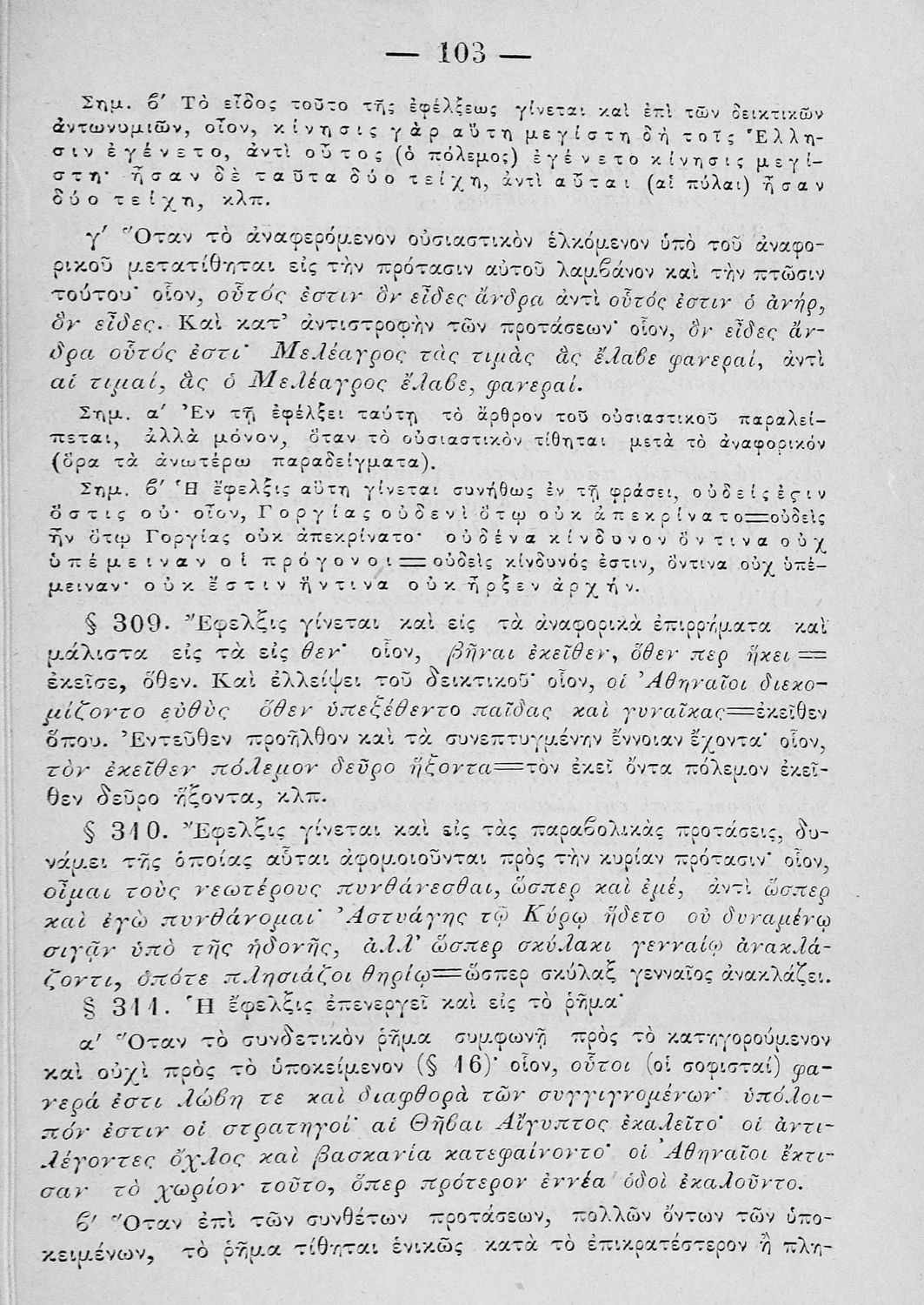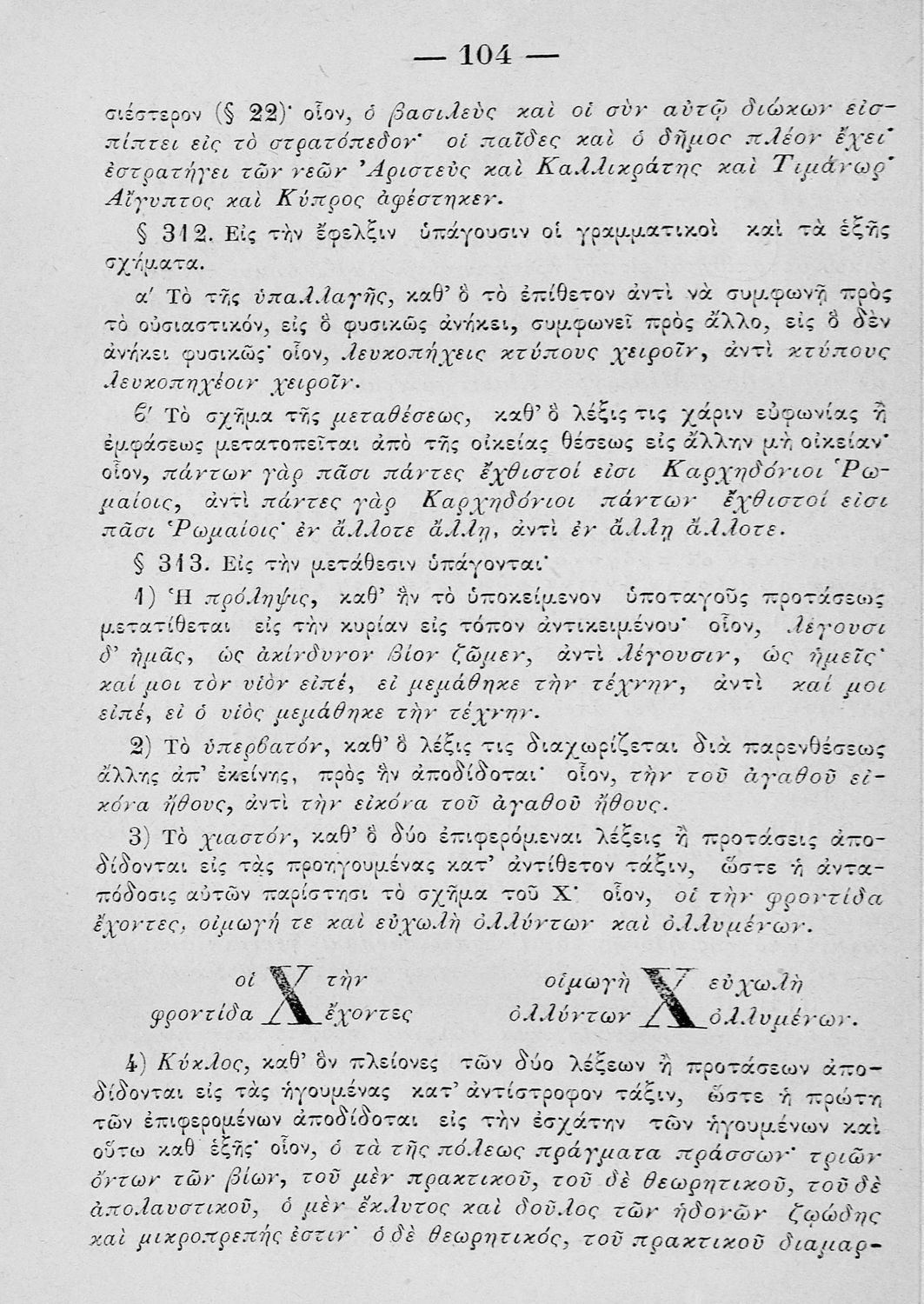 Σχολικό εγχειρίδιο Αρχαίων Ελληνικών για τα Ελληνικά Σχολεία και τα Ανώτερα Παρθεναγωγεία που εξετάζει τα μέρη του λόγου και την σύνταξή τους.