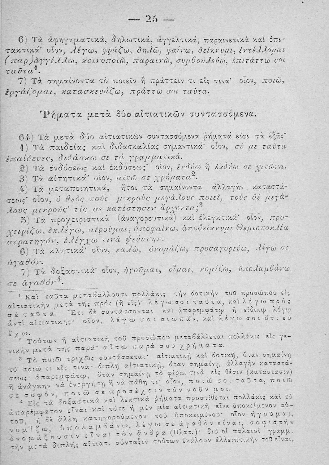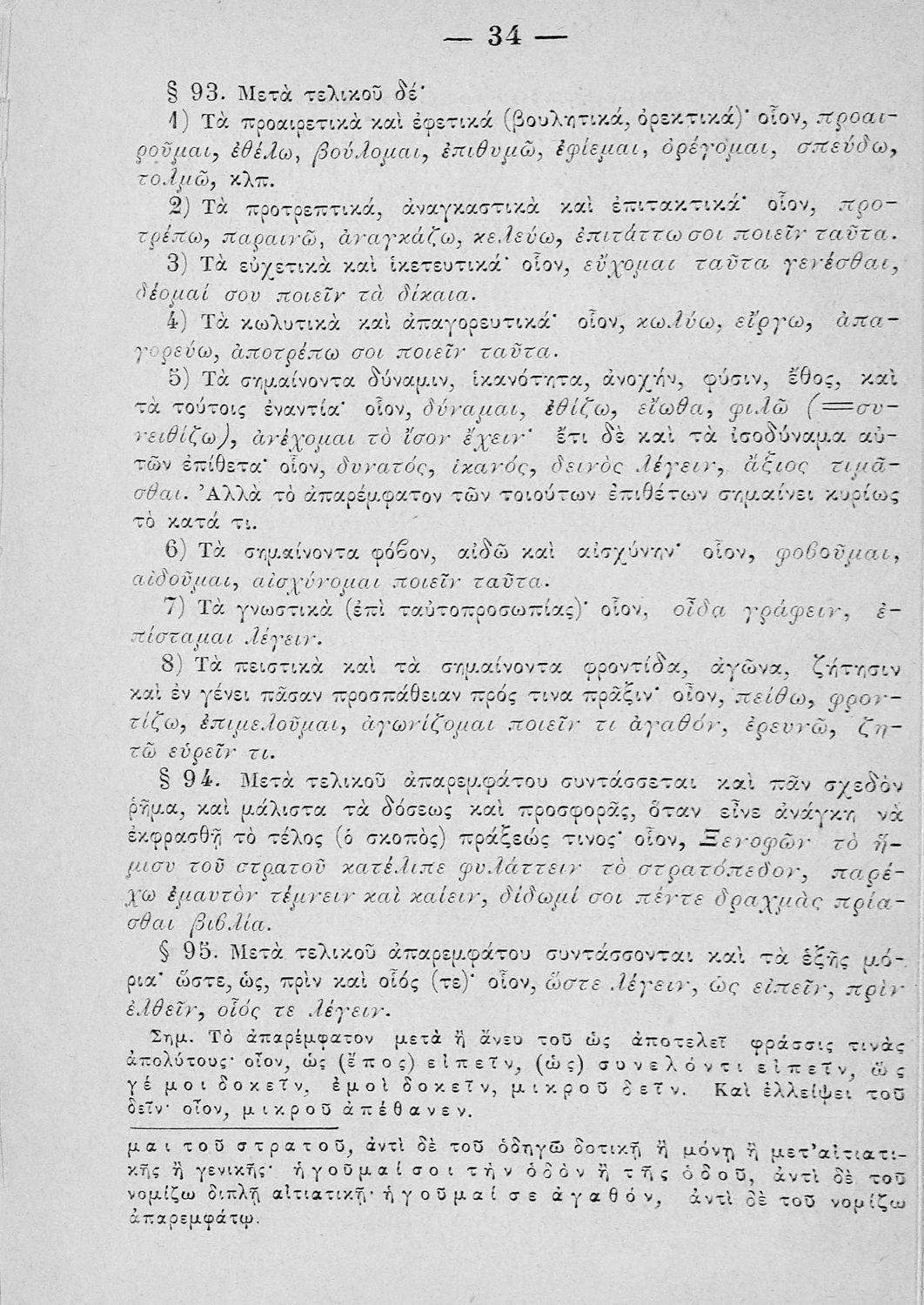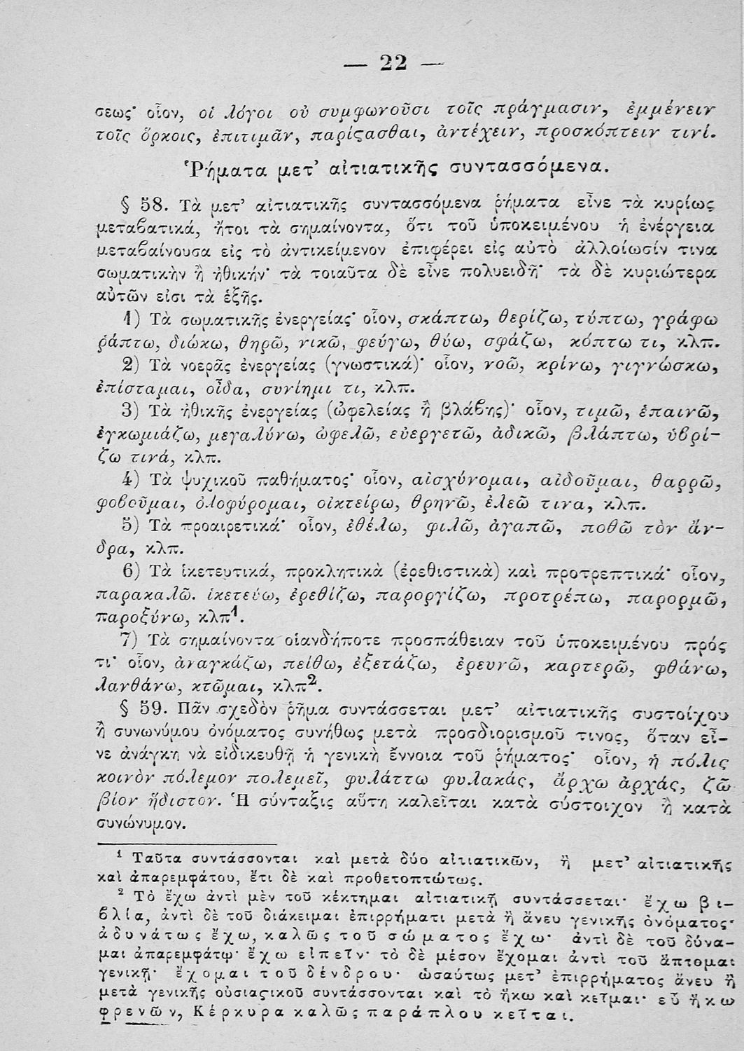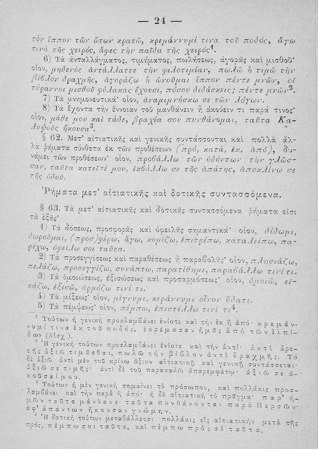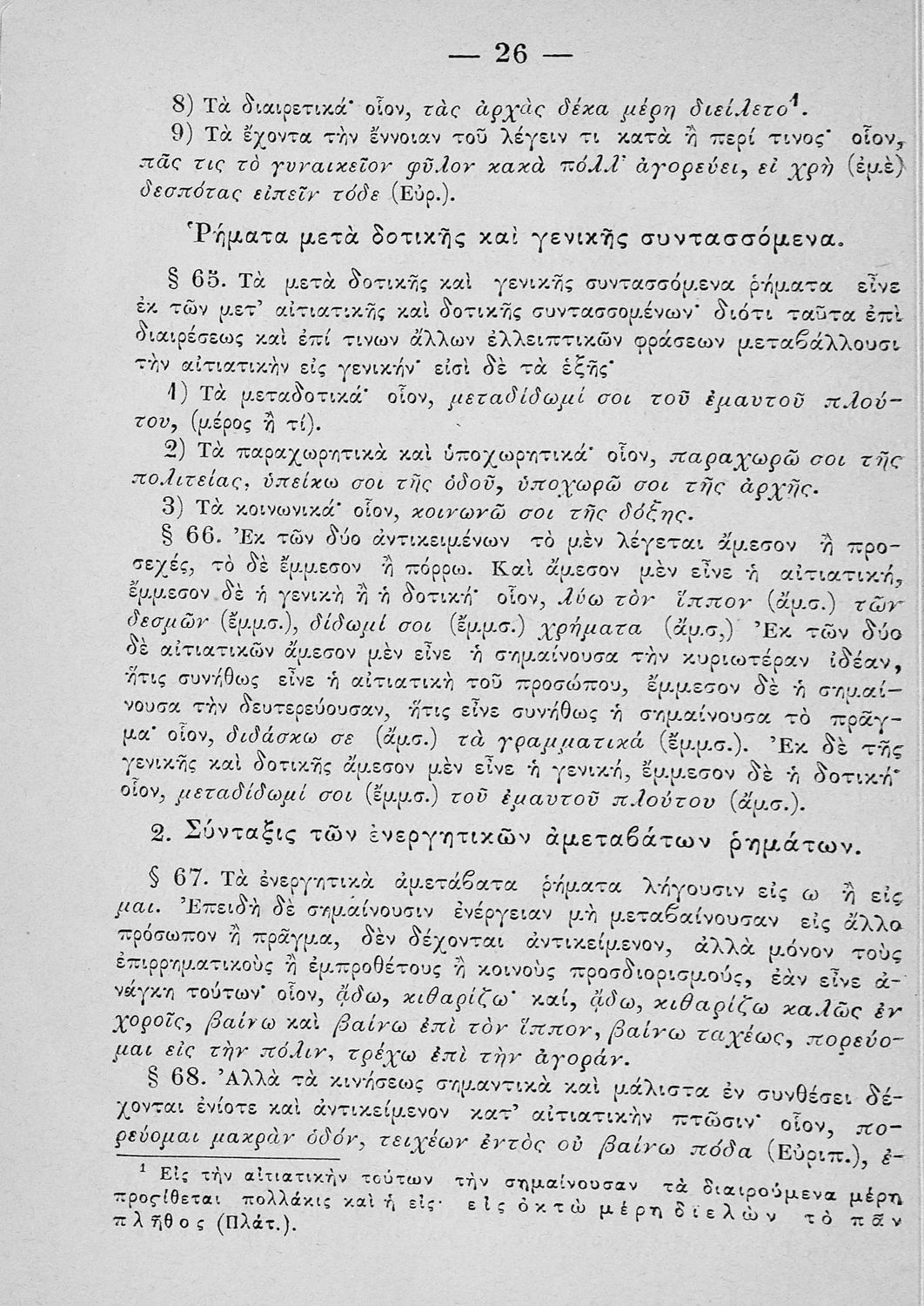 Βαθμίδα εκπαίδευσης: Δευτεροβάθμια Τάξη: Ελληνικό Σχολείο Μάθημα: Αρχαία Ελληνικά Γλώσσα: Καθαρεύουσα Παρουσίαση περιεχομένου: Σχολικό εγχειρίδιο Αρχαίων Ελληνικών για τα Ελληνικά Σχολεία που εστιάζει στα μέρη του λόγου και στην σύνταξή τους. |