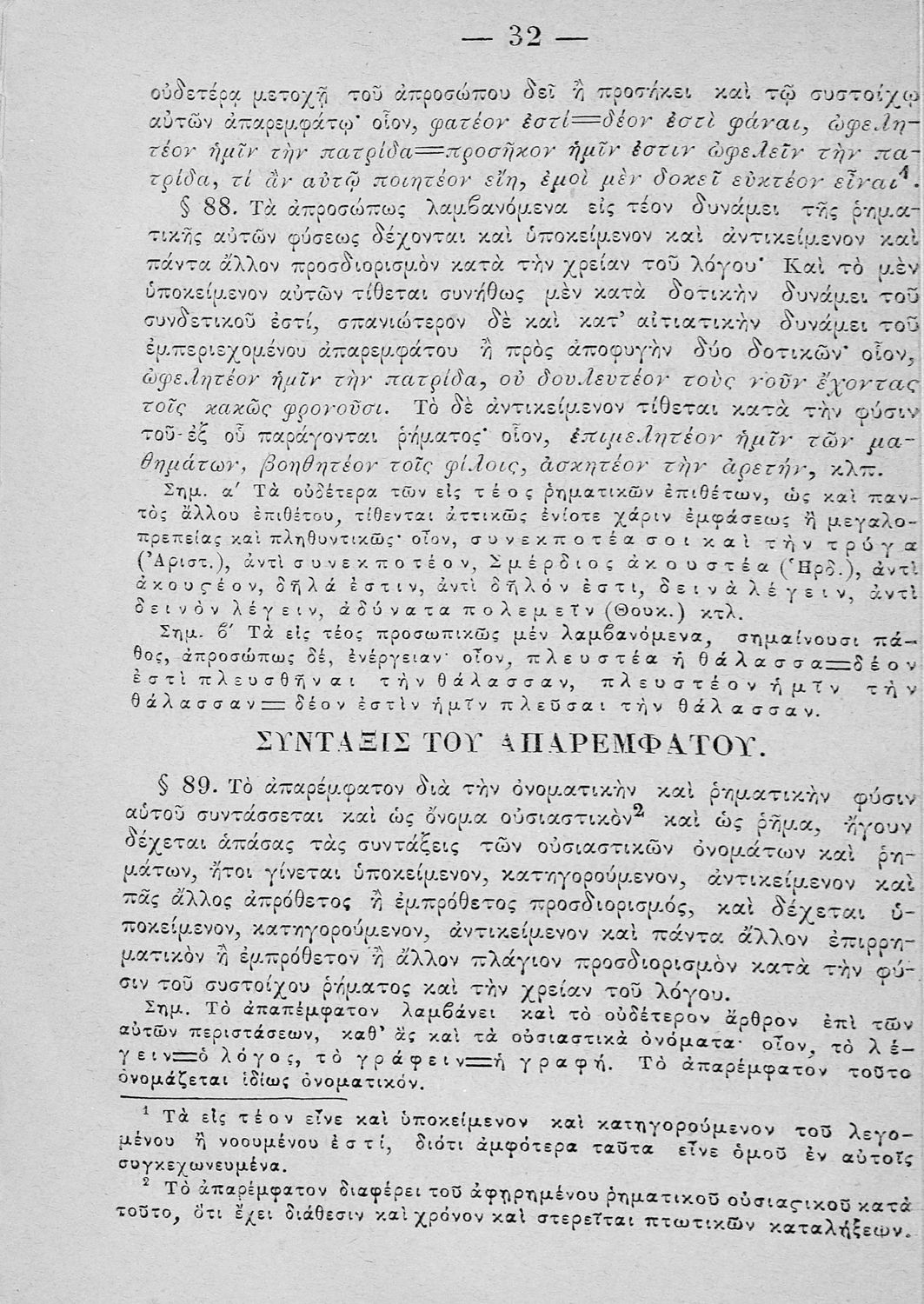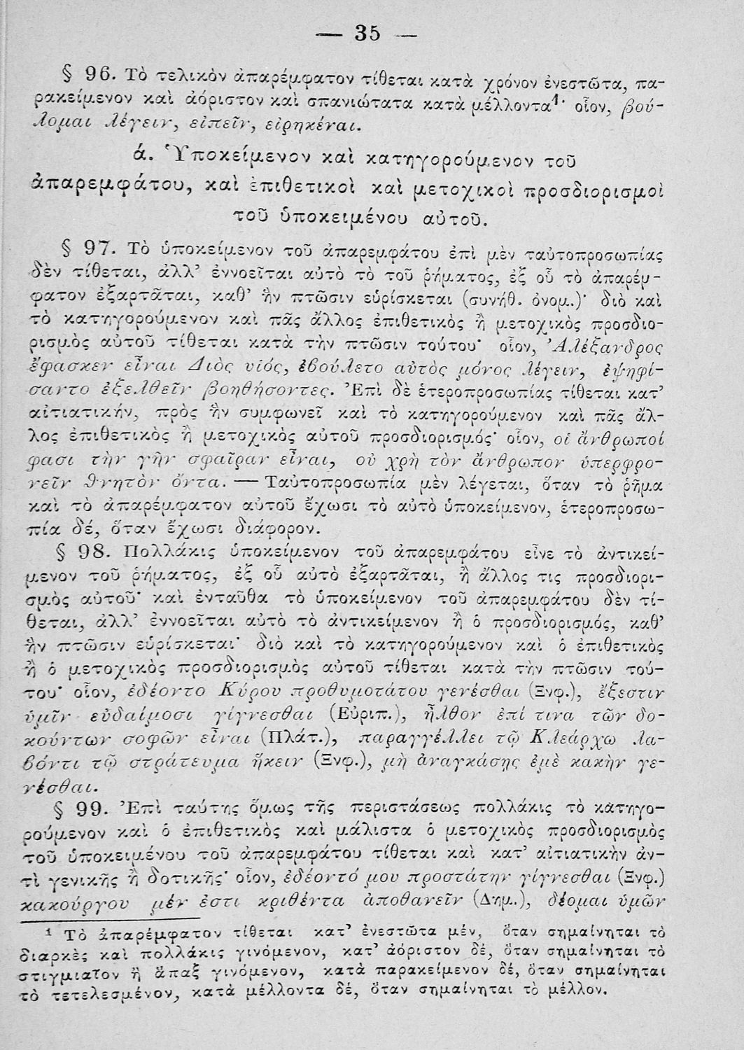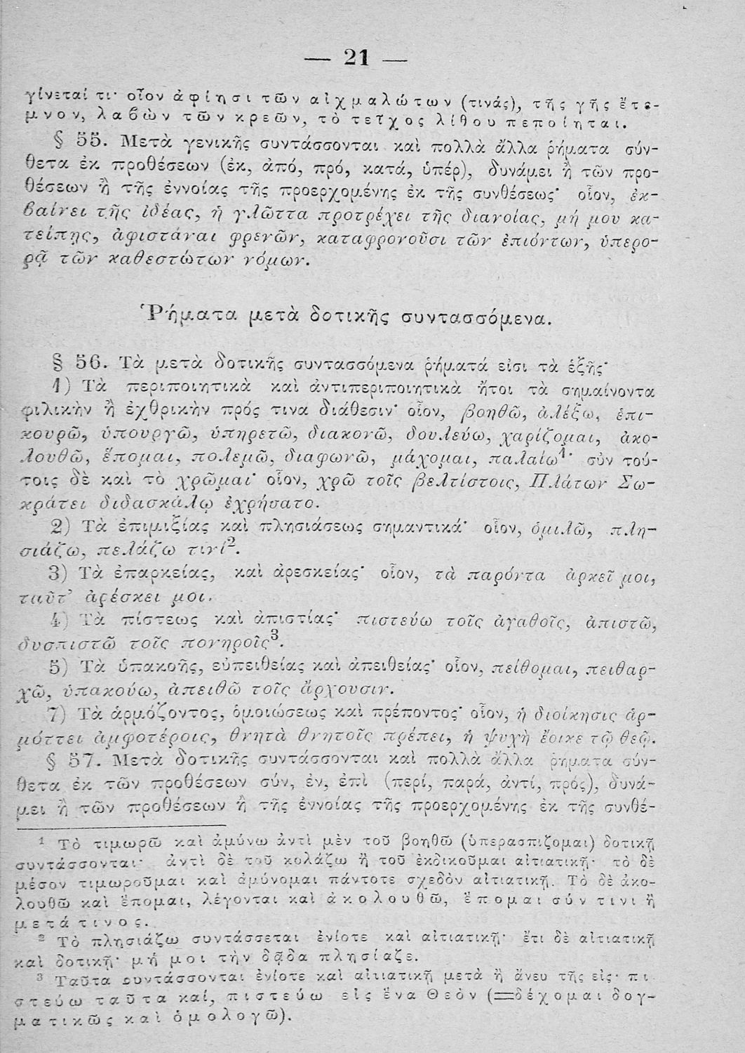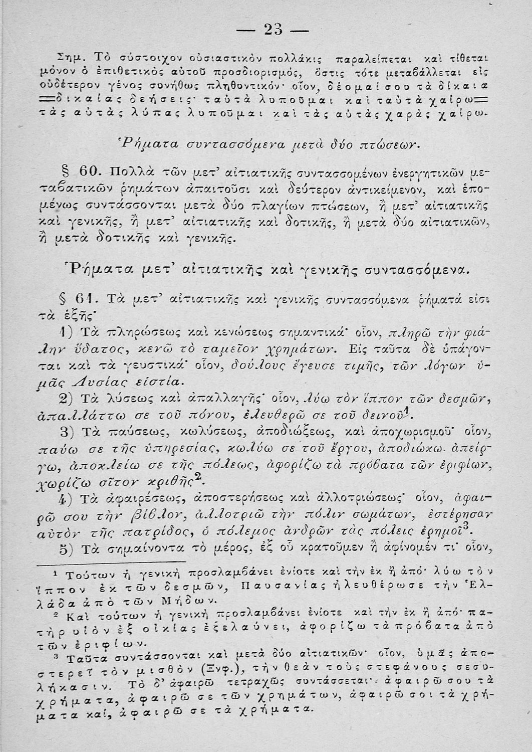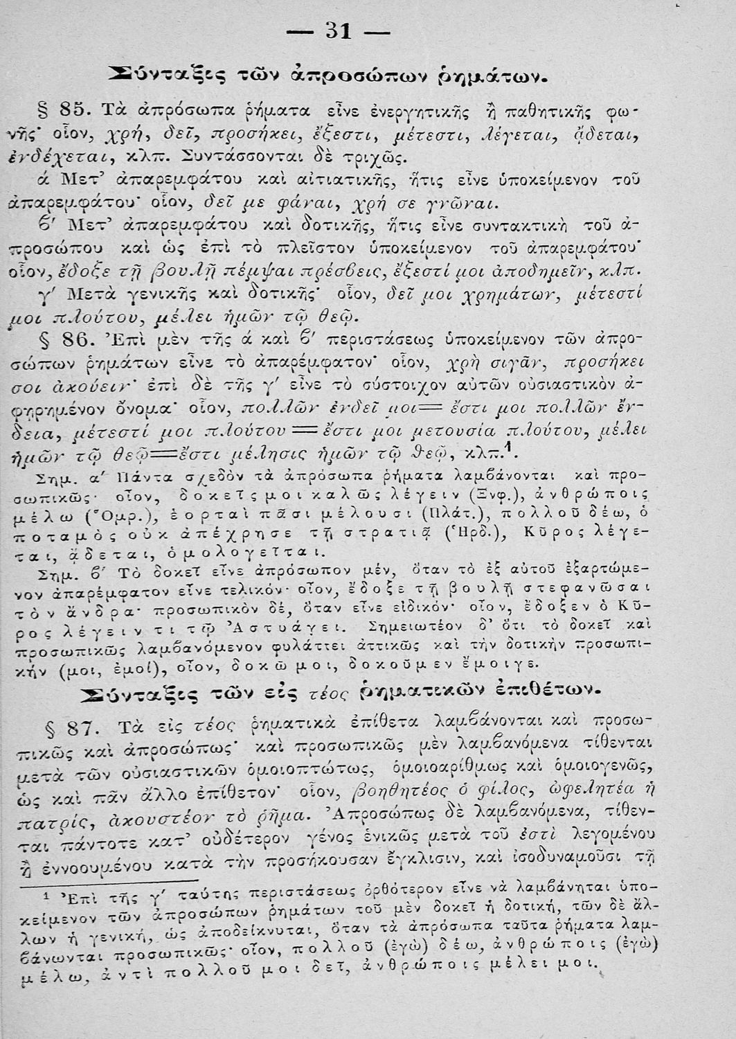 Βαθμίδα εκπαίδευσης: Δευτεροβάθμια Τάξη: Ελληνικό Σχολείο Μάθημα: Αρχαία Ελληνικά Γλώσσα: Καθαρεύουσα Παρουσίαση περιεχομένου: Σχολικό εγχειρίδιο Αρχαίων Ελληνικών για τα Ελληνικά Σχολεία που εστιάζει στα μέρη του λόγου και στην σύνταξή τους. |