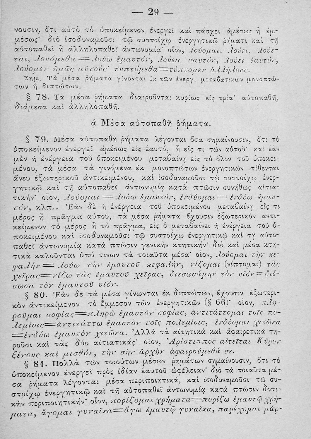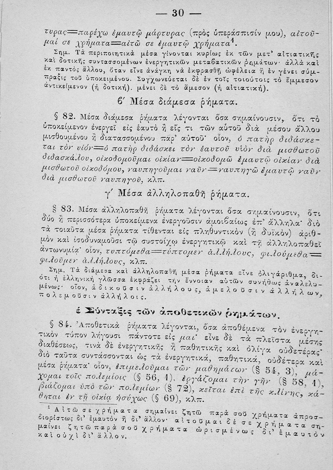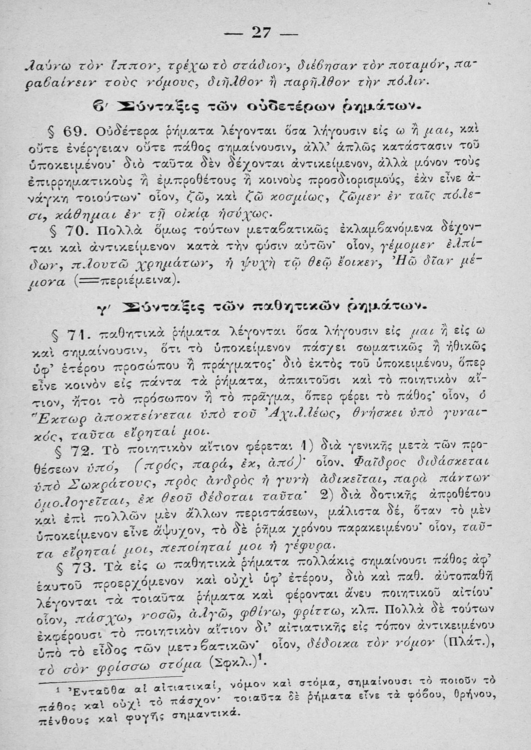 Σχολικό εγχειρίδιο Αρχαίων Ελληνικών για τα Ελληνικά Σχολεία που εστιάζει στα μέρη του λόγου και στην σύνταξή τους.