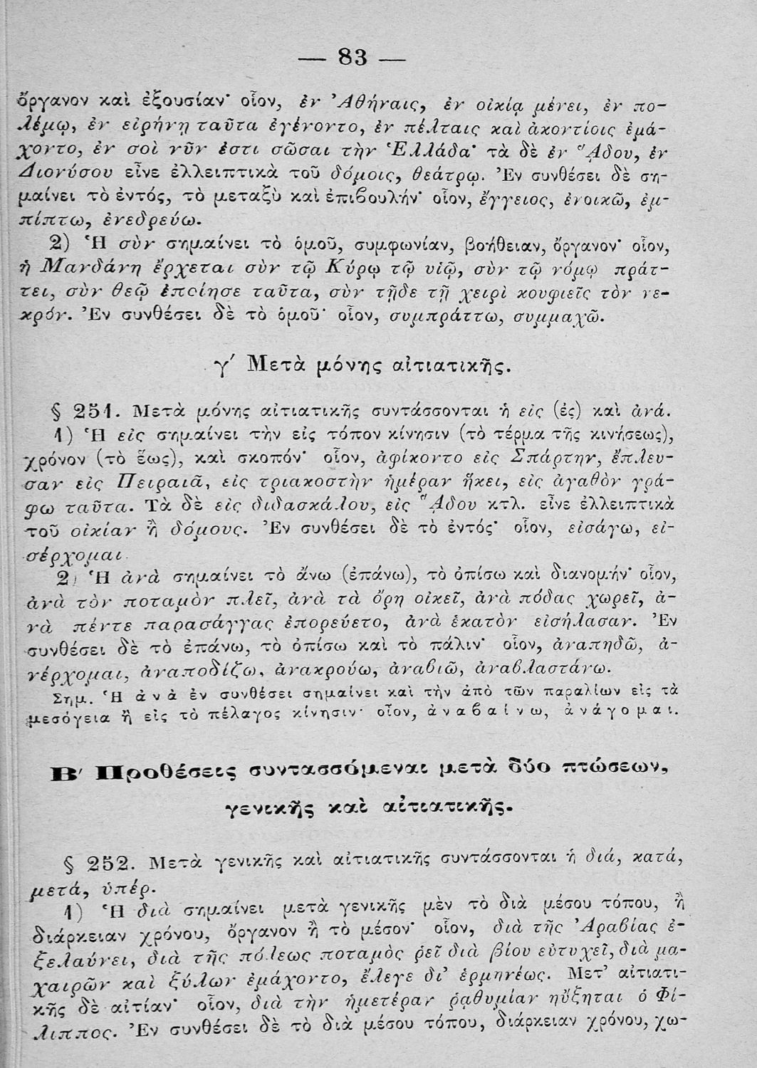 LDR 01132 2200205 4500 035 ## _a09-79677 040 ## _aΑκαδημία Αθηνών 041 ## _ael 100 ## _aΛουκάς Χριστοδούλου 110 ## _a79677 245 0# _aΣυντακτικόν της ελληνικής γλώσσης προς χρήσιν των Ελληνικών Σχολείων εγκεκριμένον υπό του υπουργείου της εκπαιδεύσεως 250 ## _a3η Έκδοση 260 ## _aΚωνσταντινούπολη _bΑ. Κορομηλάς _c1883 300 ## _a120 _bΕξώφυλλο (έγχρωμο) 520 ## _aΣχολικό εγχειρίδιο Αρχαίων Ελληνικών για τα Ελληνικά Σχολεία που εστιάζει στα μέρη του λόγου και στην σύνταξή τους. 521 ## _aΕλληνικό Σχολείο 522 ## _aΈξω ελληνισμός 546 ## _aΚαθαρεύουσα 563 ## _aΣκληρό Εξώφυλλο 650 #4 _aΑντικείμενο _aΠροθέσεις _aΠροσδιορισμοί _aΡήματα _aΥποκείμενο