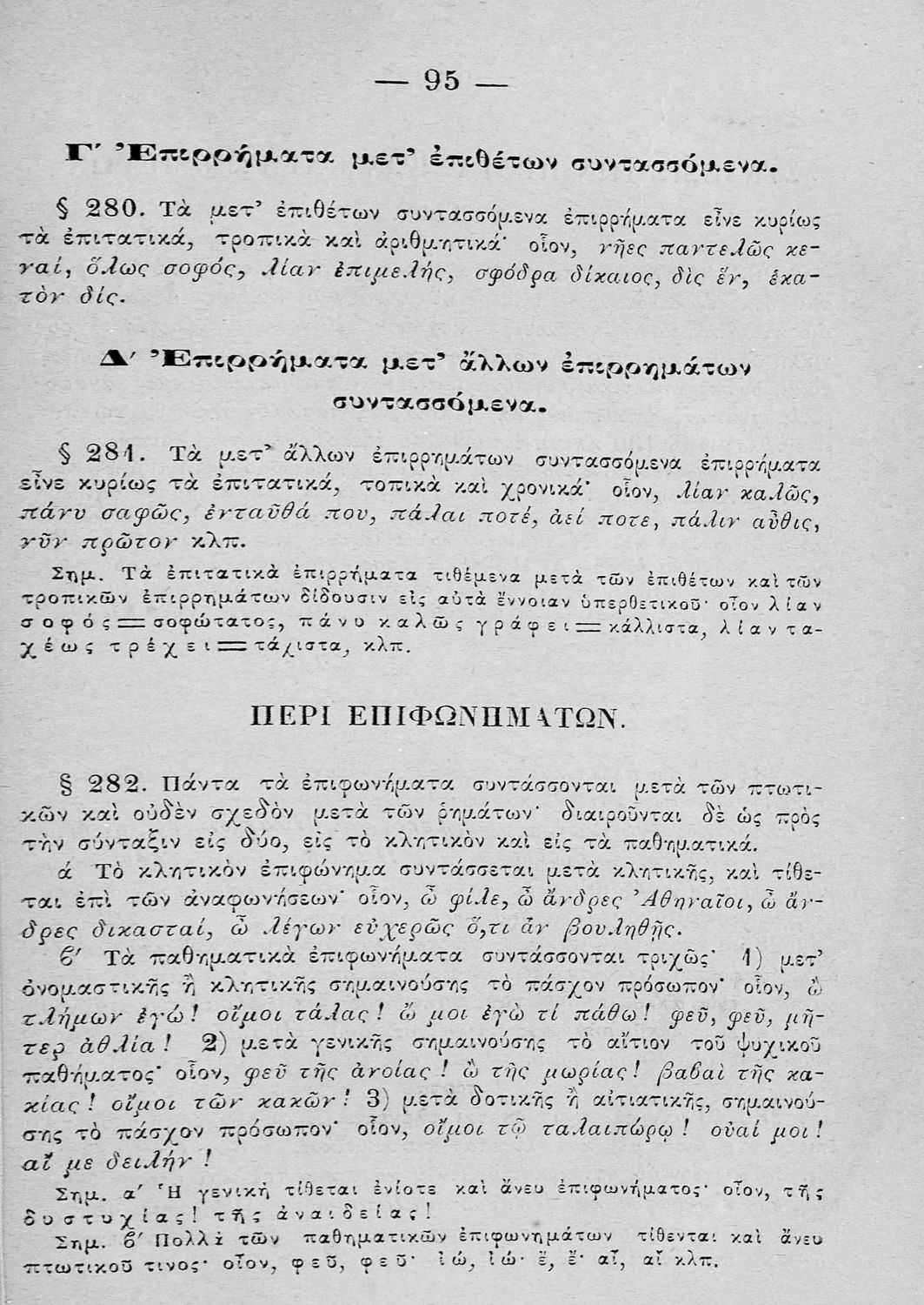 Σχολικό εγχειρίδιο Αρχαίων Ελληνικών για τα Ελληνικά Σχολεία που εστιάζει στα μέρη του λόγου και στην σύνταξή τους.