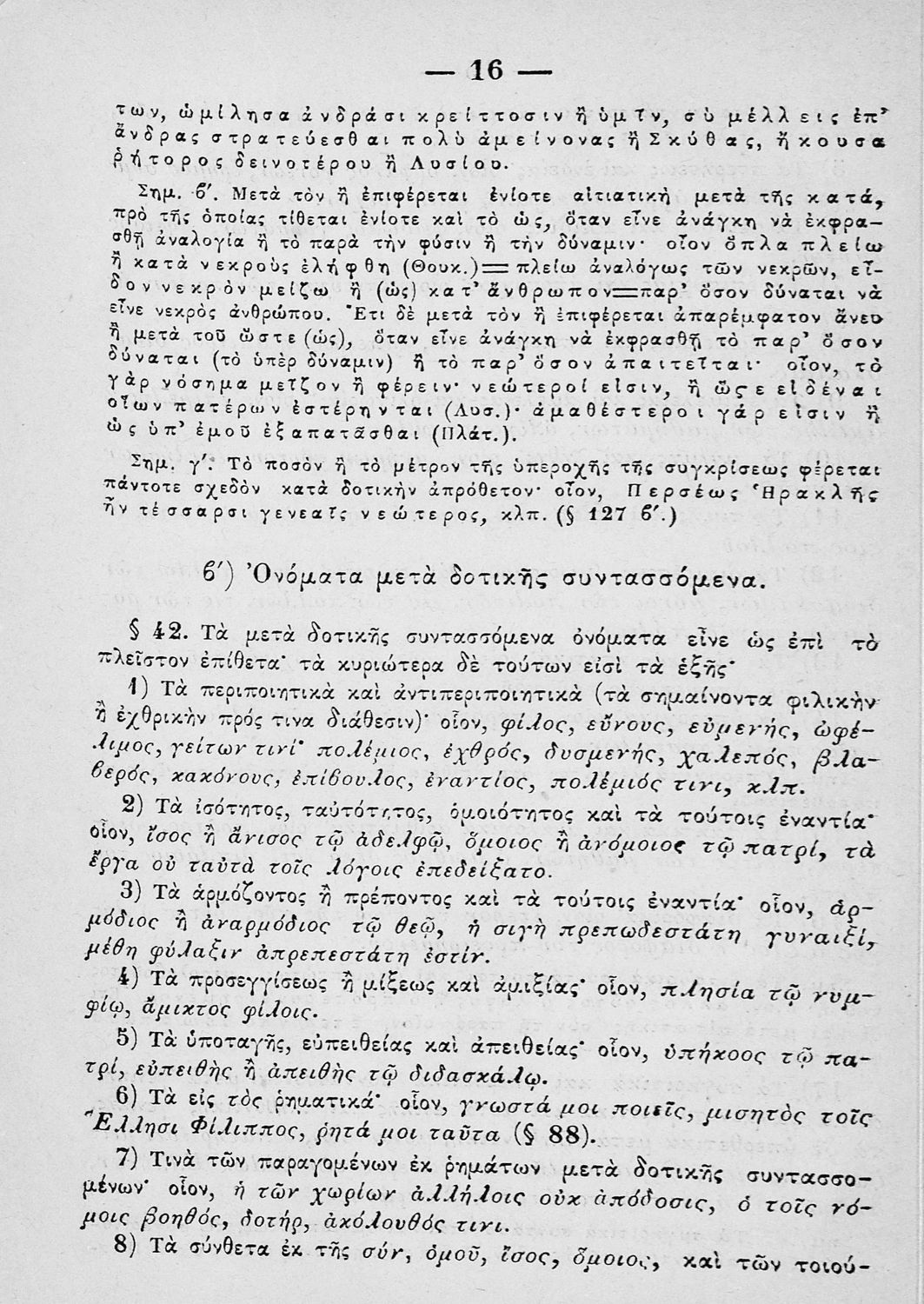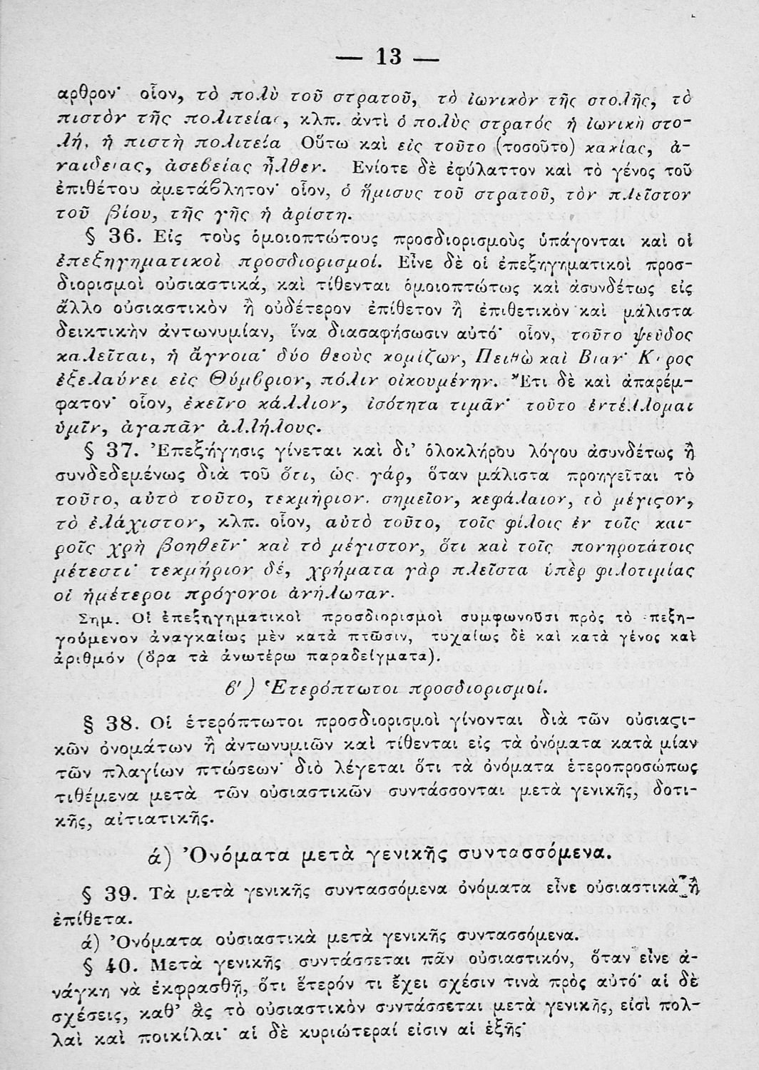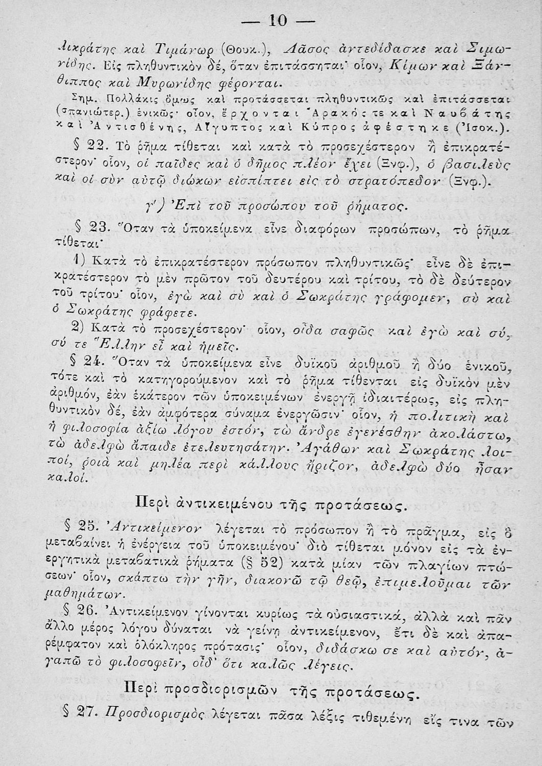 Βαθμίδα εκπαίδευσης: Δευτεροβάθμια Τάξη: Ελληνικό Σχολείο Μάθημα: Αρχαία Ελληνικά Γλώσσα: Καθαρεύουσα Παρουσίαση περιεχομένου: Σχολικό εγχειρίδιο Αρχαίων Ελληνικών για τα Ελληνικά Σχολεία που εστιάζει στα μέρη του λόγου και στην σύνταξή τους. |