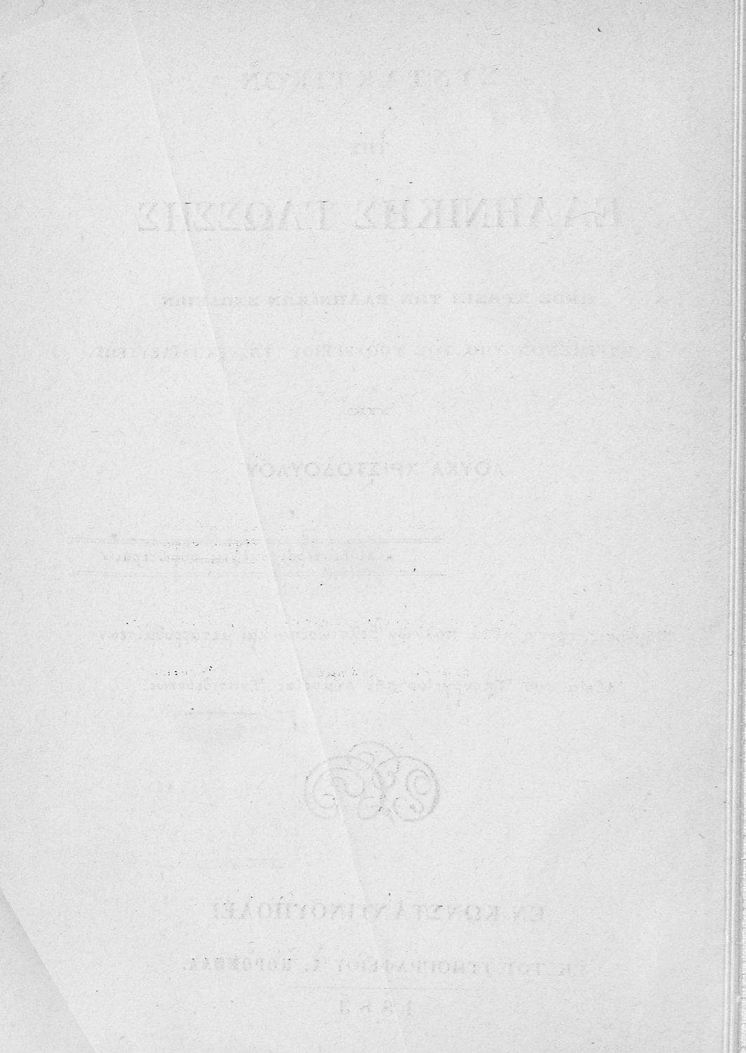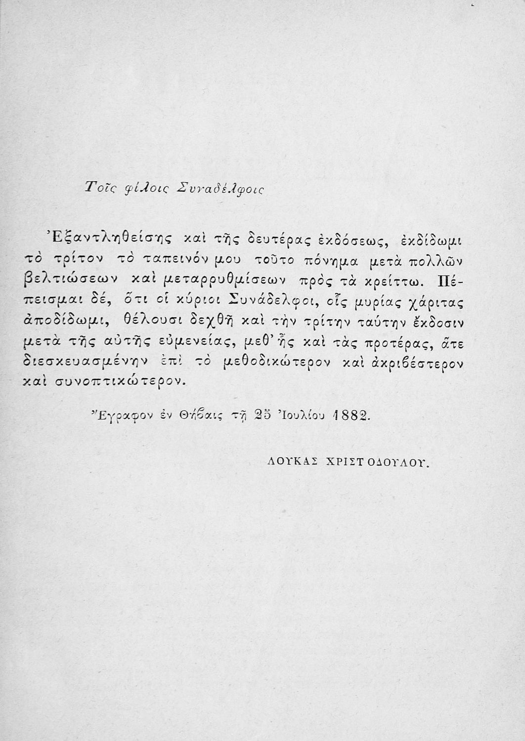 Εκδότης: Α. Κορομηλάς Έτος έκδοσης: 1883 Τόπος έκδοσης: Κωνσταντινούπολη Έκδοση: 3η |
