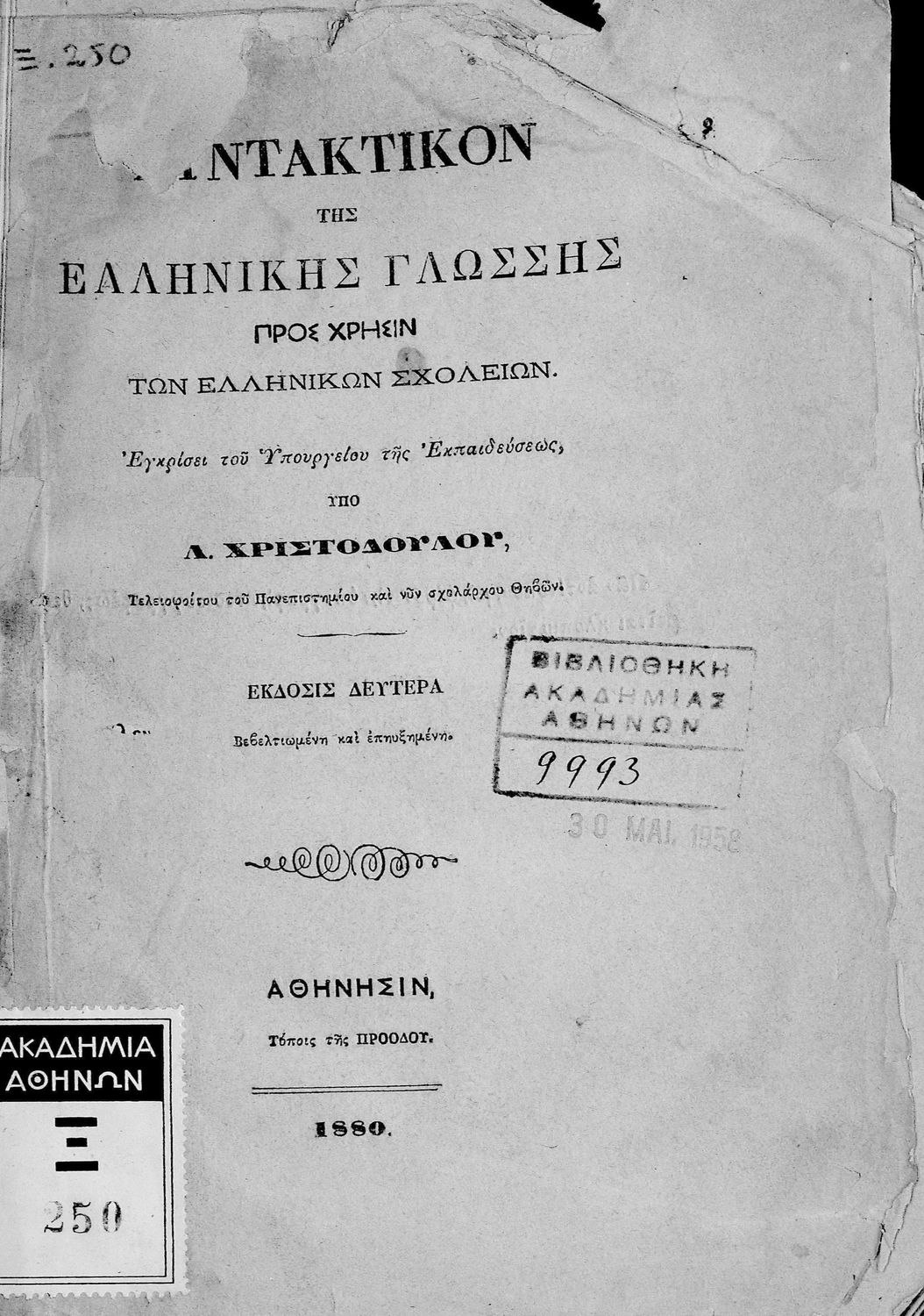 Τίτλος: Συντακτικόν της ελληνικής γλώσσης προς χρήσιν των Ελληνικών Σχολείων εγκεκριμένον υπό του υπουργείου της εκπαιδεύσεως