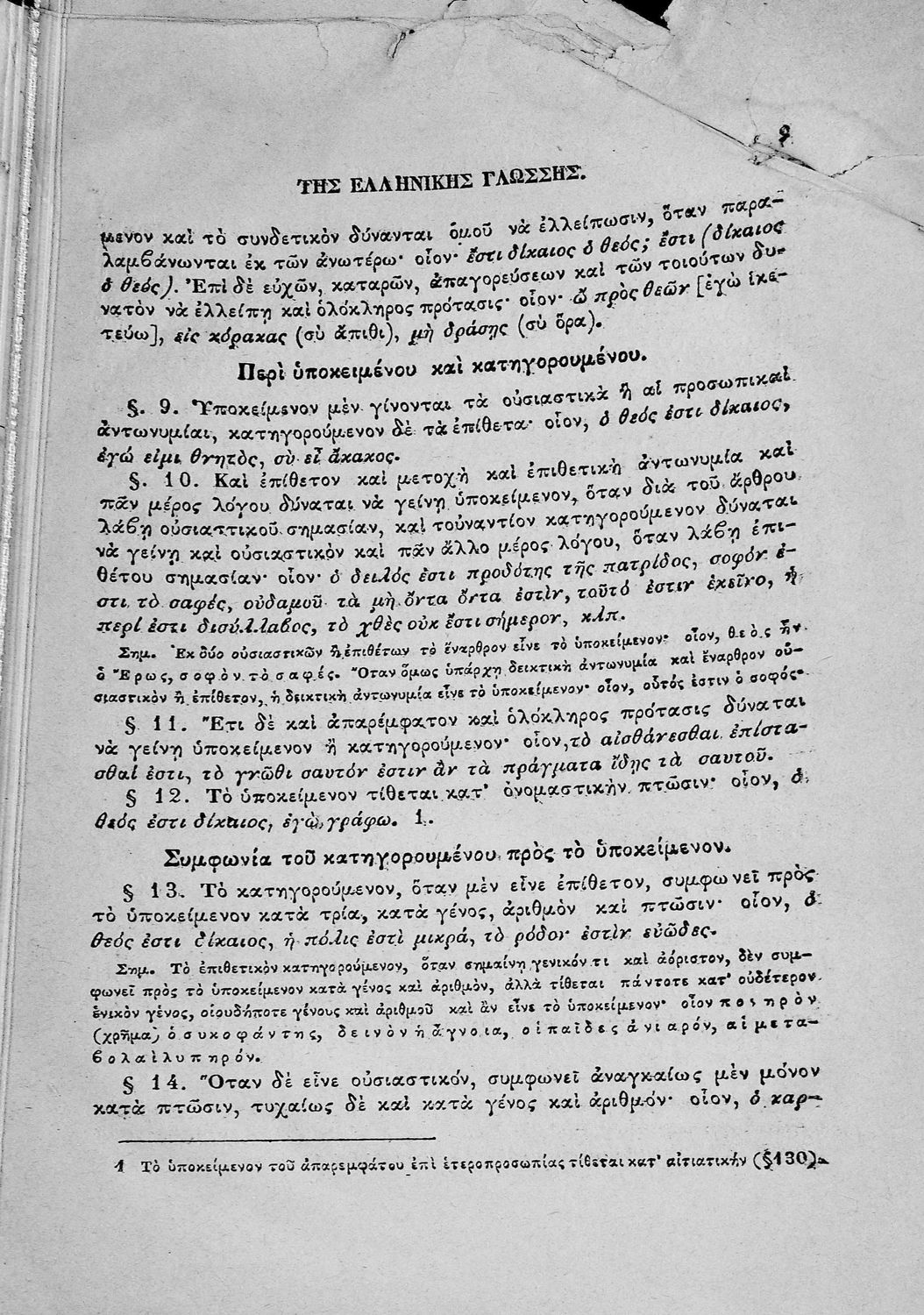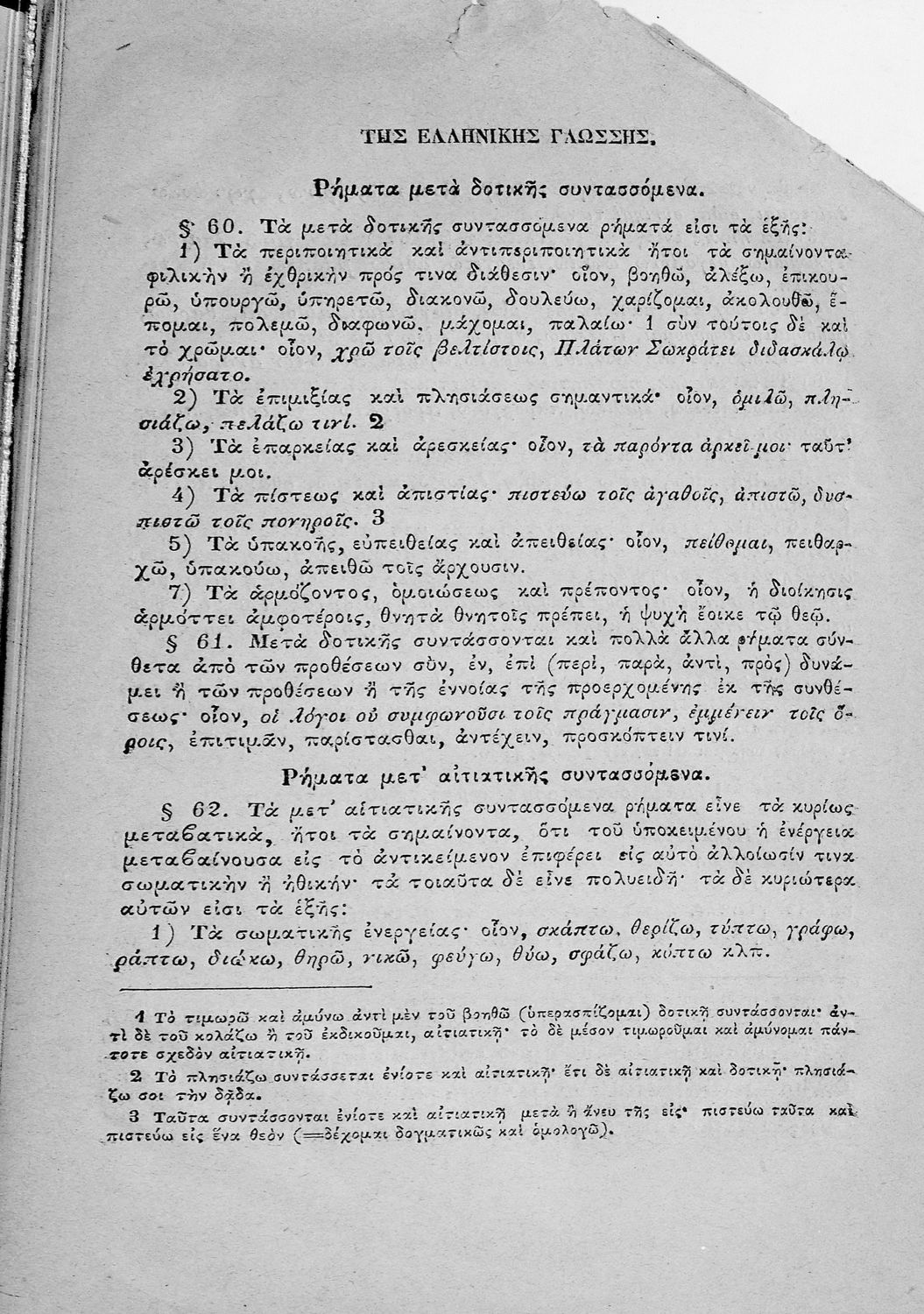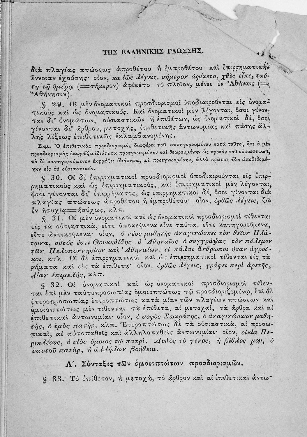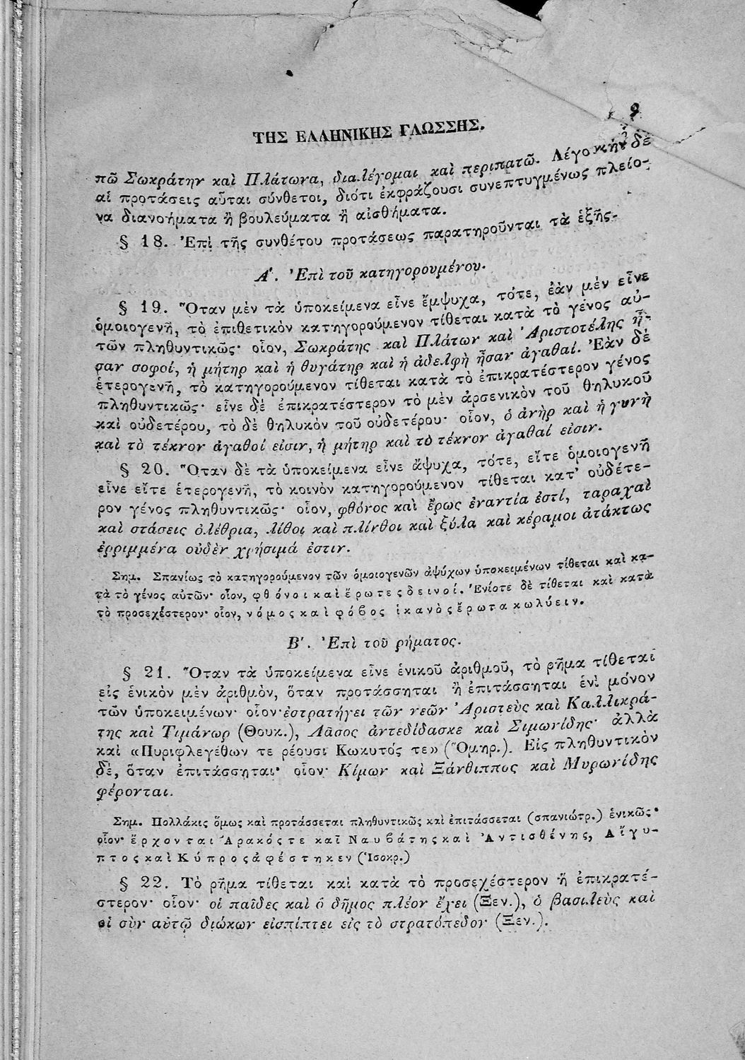 Σχολικό εγχειρίδιο Αρχαίων Ελληνικών για τα Ελληνικά Σχολεία και τα Ανώτερα Παρθεναγωγεία που εξετάζει τα μέρη του λόγου και την σύνταξή τους.