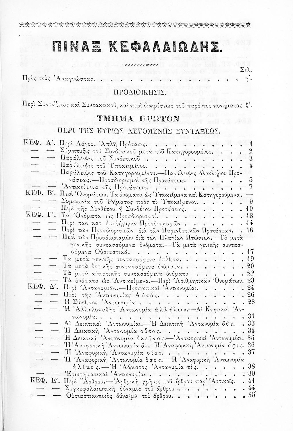 Τίτλος: Περί ελληνικής συντάξεως προς χρήσιν των Ελληνικών Σχολείων και Γυμνασίων, περίοδος πρώτη