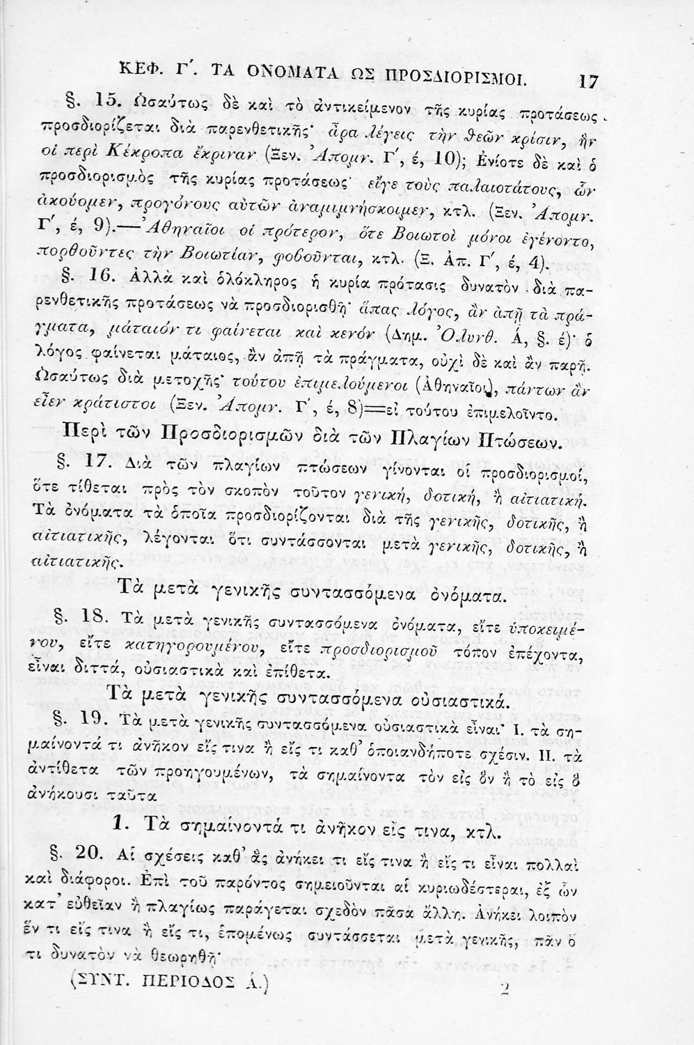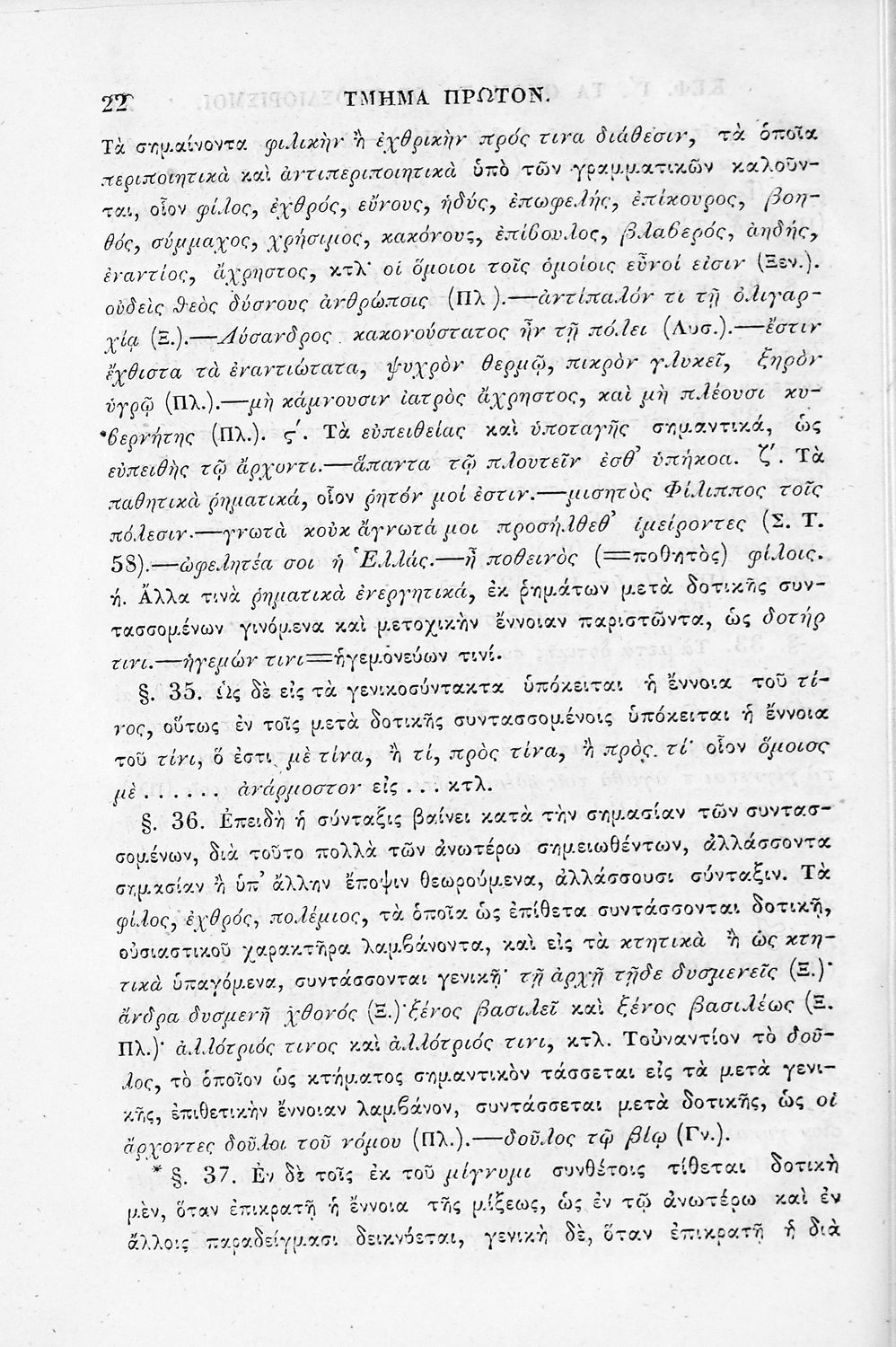 Τίτλος: Περί ελληνικής συντάξεως προς χρήσιν των Ελληνικών Σχολείων και Γυμνασίων, περίοδος πρώτη