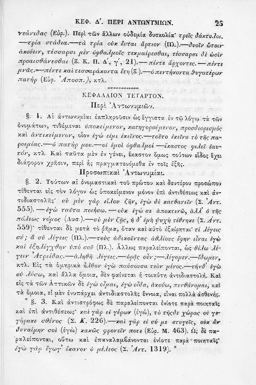 Σχολικό εγχειρίδιο για τις τάξεις του Ελληνικού και του Γυμνασίου για το μάθημα των Αρχαίων Ελληνικών και συγκεκριμένα του συντακτικού της ελληνικής γλώσσας. Το εγχειρίδιο περιλαμβάνει τους βασικούς κανόνες συντακτικού και διακρίνονται η κύρια και η υποτακτική σύνταξη, τα μέρη του λόγου και οι σύνδεσμοι, τα συντακτικά σχήματα και ιδιώματα.