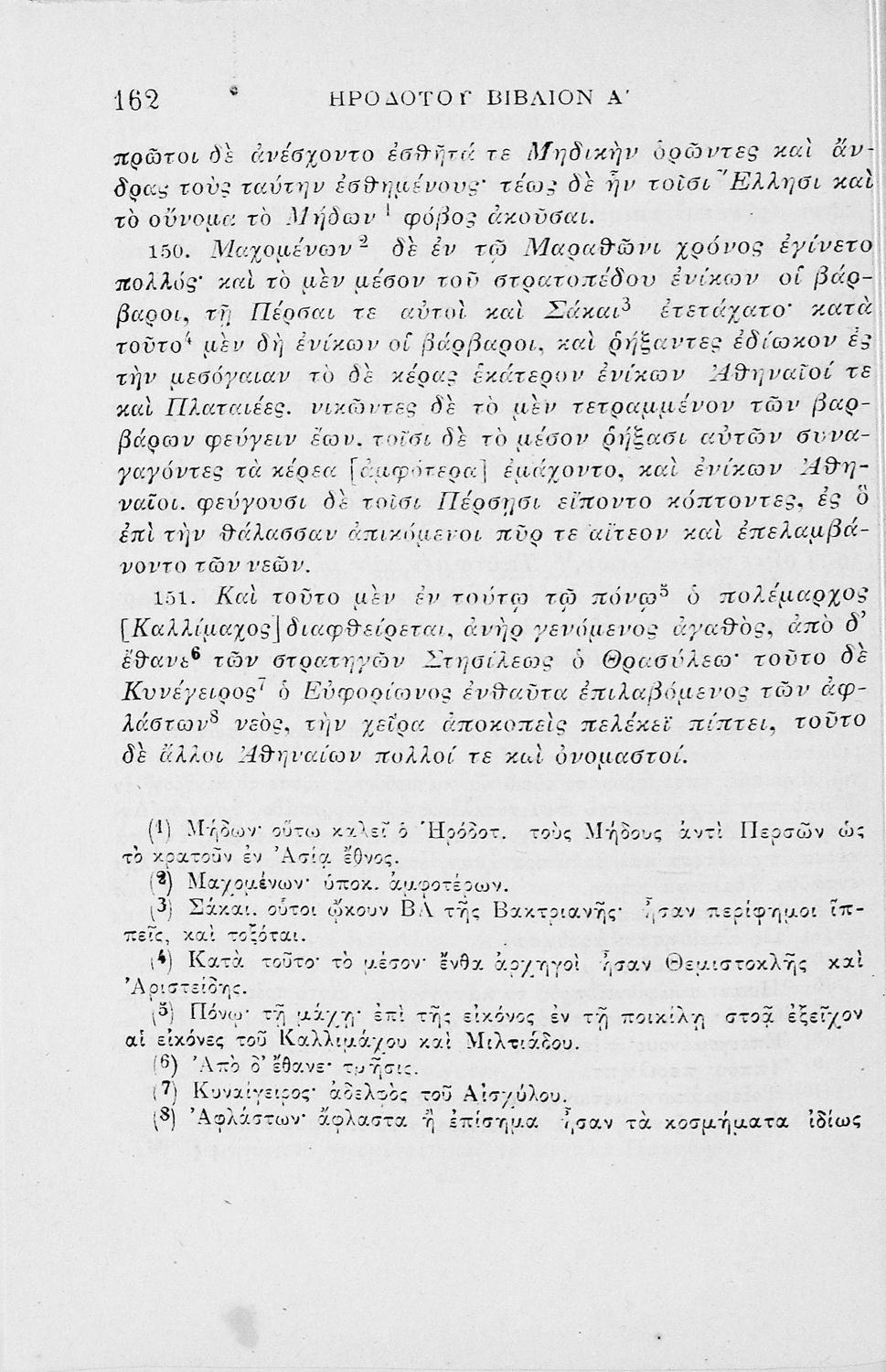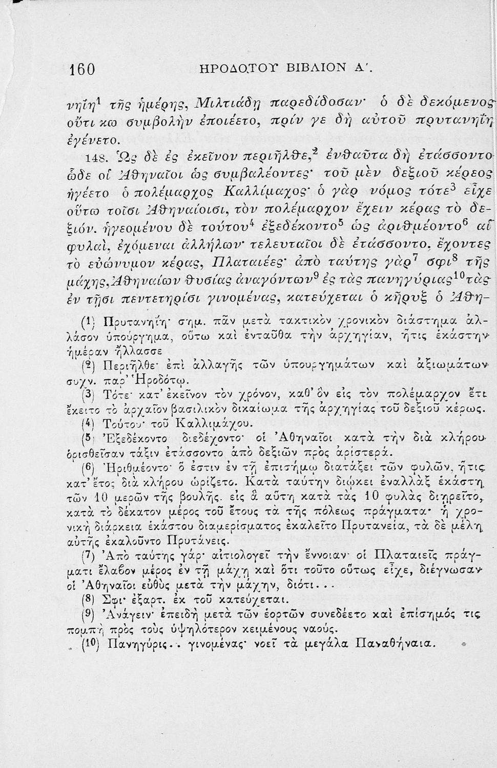 Σχολικό εγχειρίδιο Αρχαίων Ελληνικών για τα Γυμνάσια και τα Παρθεναγωγεία που περιλαμβάνει αποσπάσματα από το έργο του Ηροδότου Ιστορία και ερμηνευτικές σημειώσεις.