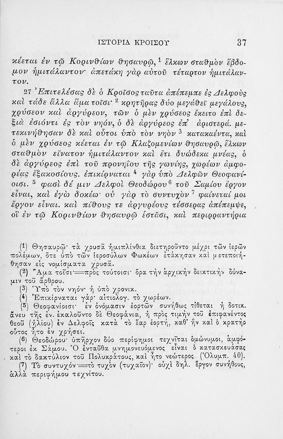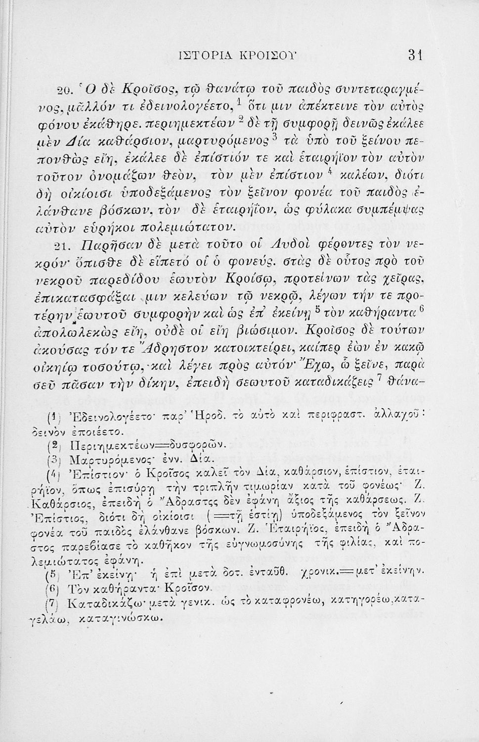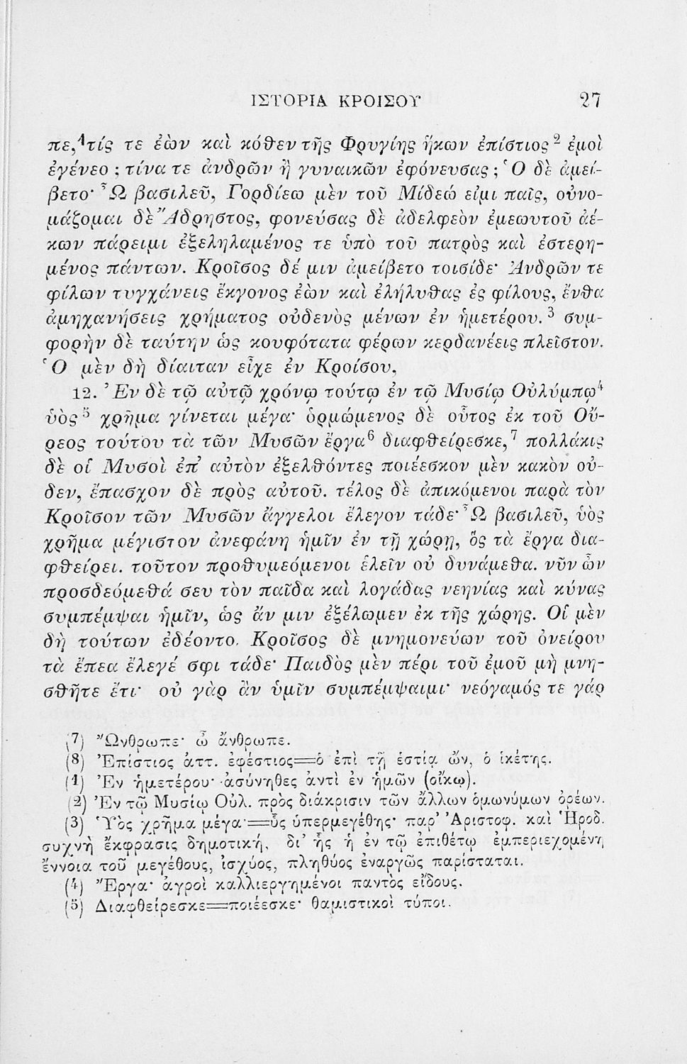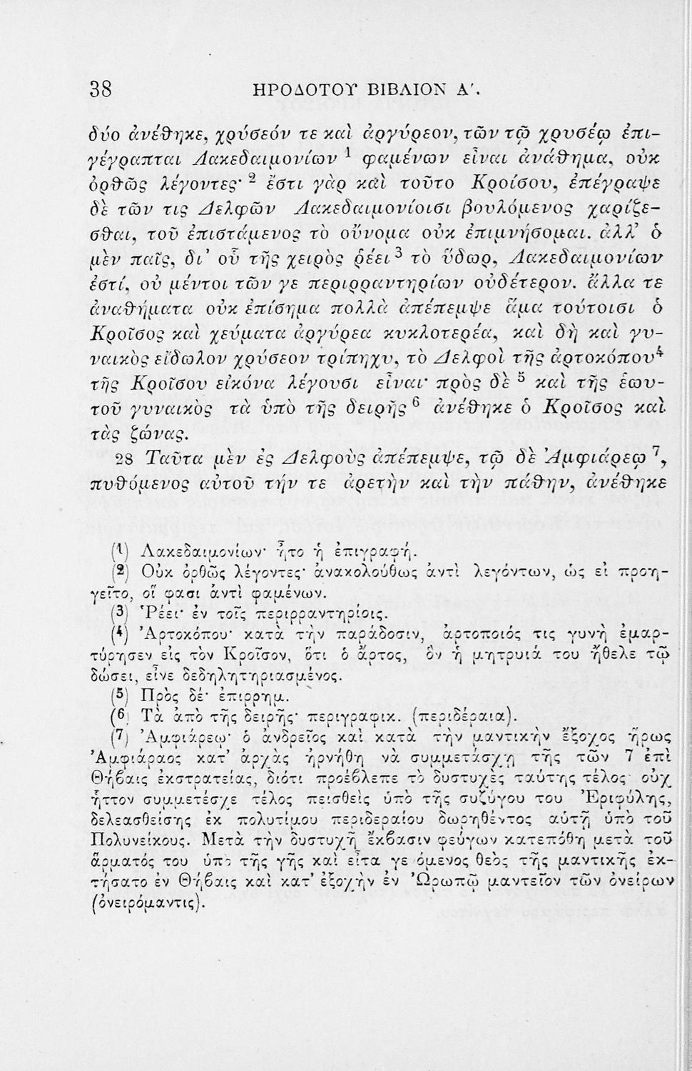 Σχολικό εγχειρίδιο Αρχαίων Ελληνικών για τα Γυμνάσια και τα Παρθεναγωγεία που περιλαμβάνει αποσπάσματα από το έργο του Ηροδότου Ιστορία και ερμηνευτικές σημειώσεις.