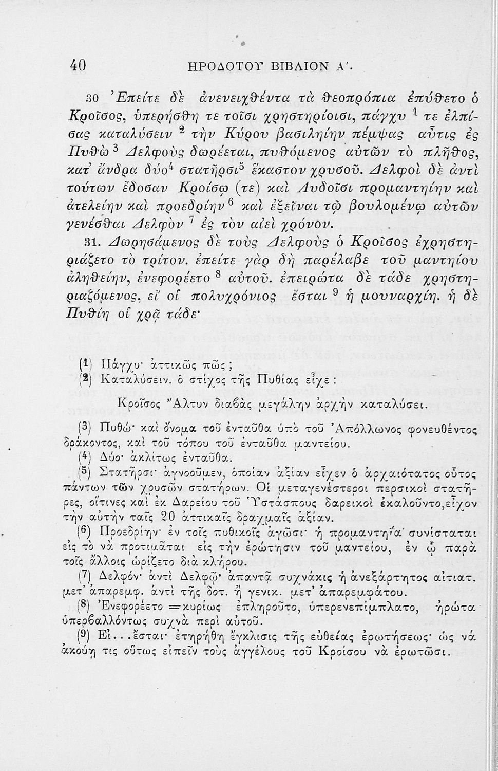 Σχολικό εγχειρίδιο Αρχαίων Ελληνικών για τους μαθητές των Γυμνασίων και Παρθεναγωγείων που περιέχει εισαγωγή στη ζωή και διάλεκτο του Ηρόδοτου, αποσπάσματα από το έργο του και ερμηνευτικές σημειώσεις.