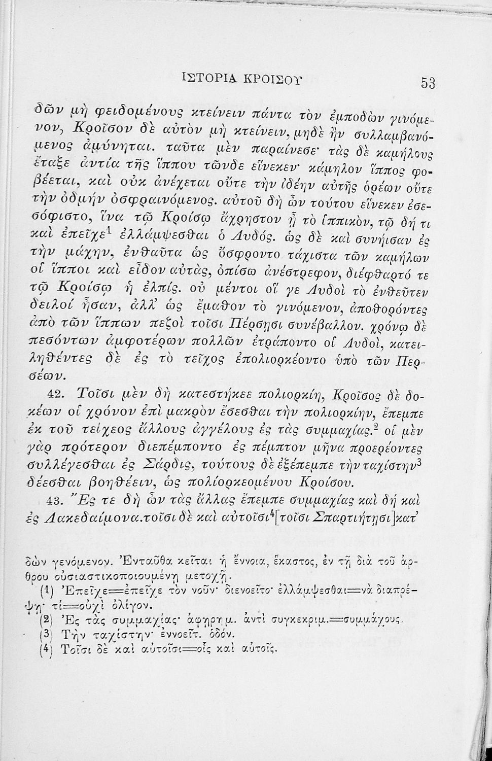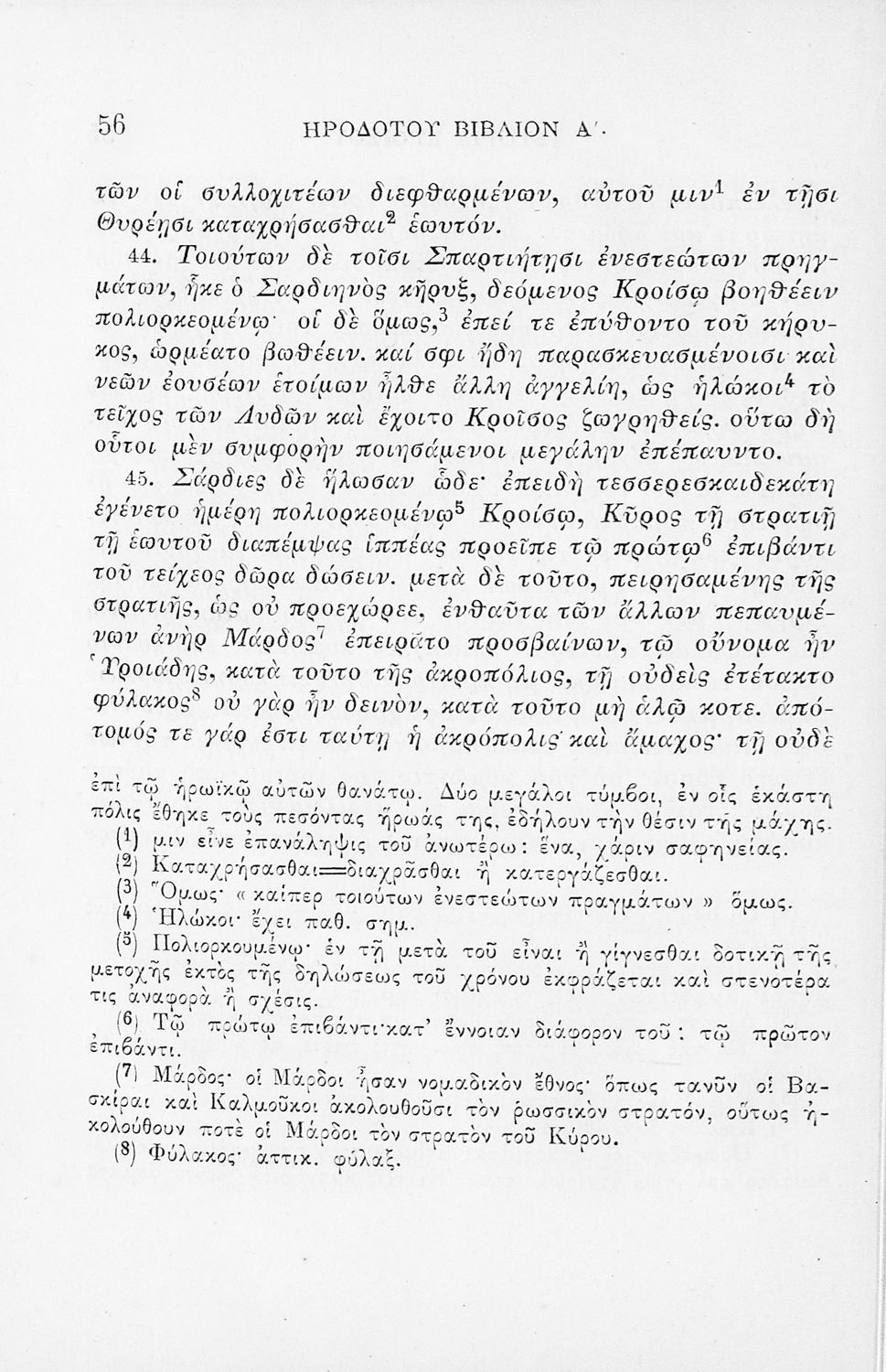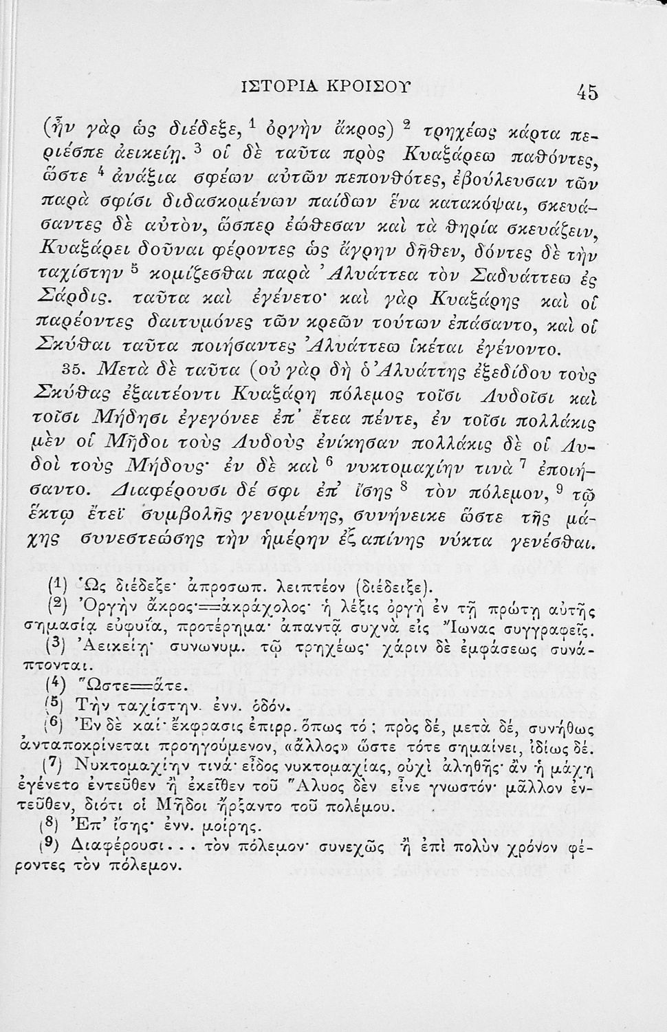 Σχολικό εγχειρίδιο Αρχαίων Ελληνικών για τα Γυμνάσια και τα Παρθεναγωγεία που περιλαμβάνει αποσπάσματα από το έργο του Ηροδότου Ιστορία και ερμηνευτικές σημειώσεις.