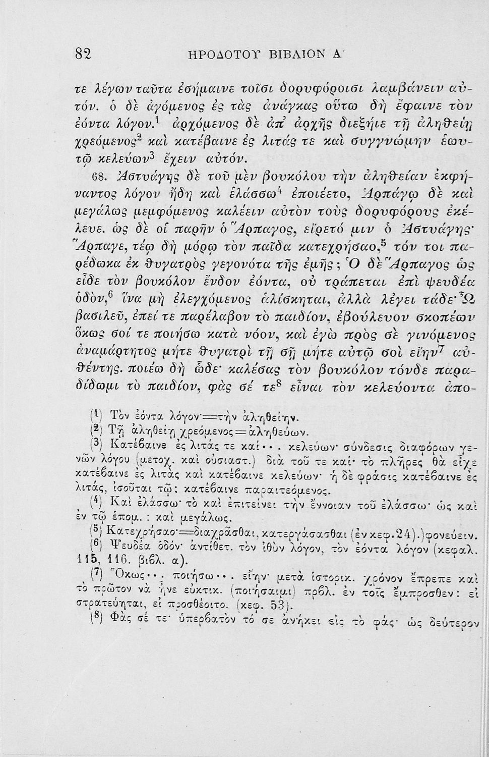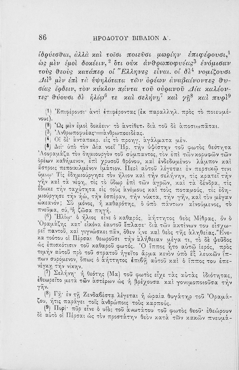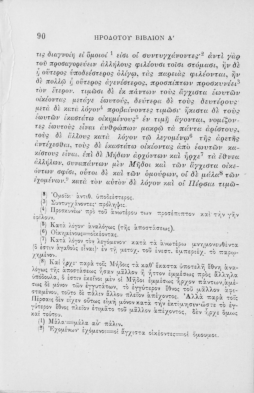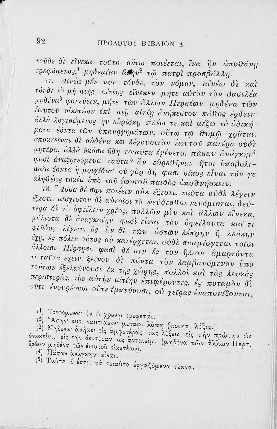 Σχολικό εγχειρίδιο Αρχαίων Ελληνικών για τα Γυμνάσια και τα Παρθεναγωγεία που περιλαμβάνει αποσπάσματα από το έργο του Ηροδότου Ιστορία και ερμηνευτικές σημειώσεις.