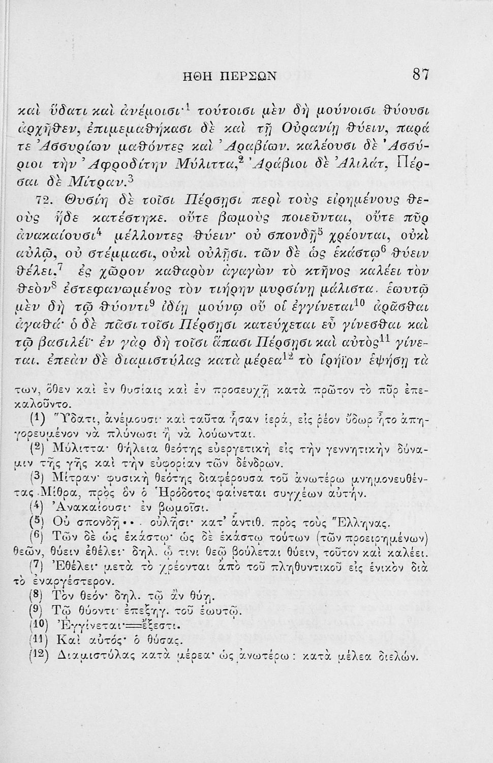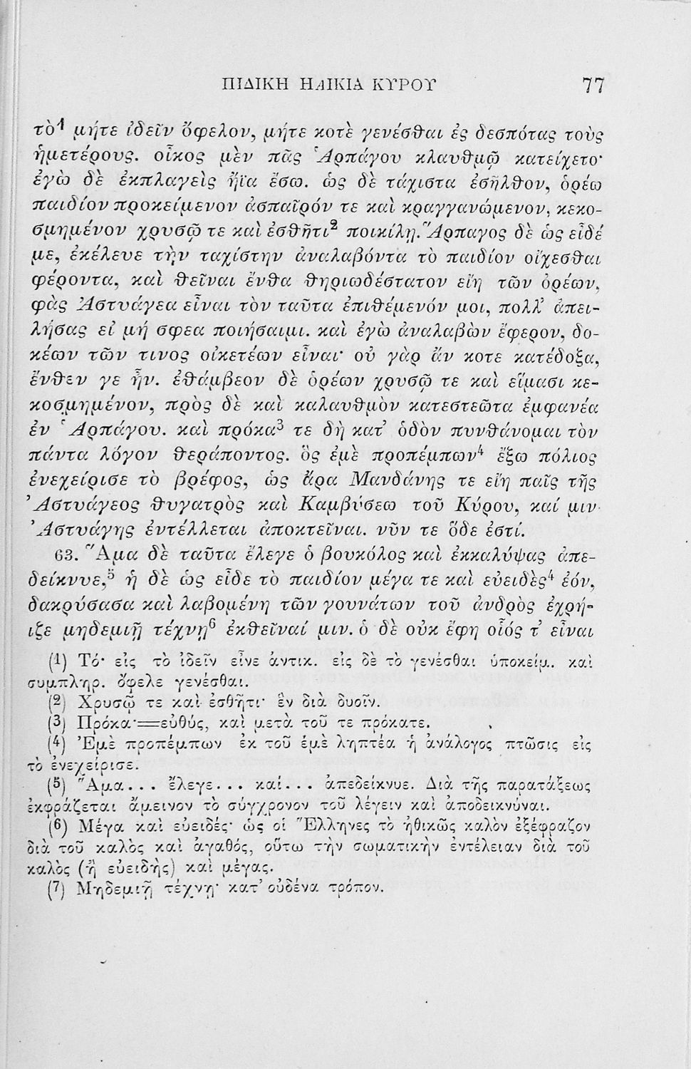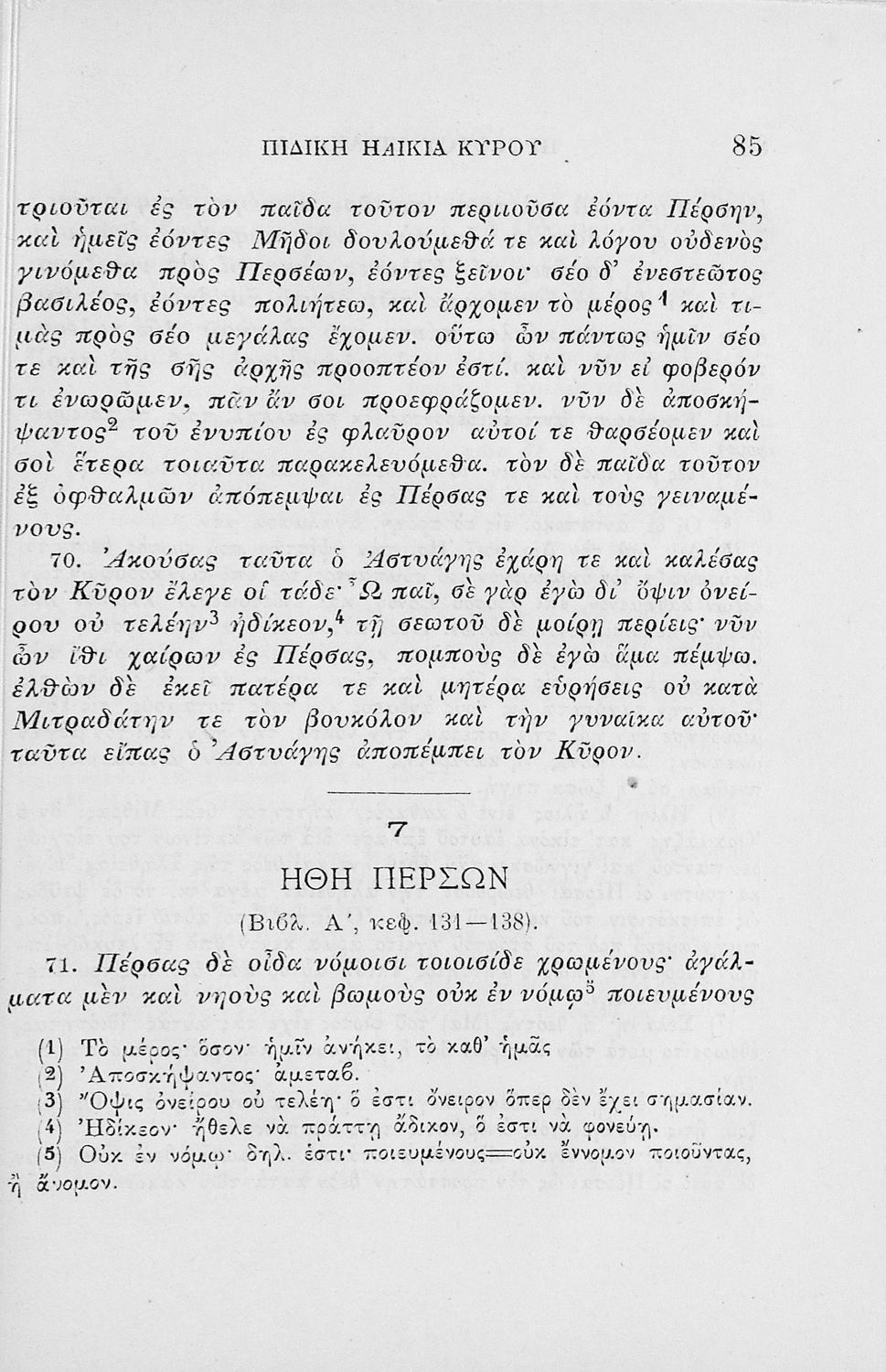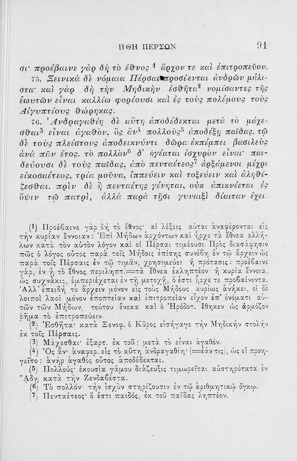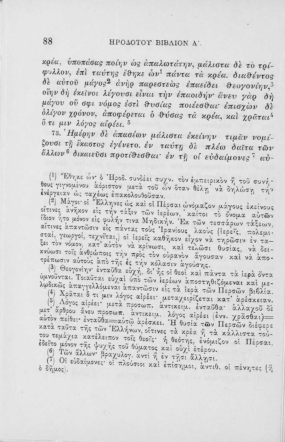 Σχολικό εγχειρίδιο Αρχαίων Ελληνικών για τα Γυμνάσια και τα Παρθεναγωγεία που περιλαμβάνει αποσπάσματα από το έργο του Ηροδότου Ιστορία και ερμηνευτικές σημειώσεις.