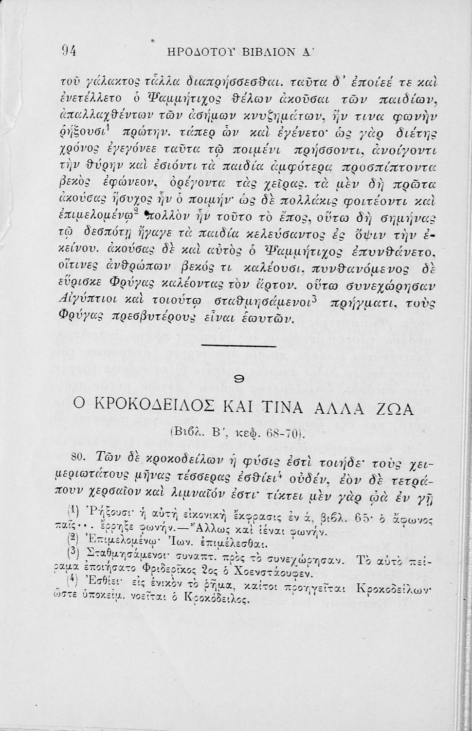 Σχολικό εγχειρίδιο Αρχαίων Ελληνικών για τους μαθητές των Γυμνασίων και Παρθεναγωγείων που περιέχει εισαγωγή στη ζωή και διάλεκτο του Ηρόδοτου, αποσπάσματα από το έργο του και ερμηνευτικές σημειώσεις.