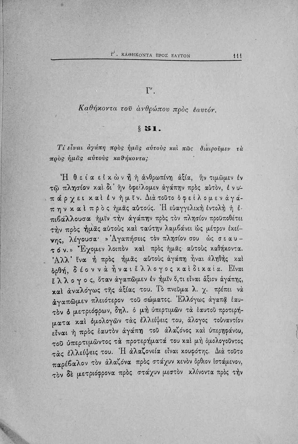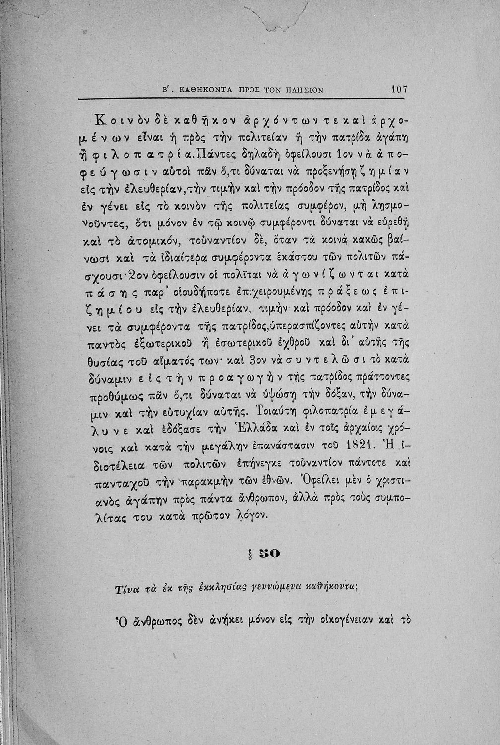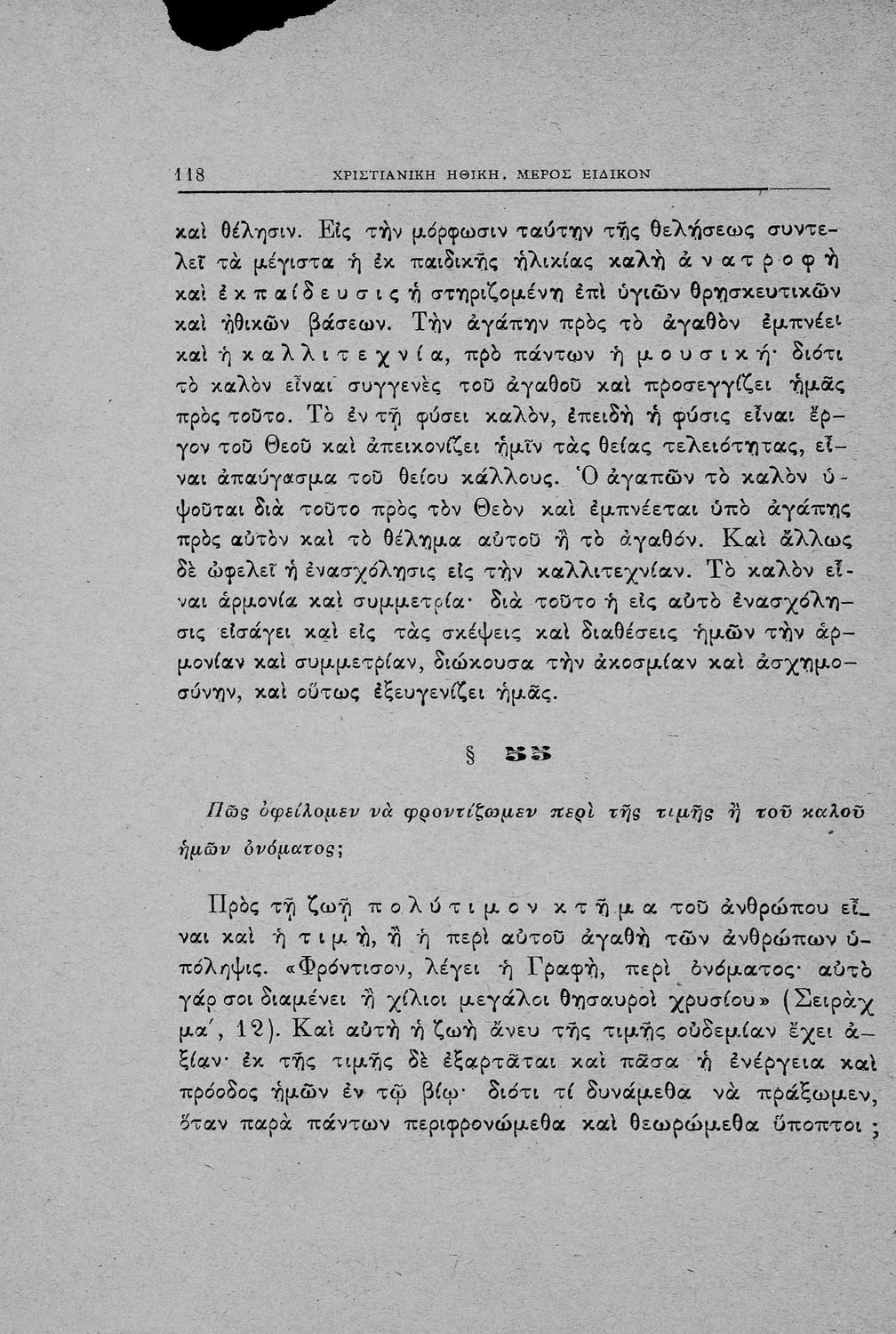 Βαθμίδα εκπαίδευσης: Δευτεροβάθμια Τάξη: Γυμνάσιο Μάθημα: Θρησκευτικά Γλώσσα: Καθαρεύουσα Παρουσίαση περιεχομένου: Σχολικό εγχειρίδιο για τις τάξεις του Γυμνασίου για το μάθημα των Θρησκευτικών. Το εγχειρίδιο περιλαμβάνει εισαγωγικά τον ορισμό της χριστιανικής ηθικής, τις αξίες και τις διαιρέσεις της και ακολουθεί το κύριο μέρος του βιβλίου που διακρίνεται σε γενικό και ειδικό. Το γενικό μέρος αναφέρεται στις γενικές αρχές της χριστιανικής πίστης ενώ το ειδικό μέρος και πιο εκτενές ασχολείται με τα καθήκοντα του πιστού ως προς τον Θεό, προς τον πλησίον και προς τον ίδιο μας τον εαυτό απέναντι στα χριστιανικά ιδεώδη. |