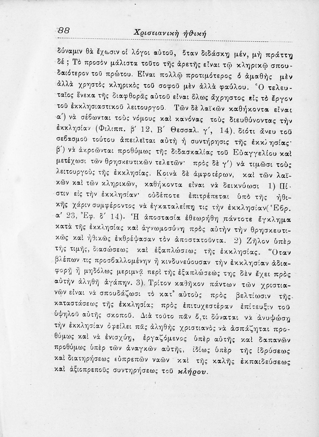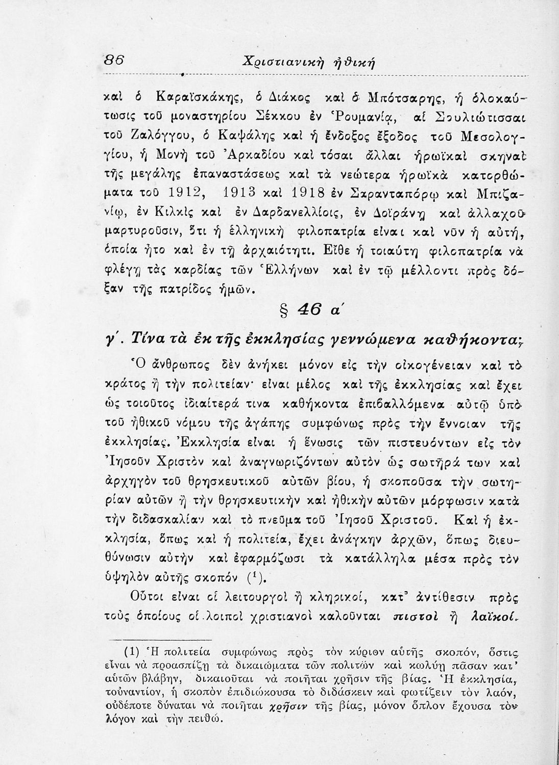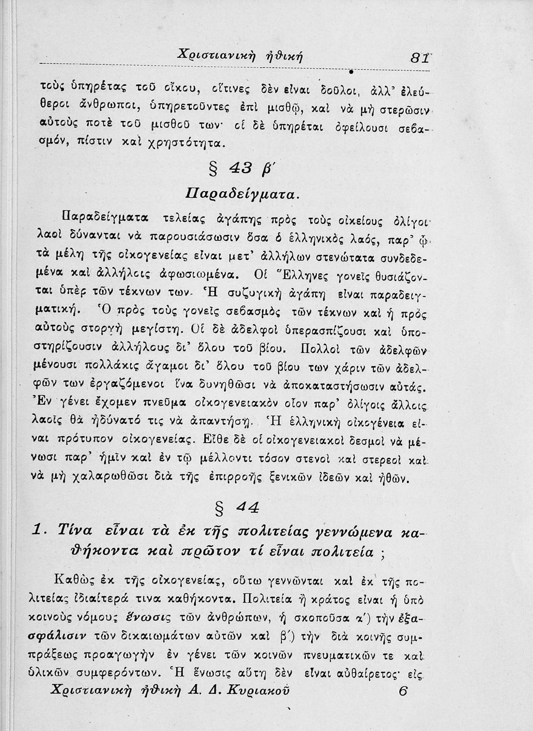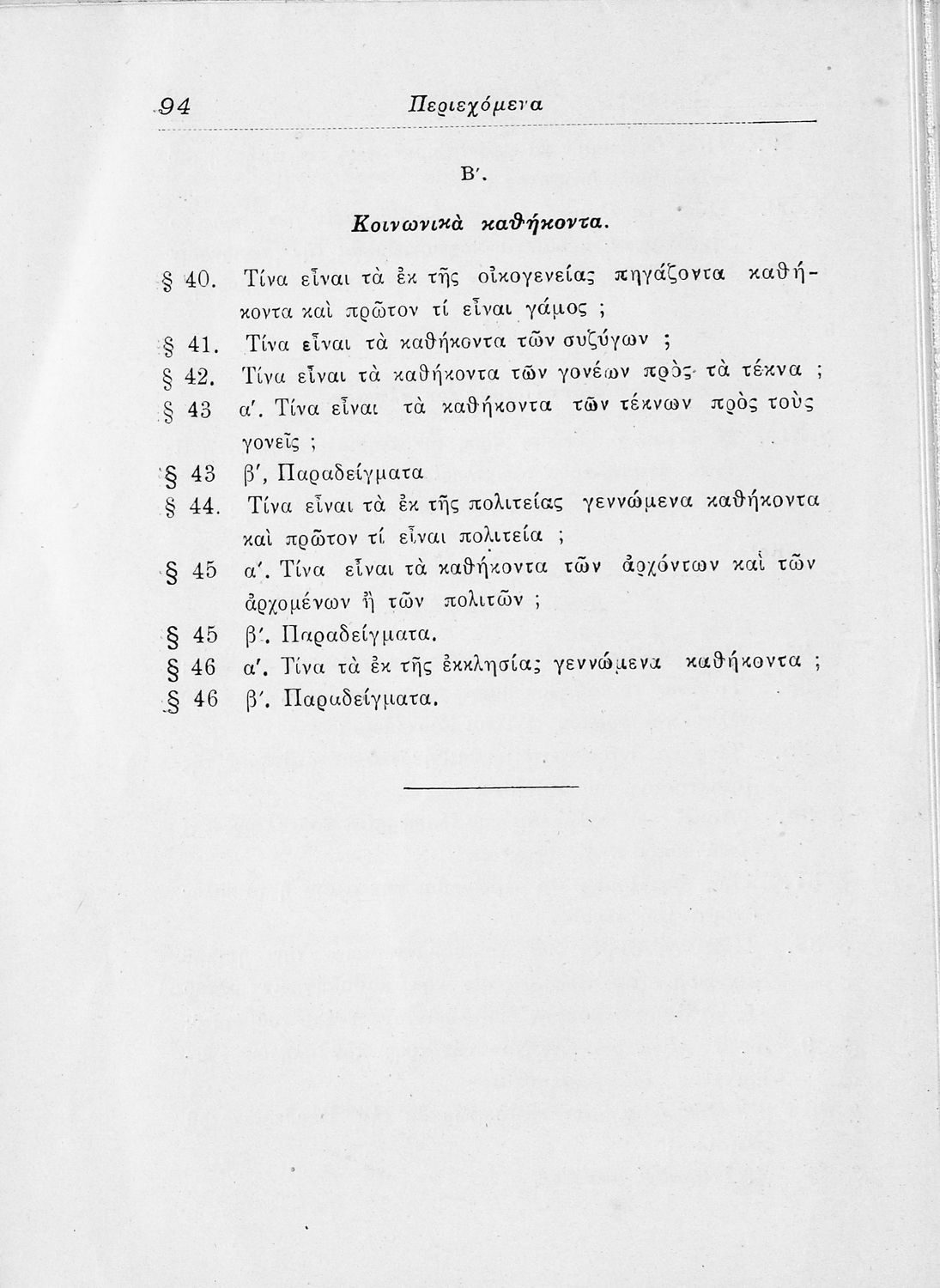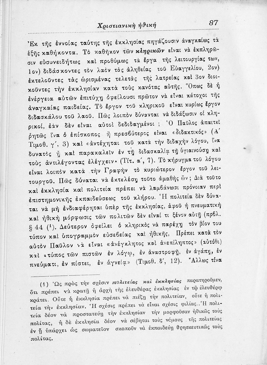 Βαθμίδα εκπαίδευσης: Δευτεροβάθμια Τάξη: Γυμνάσιο Μάθημα: Θρησκευτικά Γλώσσα: Καθαρεύουσα Παρουσίαση περιεχομένου: Σχολικό εγχειρίδιο Θρησκευτικών για τα Γυμνάσια που εστιάζει στη χριστιανική ηθική και αναλύει τα καθήκοντα του ανθρώπου προς τον Θεό, τους άλλους ανθρώπους και τον εαυτό του. |