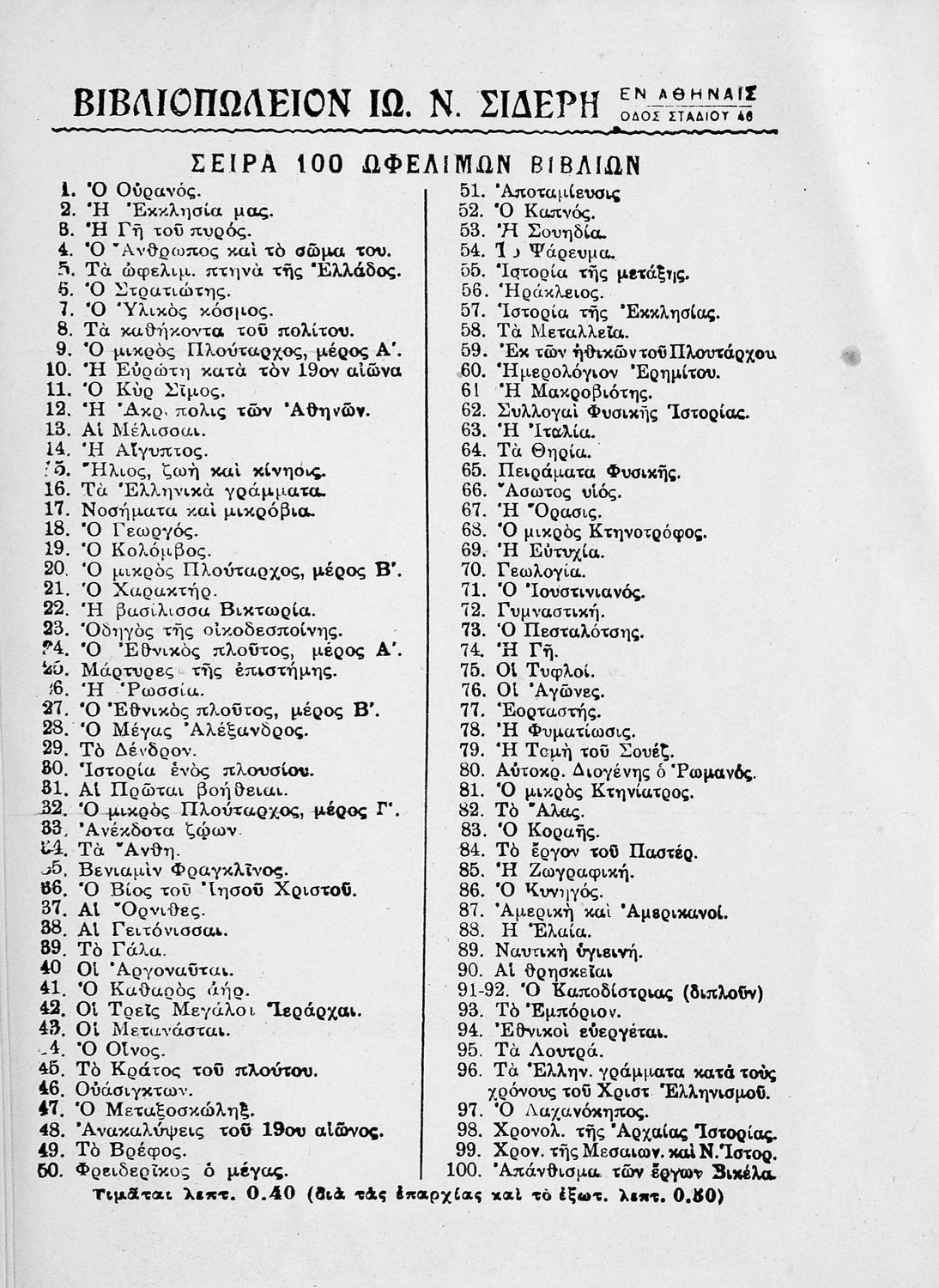 Εκδότης: Ιωάννης Ν. Σιδέρης Έτος έκδοσης: 1920 Τόπος έκδοσης: Αθήνα Υπουργική απόφαση / Σύμβαση: 1497/ 23-11-1907 Έτος έγκρισης: 1907 |