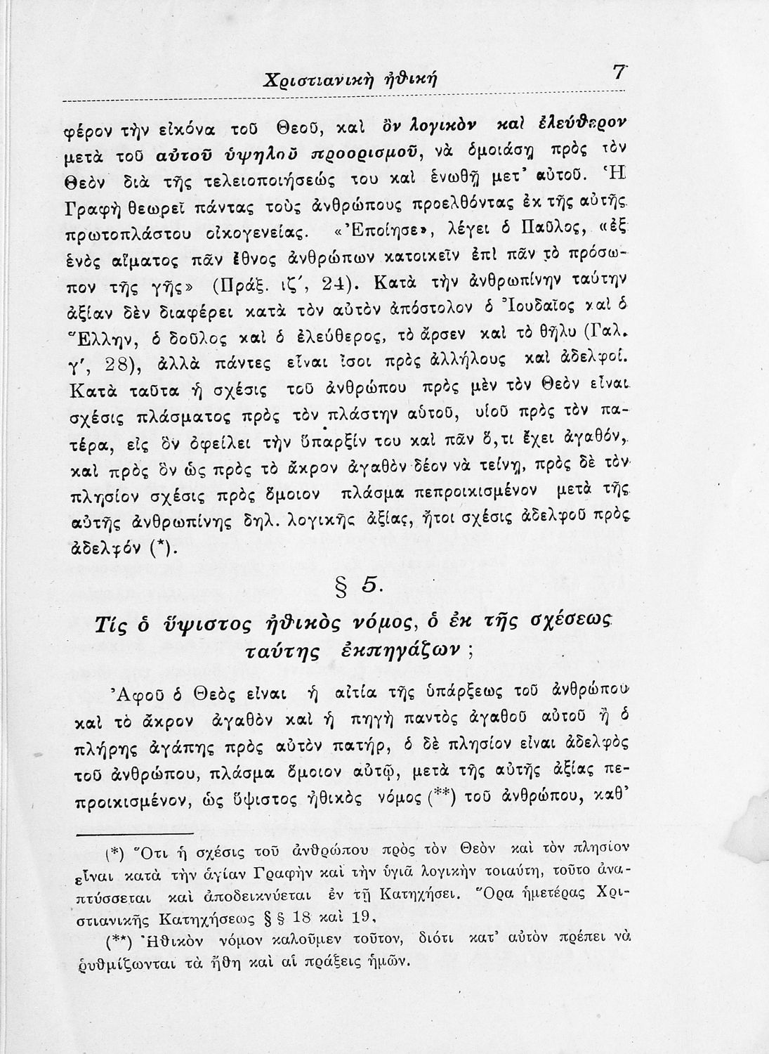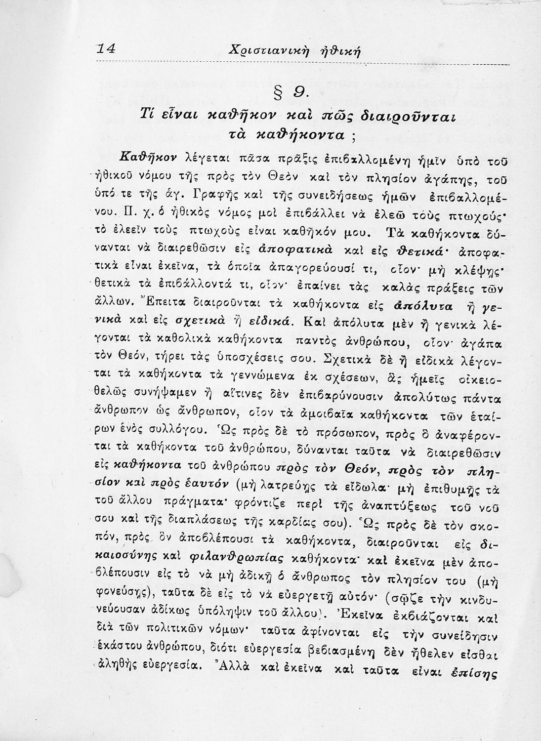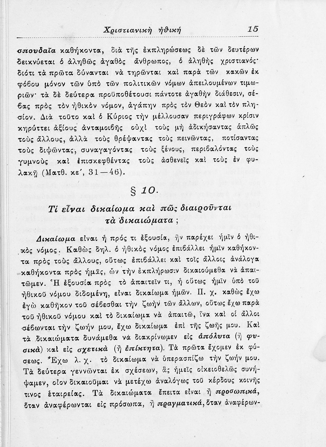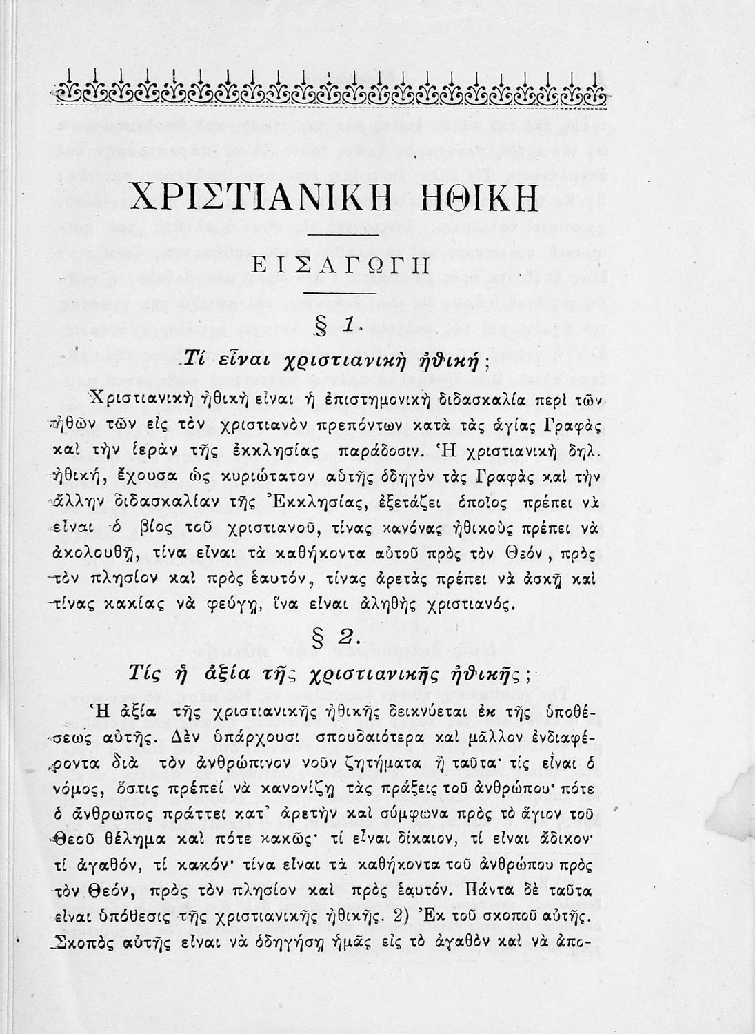 Βαθμίδα εκπαίδευσης: Δευτεροβάθμια Τάξη: Γυμνάσιο Μάθημα: Θρησκευτικά Γλώσσα: Καθαρεύουσα Παρουσίαση περιεχομένου: Σχολικό εγχειρίδιο Θρησκευτικών για τα Γυμνάσια που εστιάζει στη χριστιανική ηθική και αναλύει τα καθήκοντα του ανθρώπου προς τον Θεό, τους άλλους ανθρώπους και τον εαυτό του. |