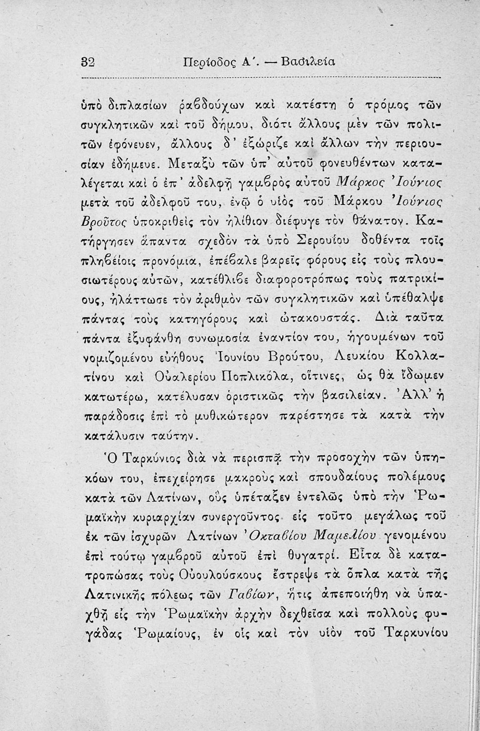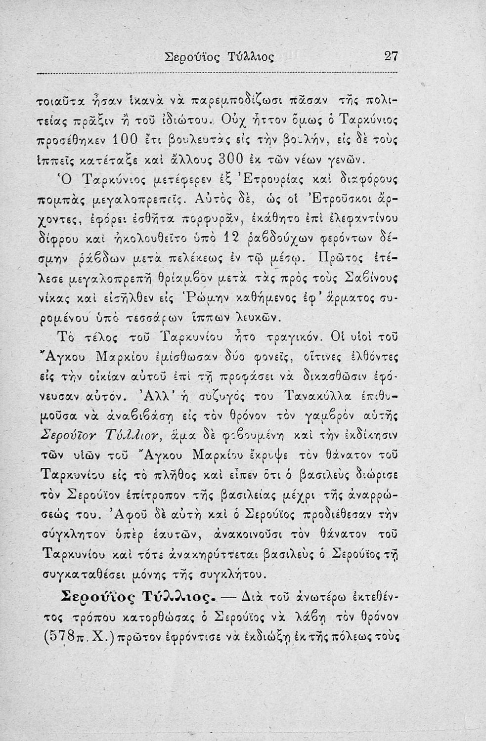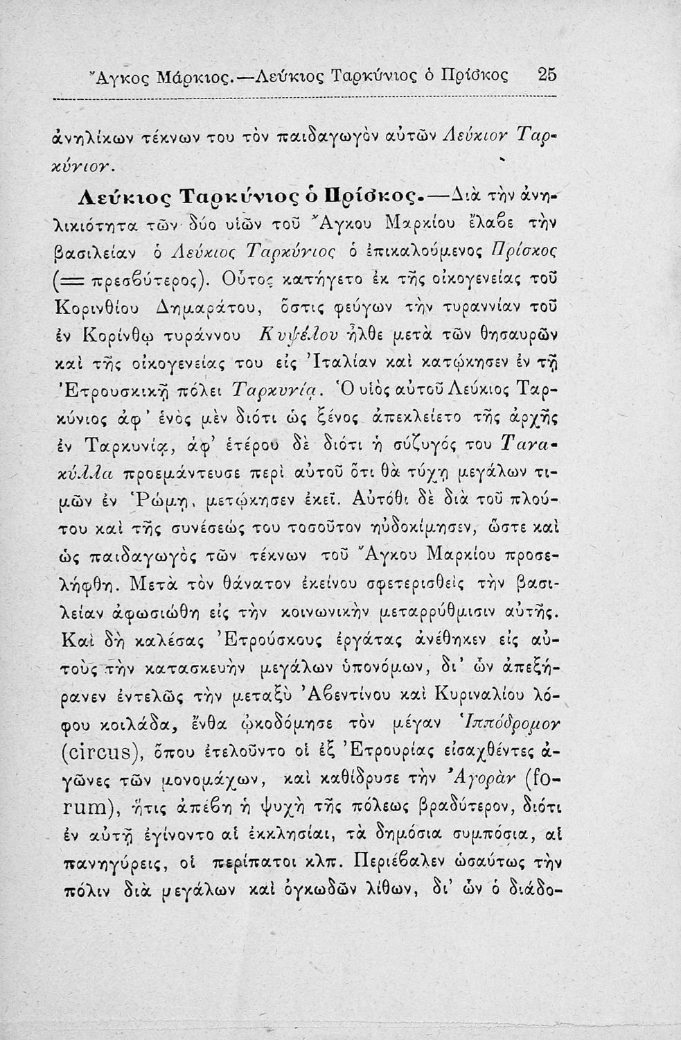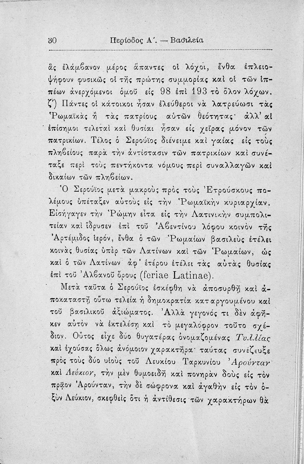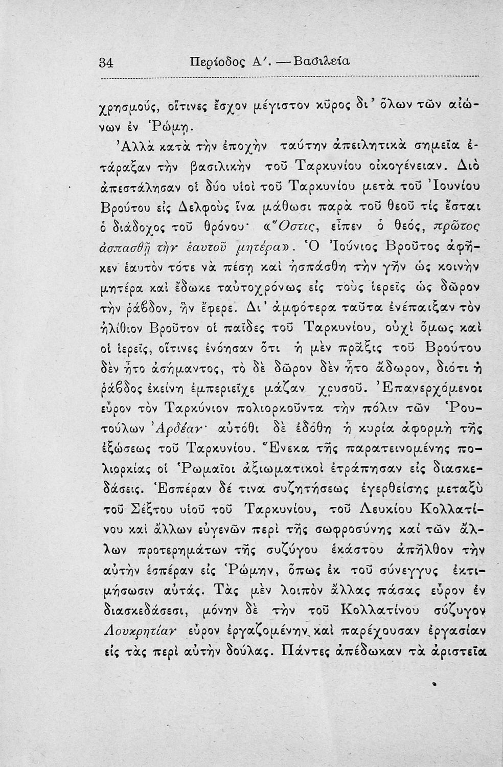 Βαθμίδα εκπαίδευσης: Δευτεροβάθμια Τάξη: Γυμνάσιο / Αστικό Σχολείο Μάθημα: Ιστορία Γλώσσα: Καθαρεύουσα Παρουσίαση περιεχομένου: Σχολικό εγχειρίδιο Ιστορίας για τα Γυμνάσια και τα Αστικά Σχολεία περιλαμβάνει την περίοδο από την ίδρυση της Ρώμης ως την κατάλυση του δυτικού ρωμαϊκού κράτους. |