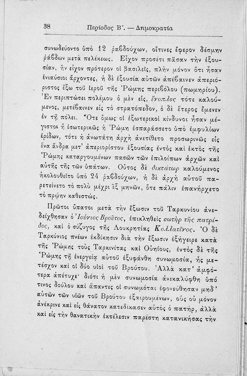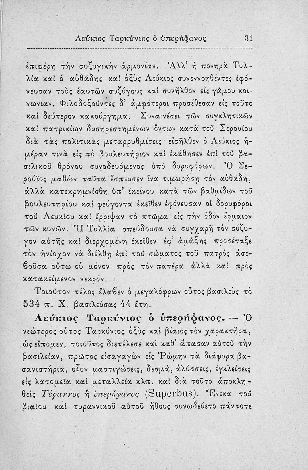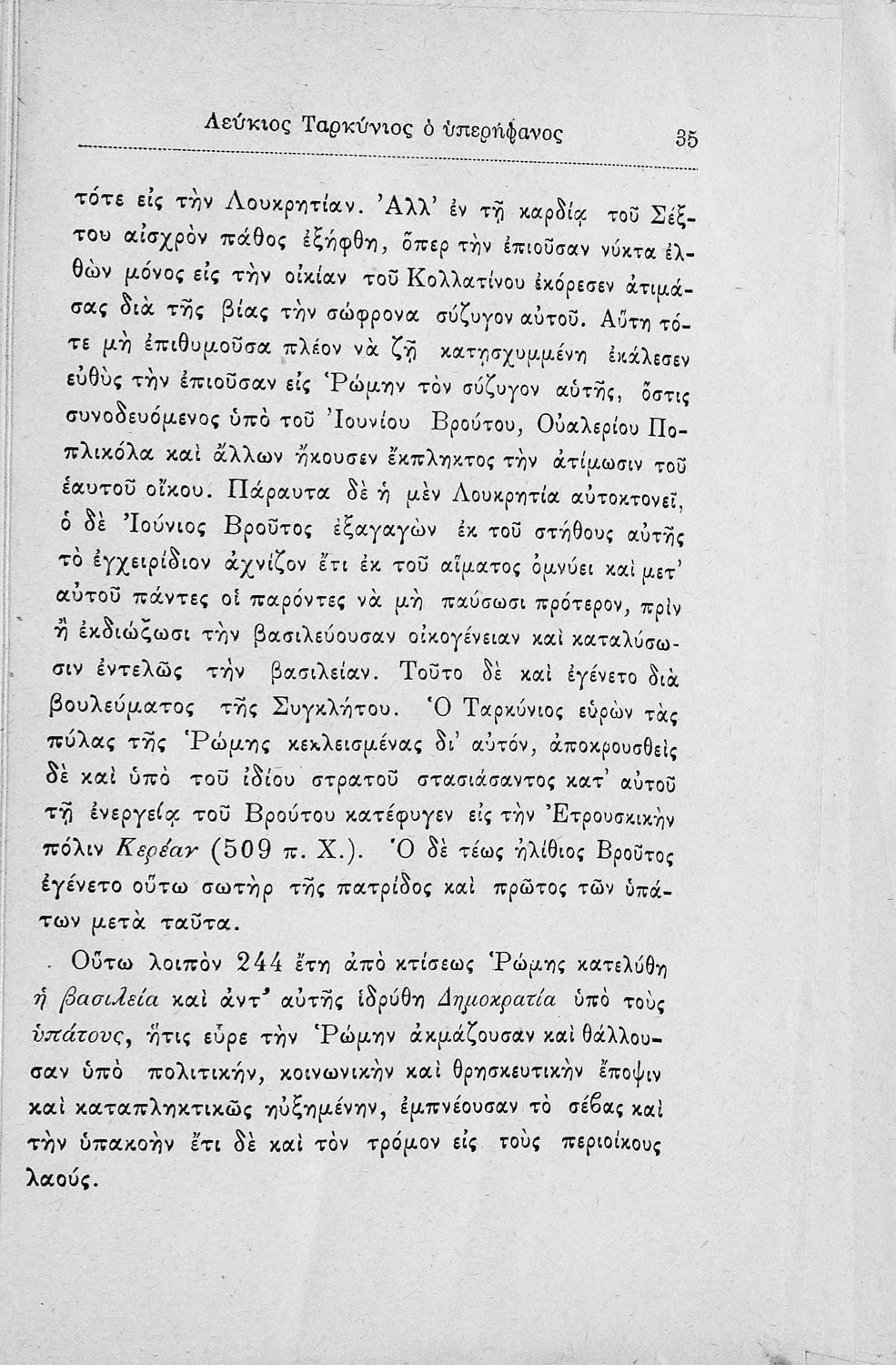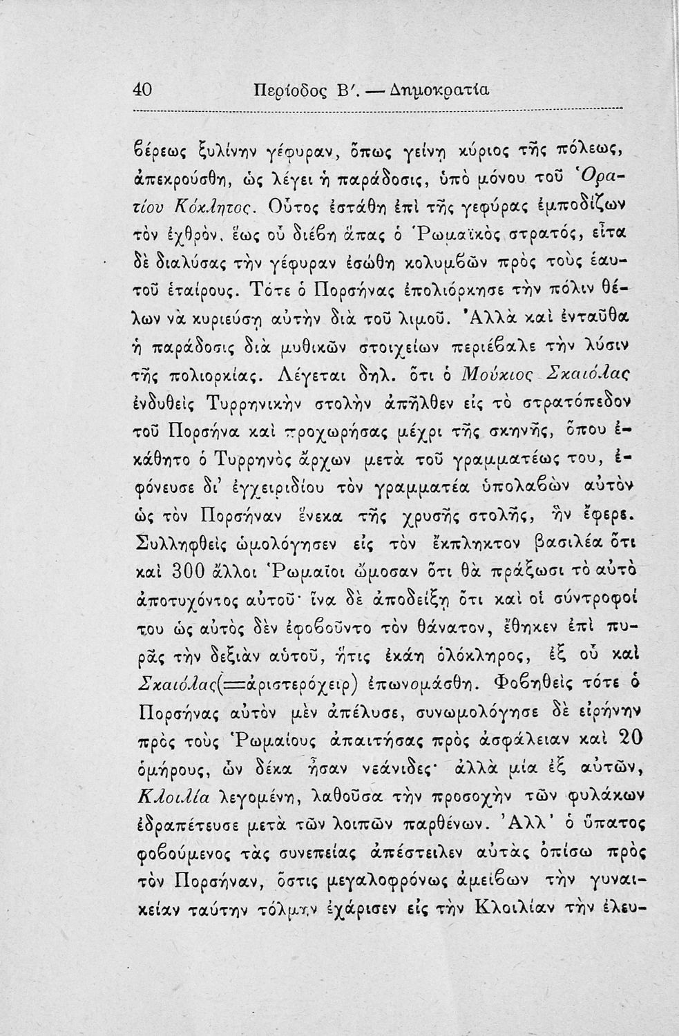 Βαθμίδα εκπαίδευσης: Δευτεροβάθμια Τάξη: Γυμνάσιο / Αστικό Σχολείο Μάθημα: Ιστορία Γλώσσα: Καθαρεύουσα Παρουσίαση περιεχομένου: Σχολικό εγχειρίδιο Ιστορίας για τα Γυμνάσια και τα Αστικά Σχολεία περιλαμβάνει την περίοδο από την ίδρυση της Ρώμης ως την κατάλυση του δυτικού ρωμαϊκού κράτους. |