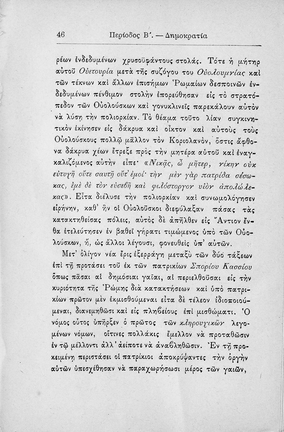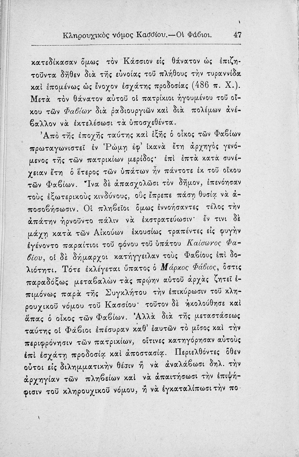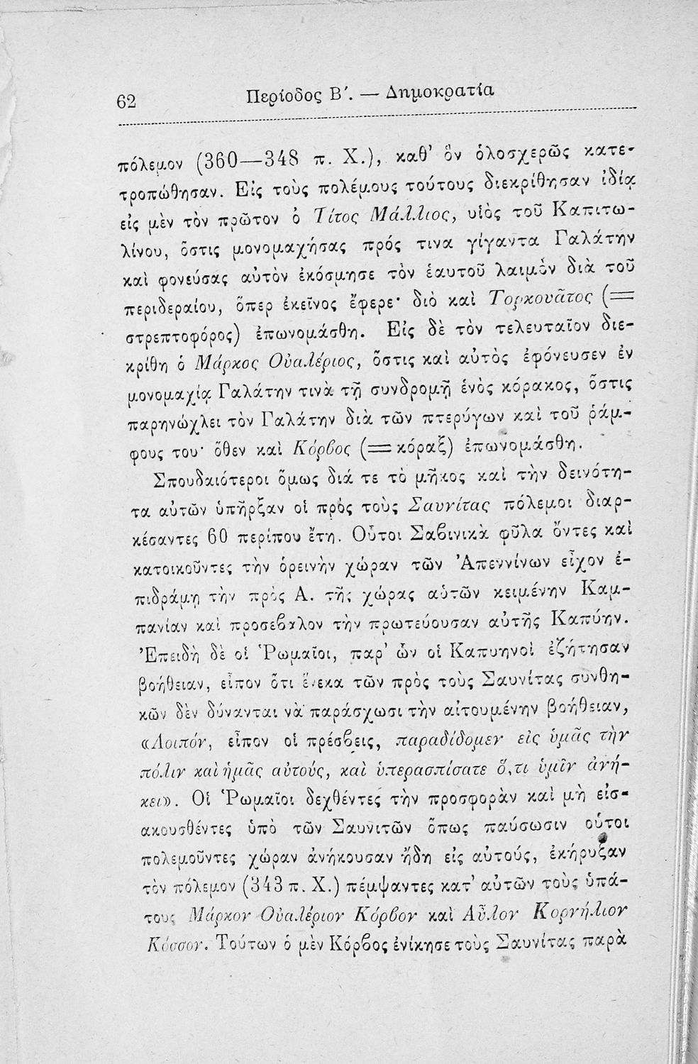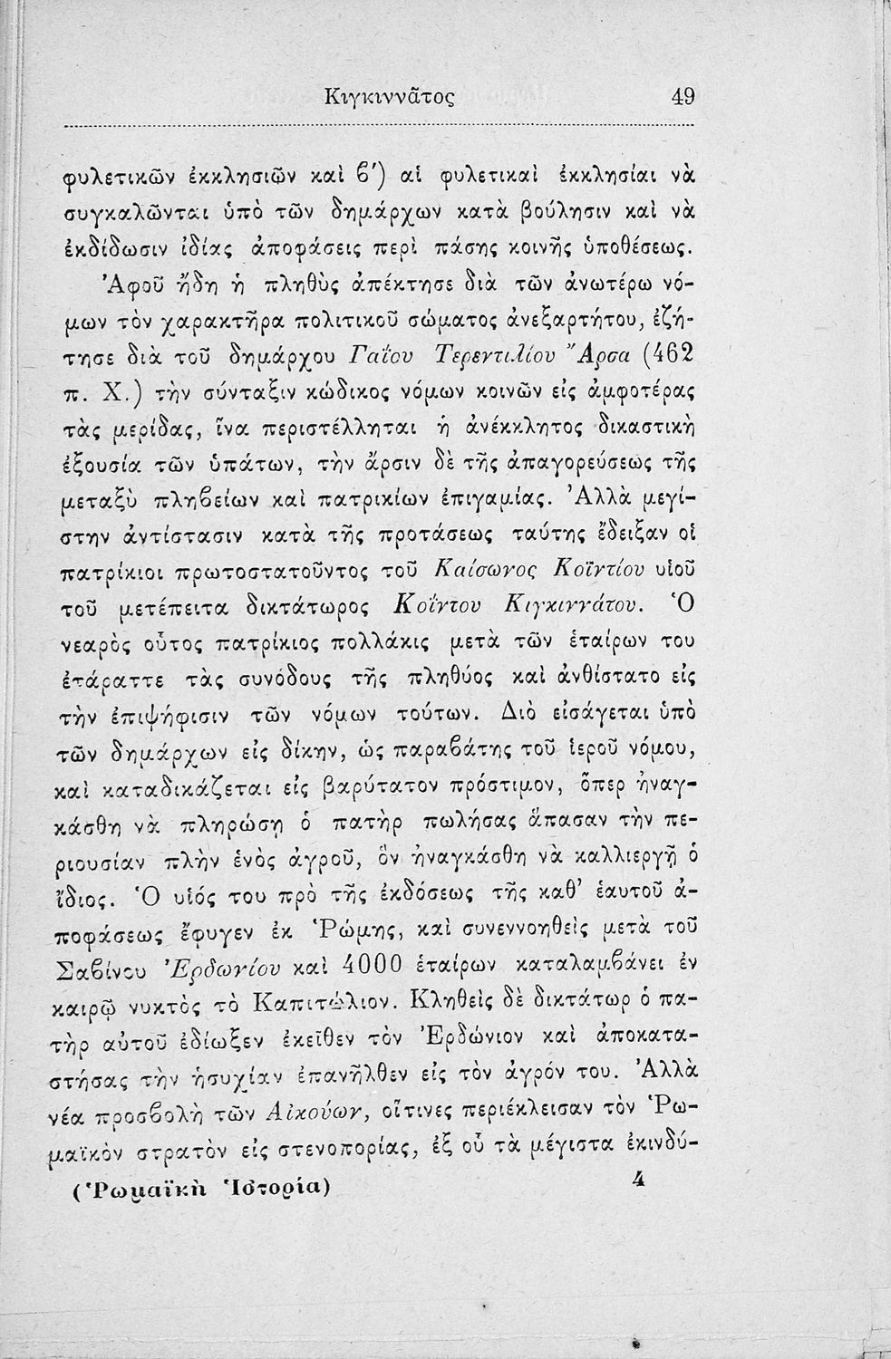 Βαθμίδα εκπαίδευσης: Δευτεροβάθμια Τάξη: Γυμνάσιο / Αστικό Σχολείο Μάθημα: Ιστορία Γλώσσα: Καθαρεύουσα Παρουσίαση περιεχομένου: Σχολικό εγχειρίδιο Ιστορίας για τα Γυμνάσια και τα Αστικά Σχολεία περιλαμβάνει την περίοδο από την ίδρυση της Ρώμης ως την κατάλυση του δυτικού ρωμαϊκού κράτους. |