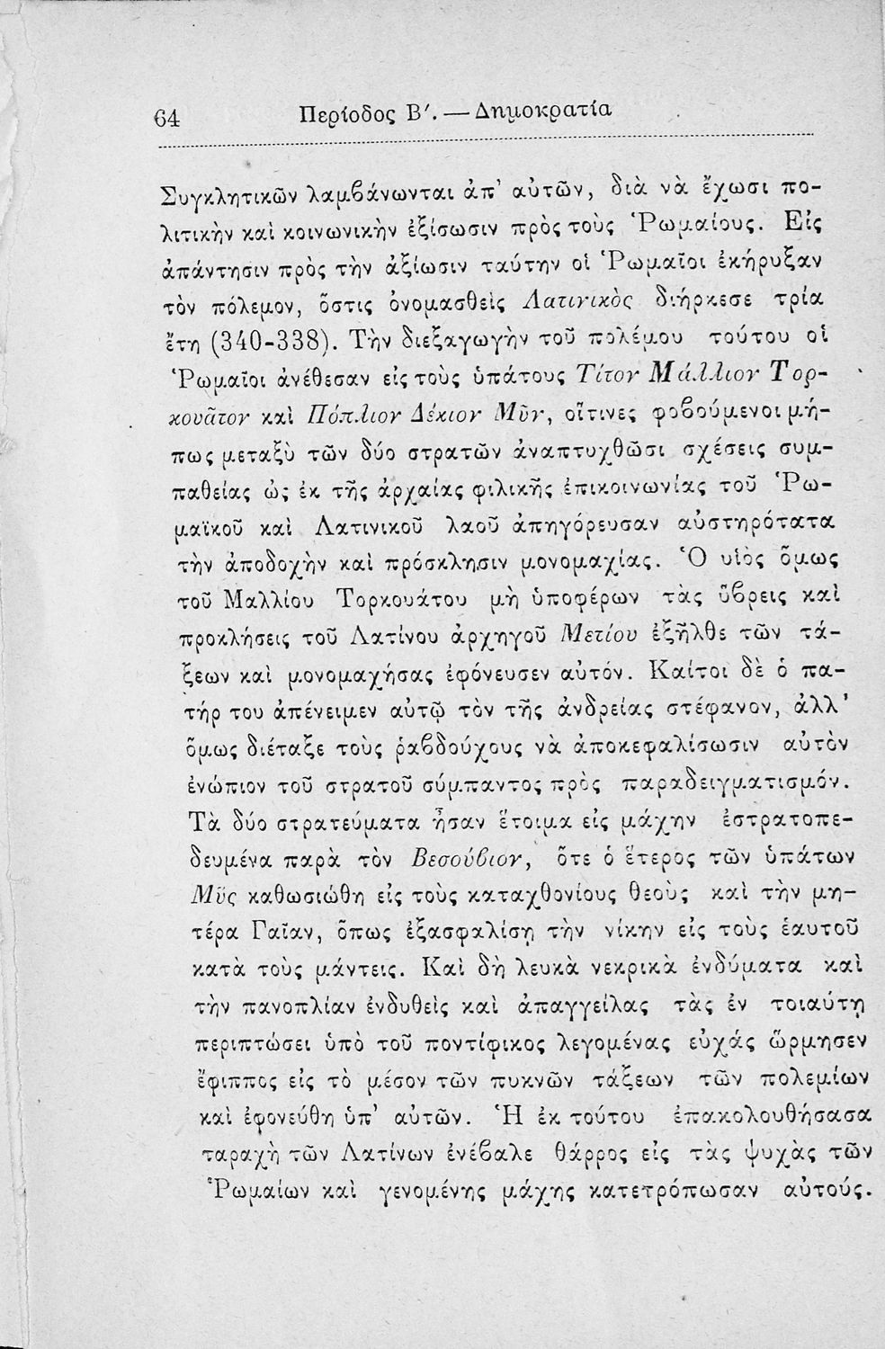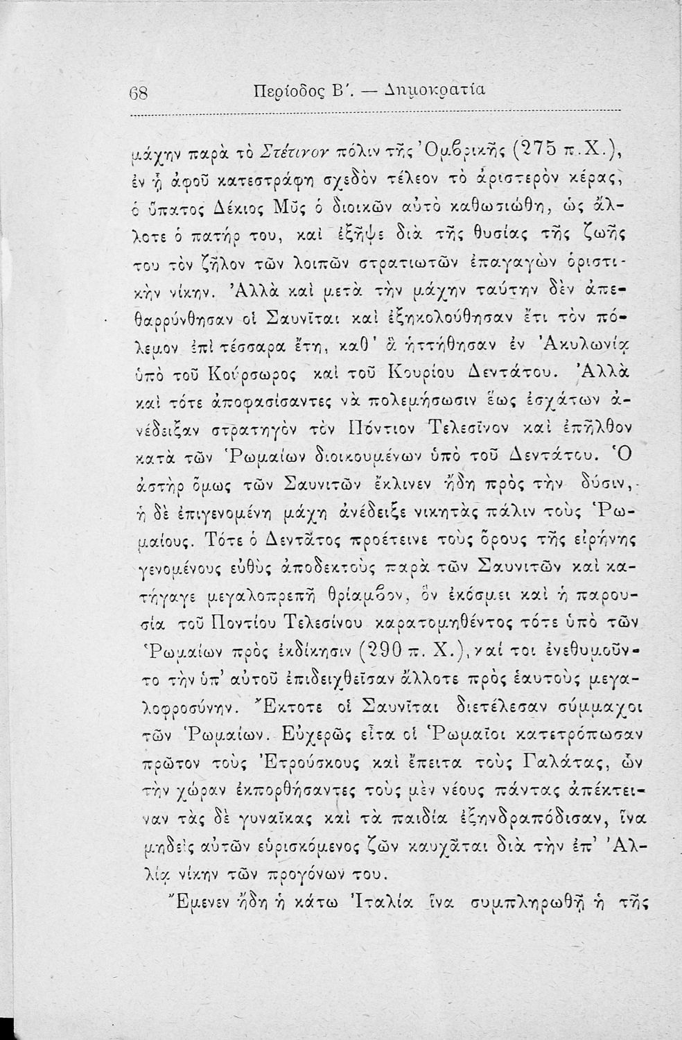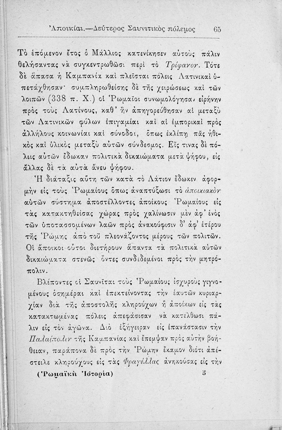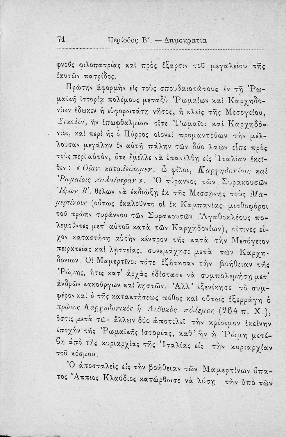 Βαθμίδα εκπαίδευσης: Δευτεροβάθμια Τάξη: Γυμνάσιο / Αστικό Σχολείο Μάθημα: Ιστορία Γλώσσα: Καθαρεύουσα Παρουσίαση περιεχομένου: Σχολικό εγχειρίδιο Ιστορίας για τα Γυμνάσια και τα Αστικά Σχολεία περιλαμβάνει την περίοδο από την ίδρυση της Ρώμης ως την κατάλυση του δυτικού ρωμαϊκού κράτους. |