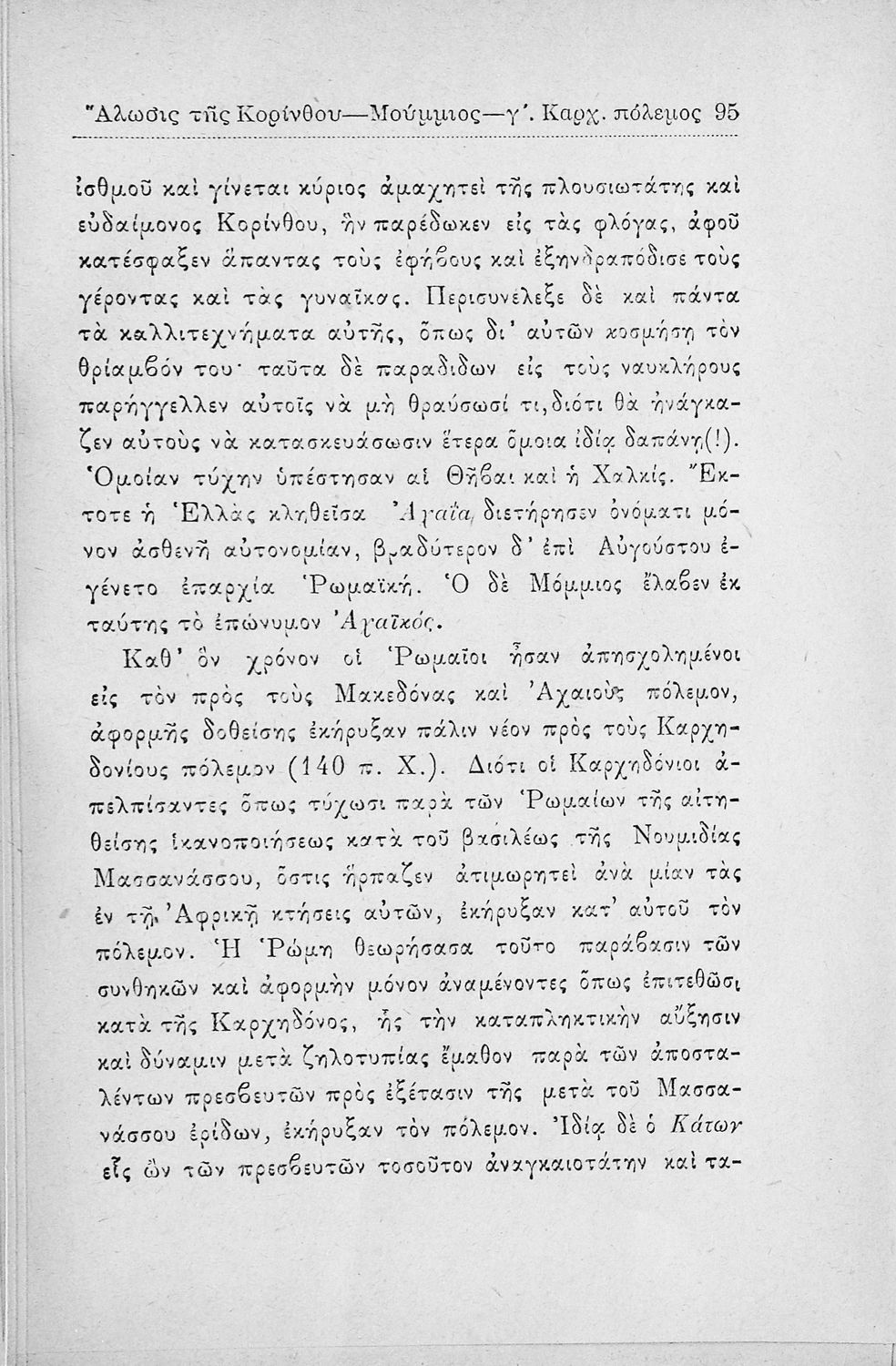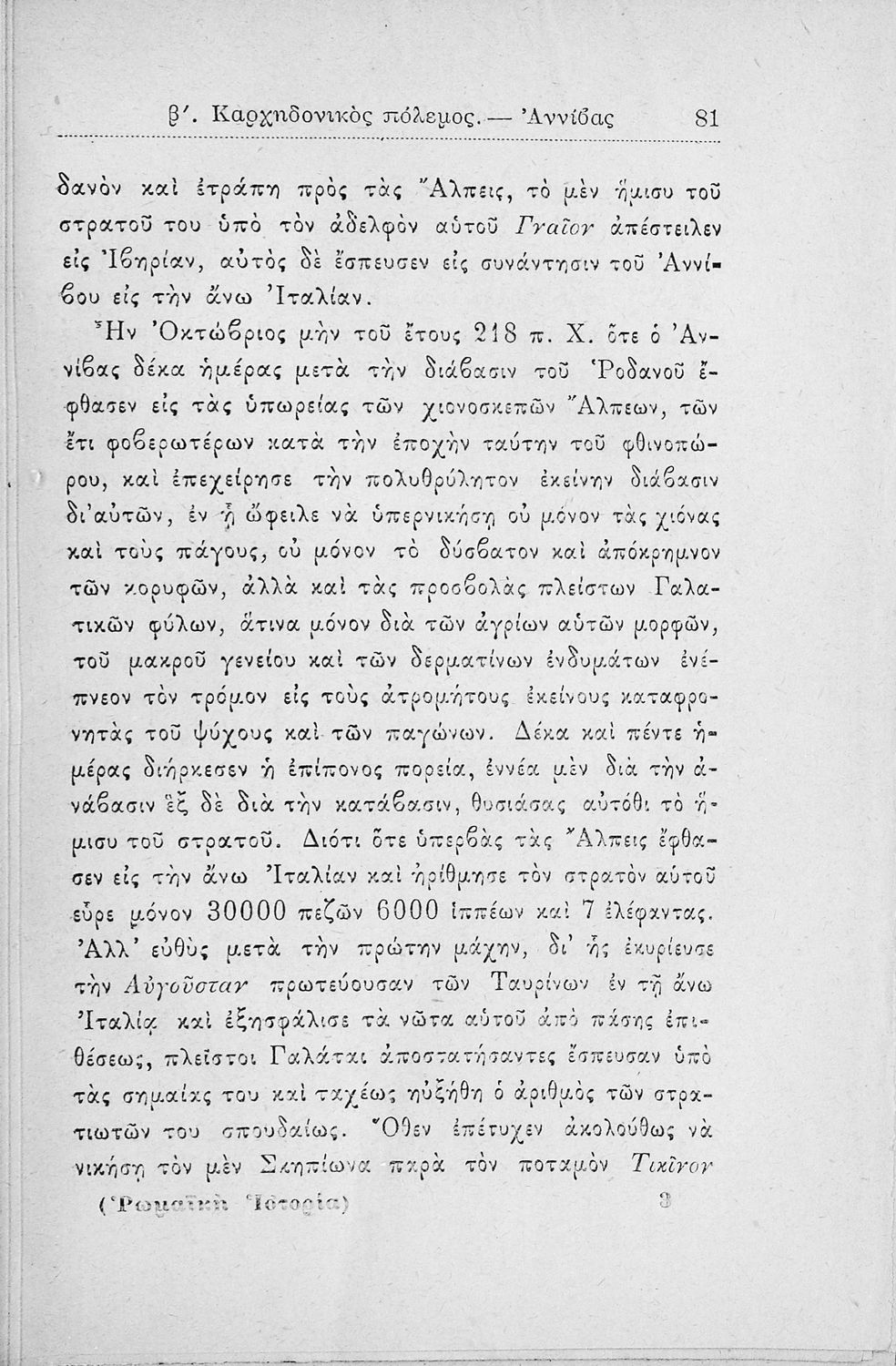 Βαθμίδα εκπαίδευσης: Δευτεροβάθμια Τάξη: Γυμνάσιο / Αστικό Σχολείο Μάθημα: Ιστορία Γλώσσα: Καθαρεύουσα Παρουσίαση περιεχομένου: Σχολικό εγχειρίδιο Ιστορίας για τα Γυμνάσια και τα Αστικά Σχολεία περιλαμβάνει την περίοδο από την ίδρυση της Ρώμης ως την κατάλυση του δυτικού ρωμαϊκού κράτους. |