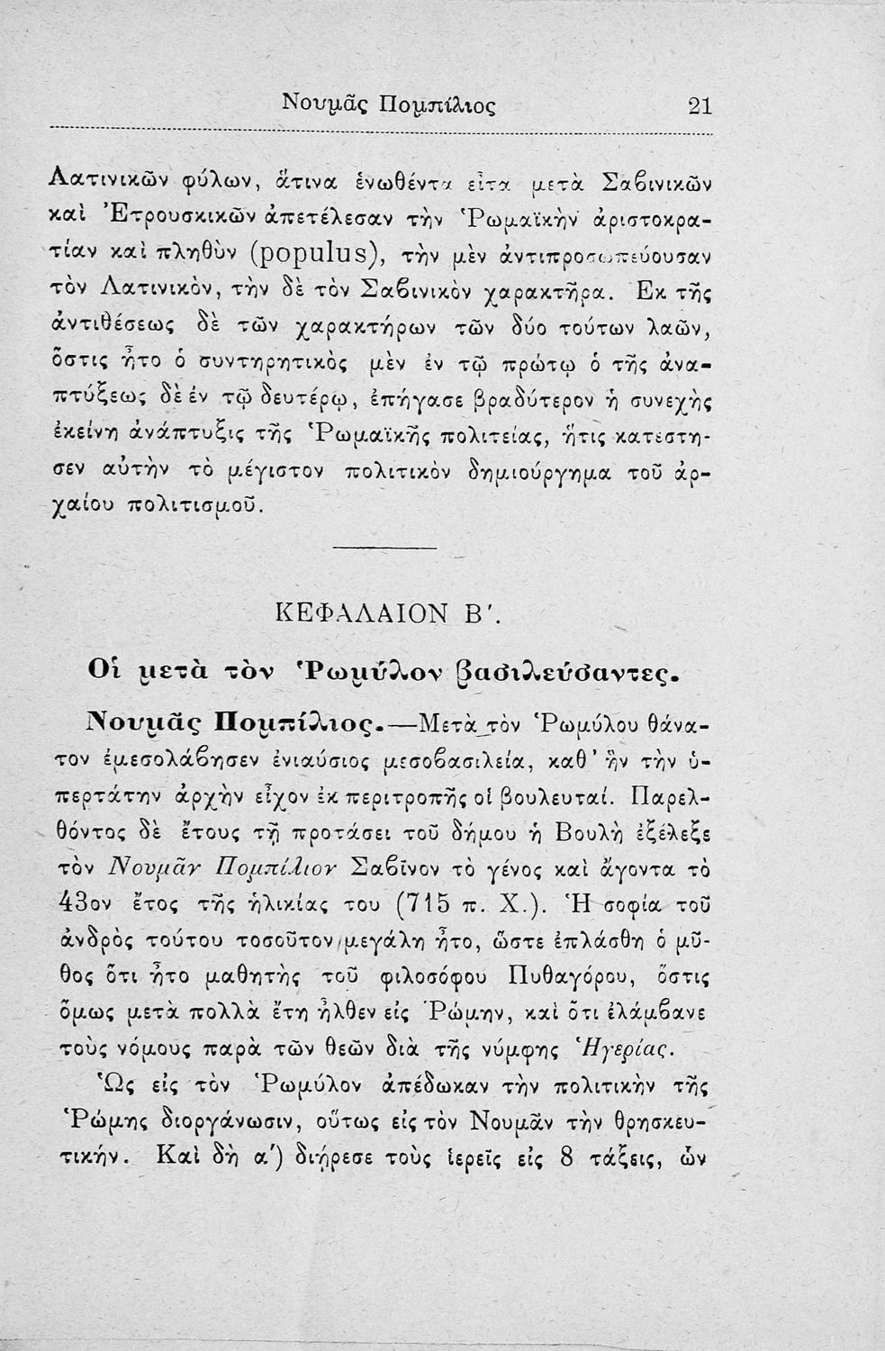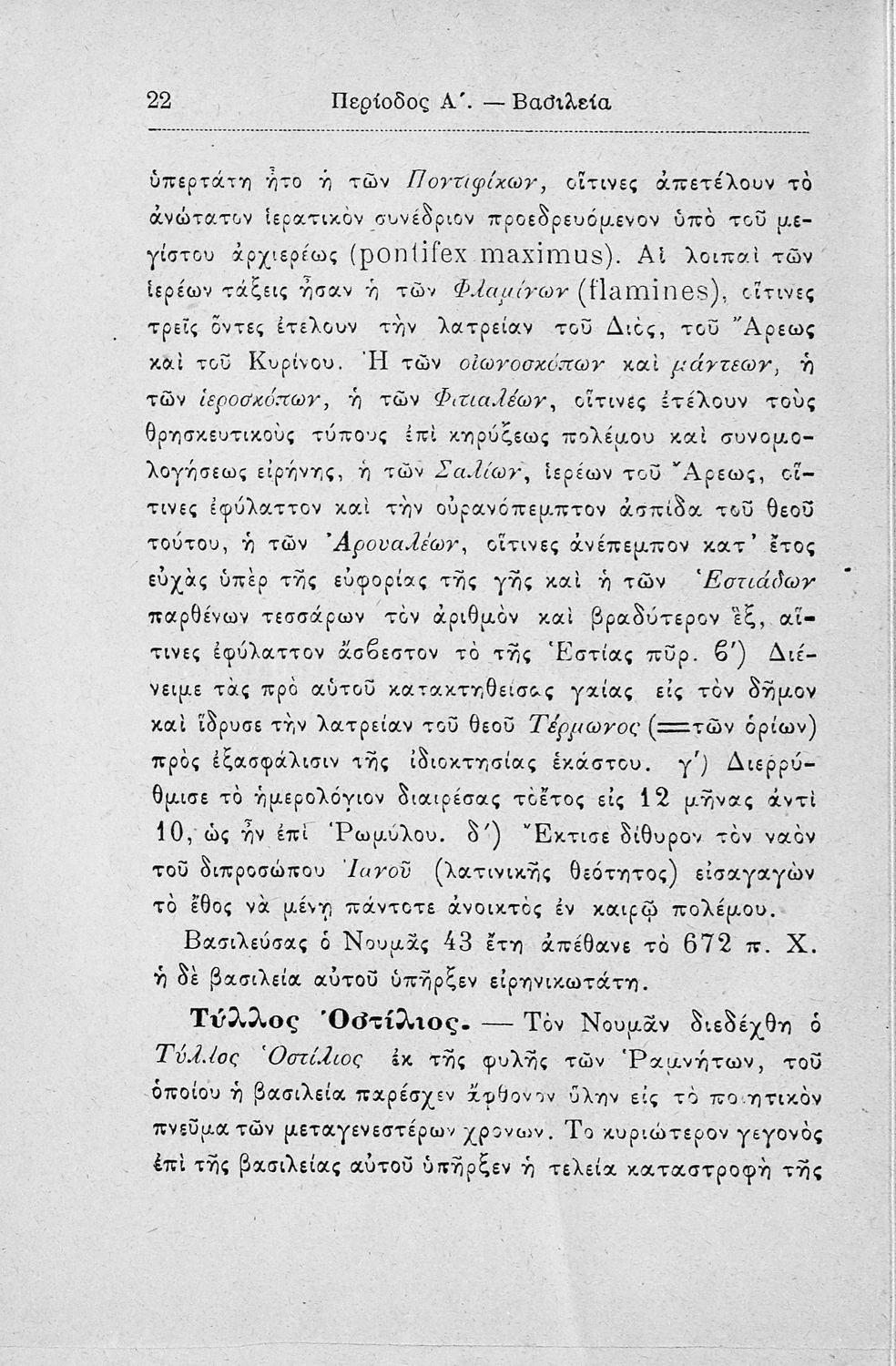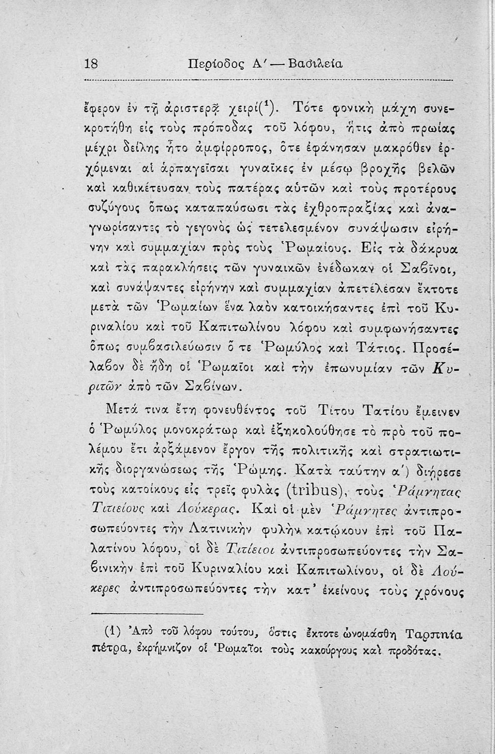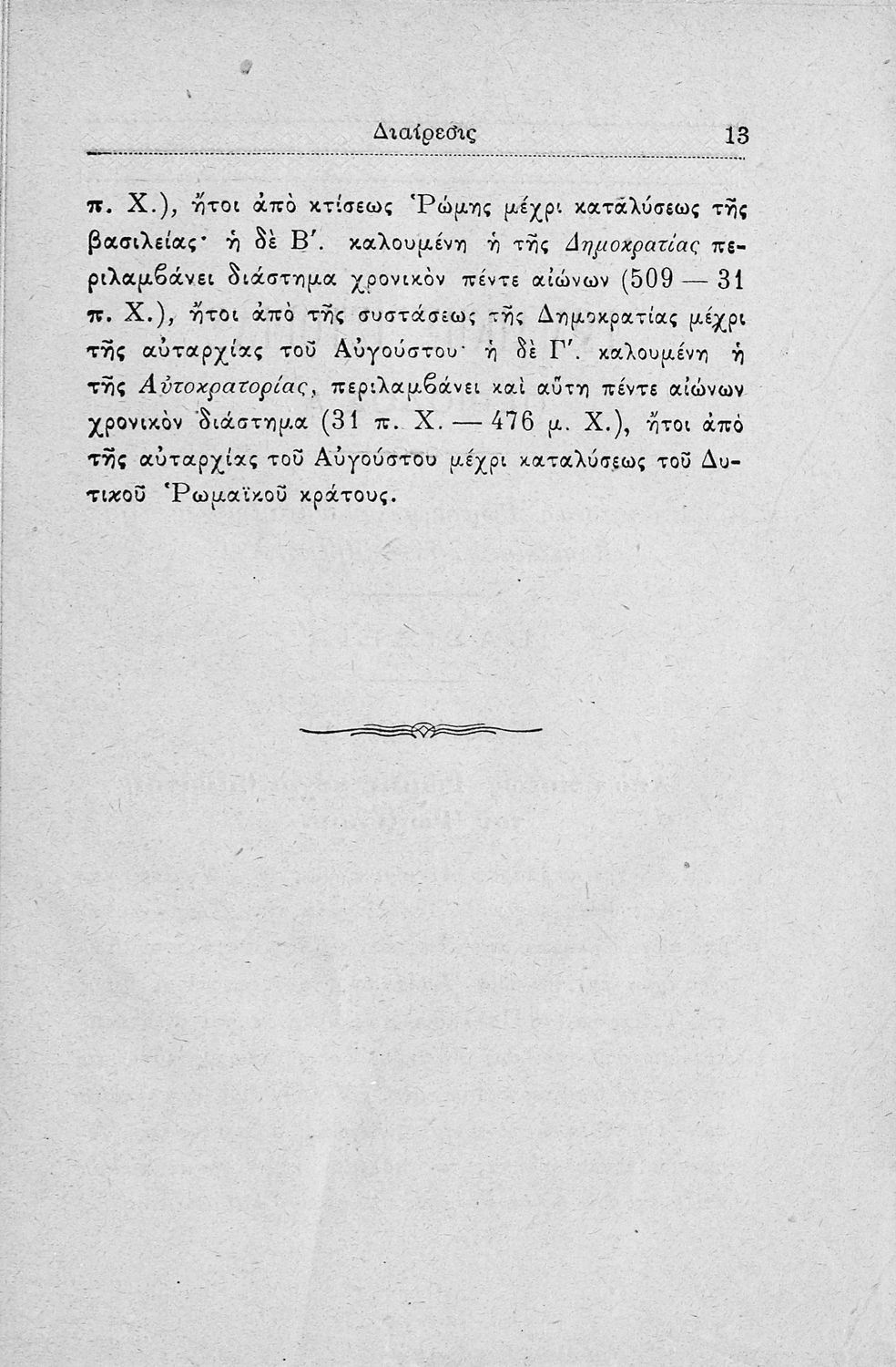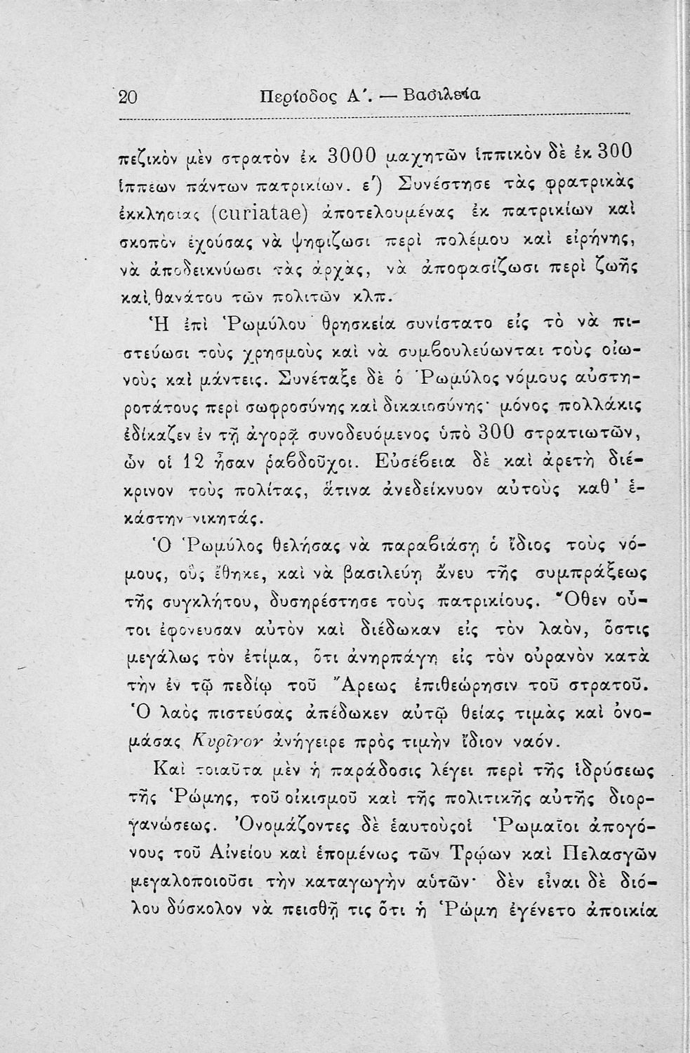 Βαθμίδα εκπαίδευσης: Δευτεροβάθμια Τάξη: Γυμνάσιο / Αστικό Σχολείο Μάθημα: Ιστορία Γλώσσα: Καθαρεύουσα Παρουσίαση περιεχομένου: Σχολικό εγχειρίδιο Ιστορίας για τα Γυμνάσια και τα Αστικά Σχολεία περιλαμβάνει την περίοδο από την ίδρυση της Ρώμης ως την κατάλυση του δυτικού ρωμαϊκού κράτους. |