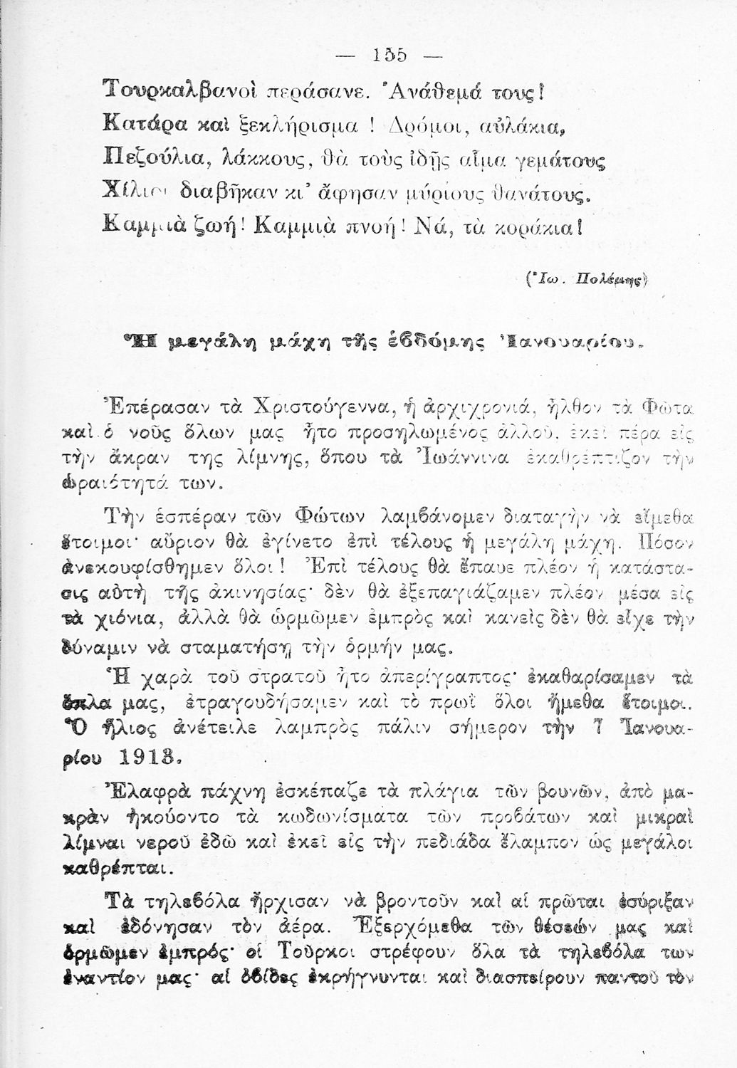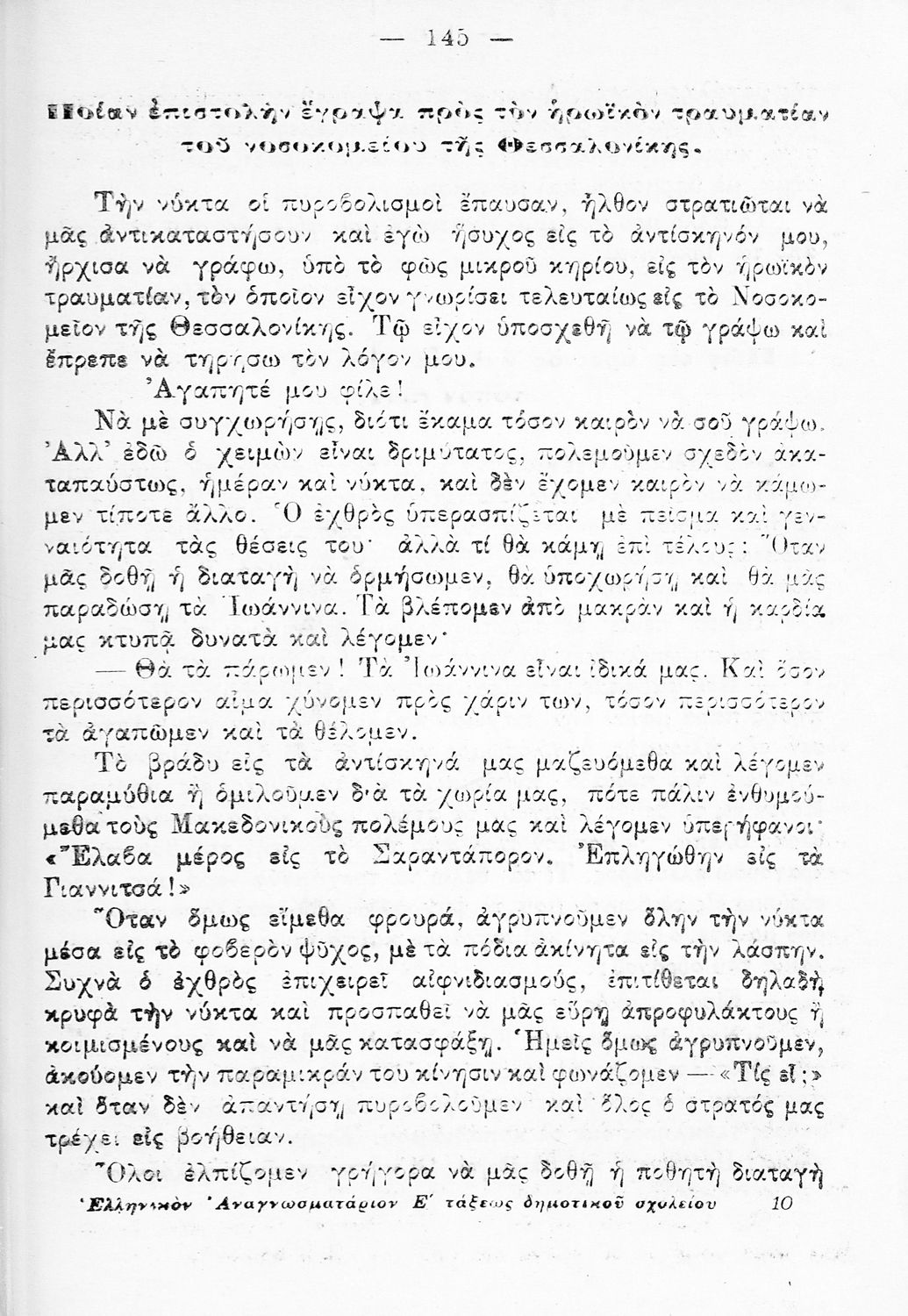 Αναγνωστικό Ε΄ Δημοτικού που περιλαμβάνει εξιστορήσεις πολεμικών γεγονότων εμπνευσμένες από την περίοδο του Βυζαντίου και των Βαλκανικών Πολέμων.