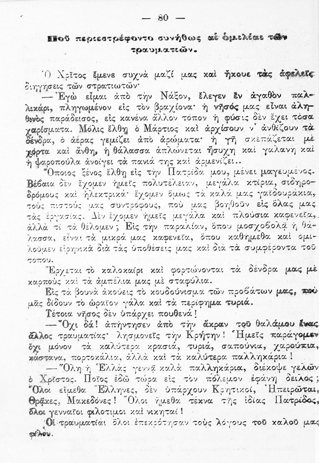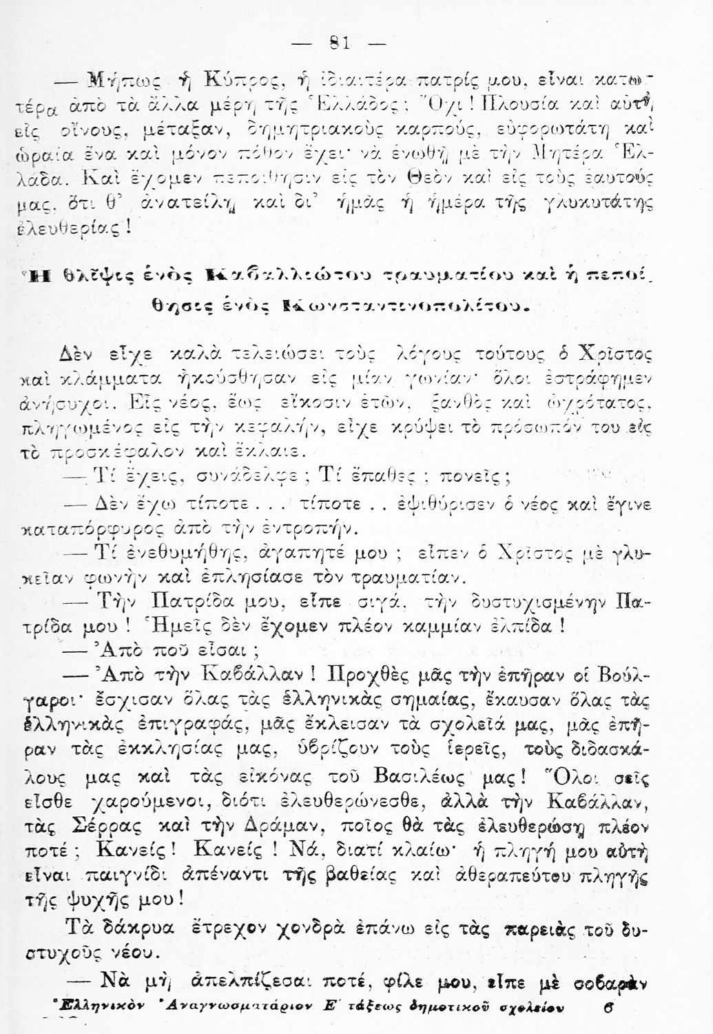 520 ## _aΑναγνωστικό Ε΄ Δημοτικού που περιλαμβάνει εξιστορήσεις πολεμικών γεγονότων εμπνευσμένες από την περίοδο του Βυζαντίου και των Βαλκανικών Πολέμων.