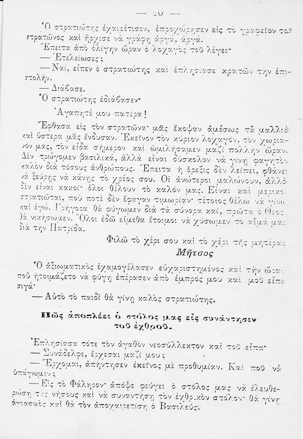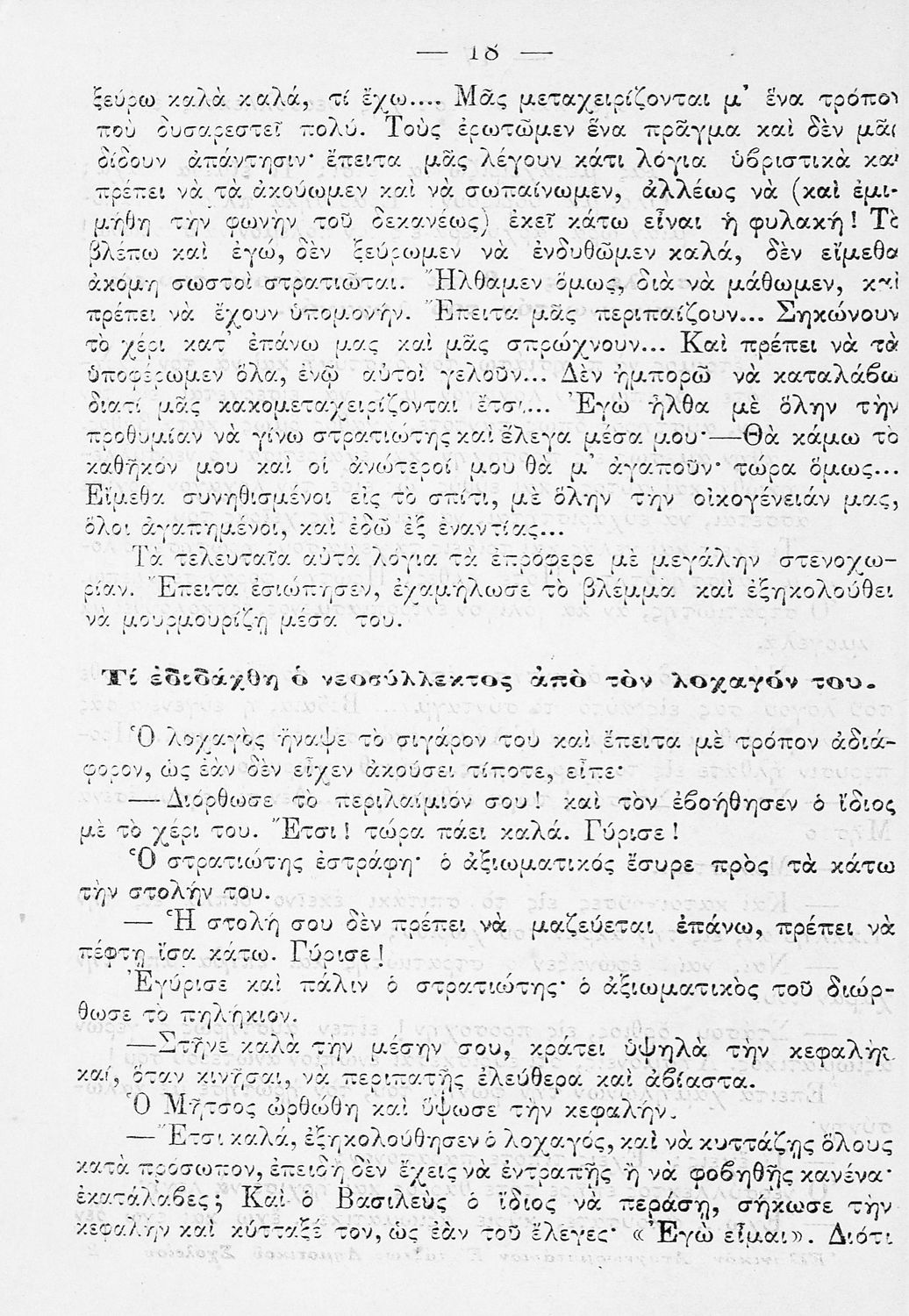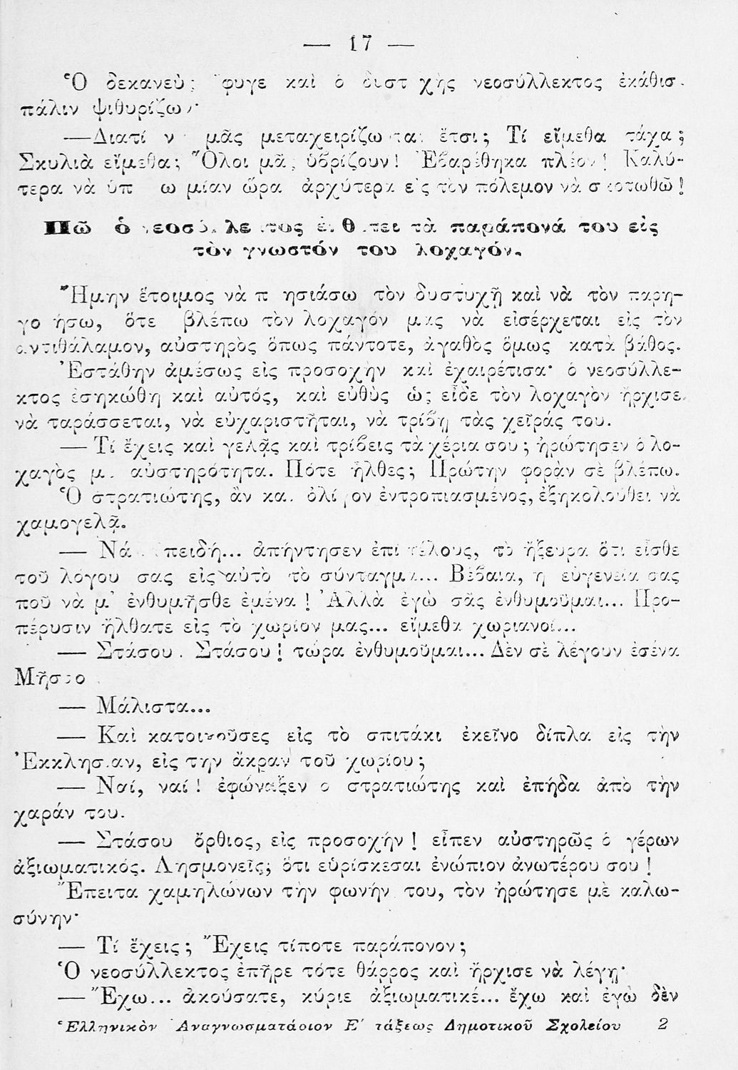 Ο στρατιώτης. Ελληνικόν αναγνωσματάριον προς χρήσιν των μαθητών της πέμπτης τάξης του Δημοτικού Σχολείου. Εγκριθέν κατά τον Νόμον ΓΣΑ΄ διά την τετραετίαν 1914-1918.