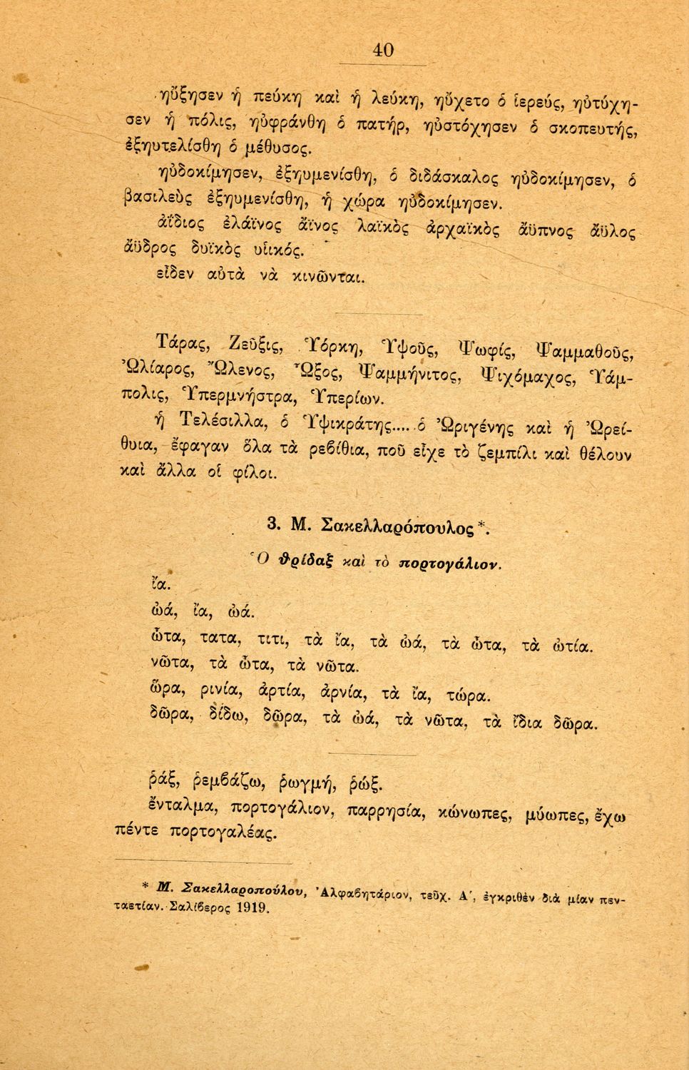 520 ## _aΚείμενο του Δ. Γληνού που, με σκωπτική διάθεση, αντιπαραβάλλει τα αναγνωστικά της πρώτης εκπαιδευτικής μεταρρύθμισης του Ε. Βενιζέλου όπως Τα ψηλά βουνά ή Το Αλφαβητάρι με τον ήλιο με αυτά της προηγούμενης περιόδου από όπου και αντλεί τον τίτλο του βιβλίου.