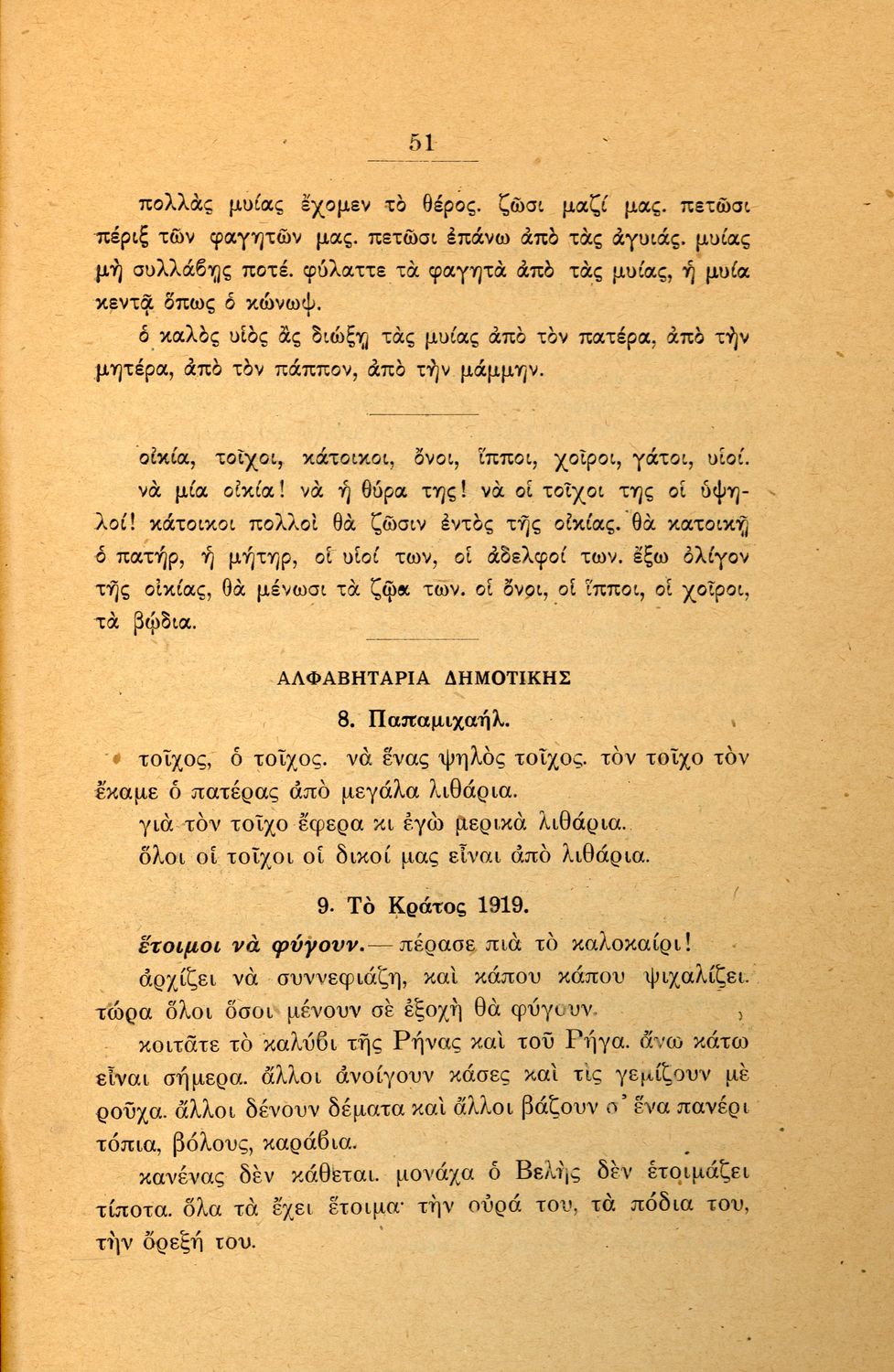 520 ## _aΚείμενο του Δ. Γληνού που, με σκωπτική διάθεση, αντιπαραβάλλει τα αναγνωστικά της πρώτης εκπαιδευτικής μεταρρύθμισης του Ε. Βενιζέλου όπως Τα ψηλά βουνά ή Το Αλφαβητάρι με τον ήλιο με αυτά της προηγούμενης περιόδου από όπου και αντλεί τον τίτλο του βιβλίου.