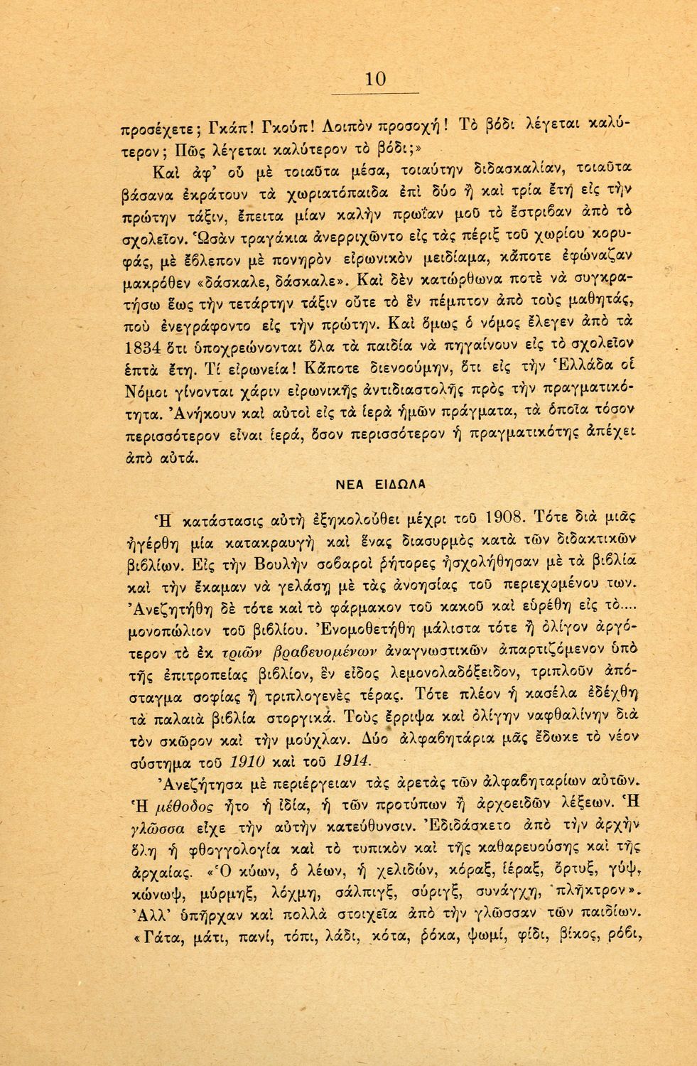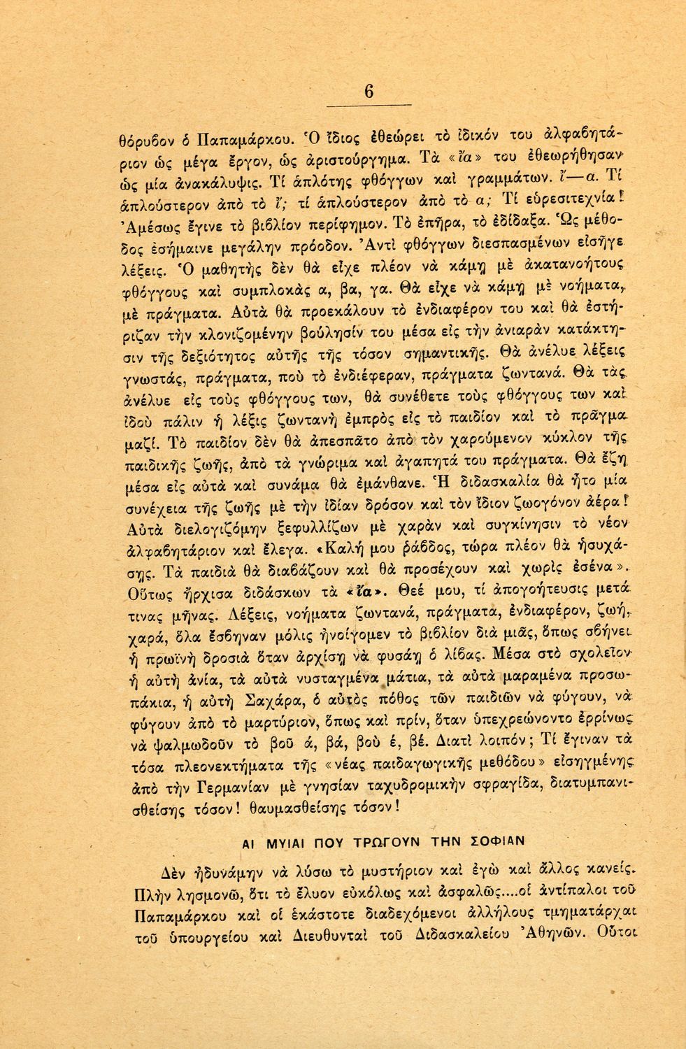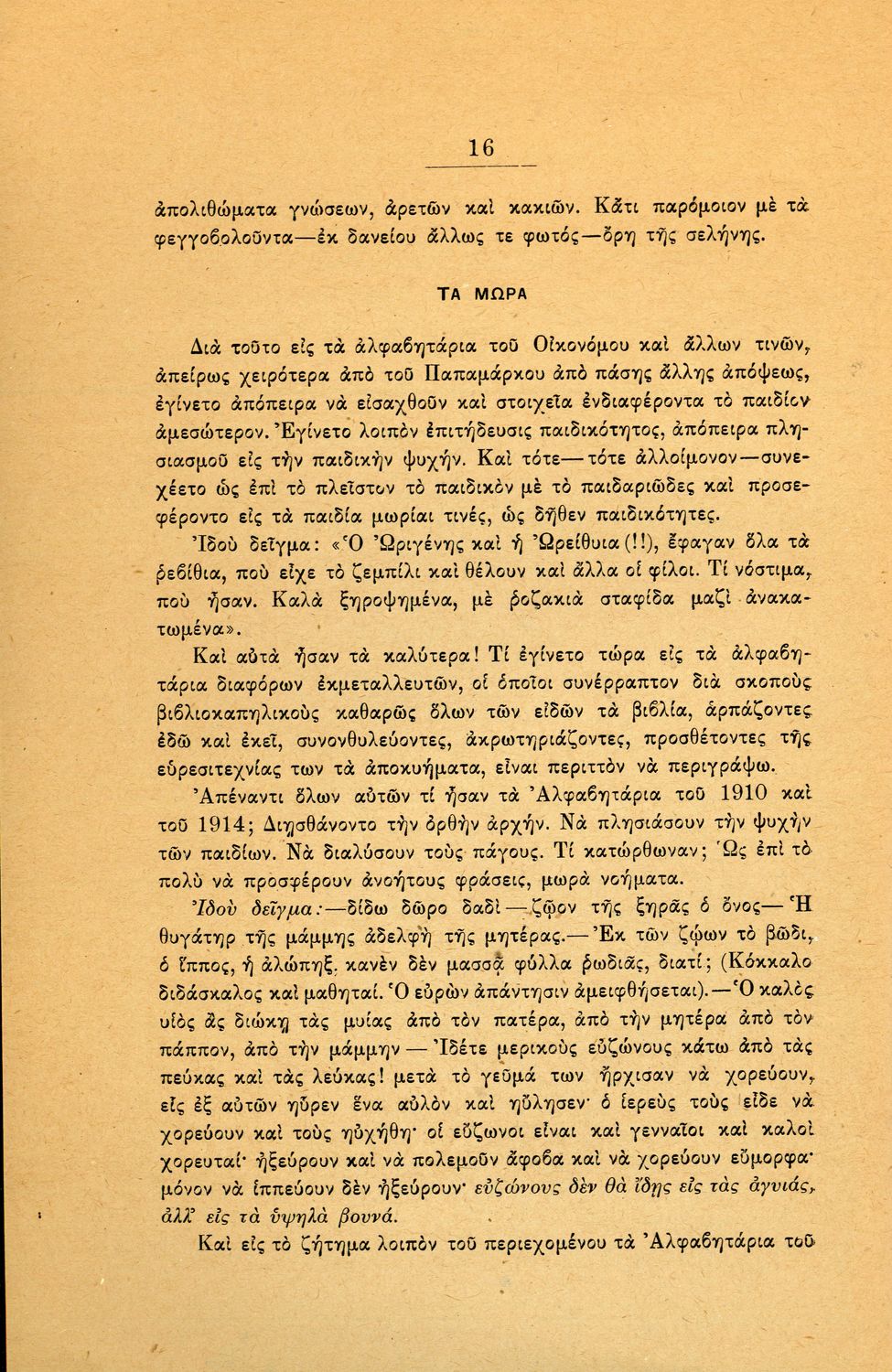 Κείμενο του Δ. Γληνού που, με σκωπτική διάθεση, αντιπαραβάλλει τα αναγνωστικά της πρώτης εκπαιδευτικής μεταρρύθμισης του Ε. Βενιζέλου όπως Τα ψηλά βουνά ή Το Αλφαβητάρι με τον ήλιο με αυτά της προηγούμενης ...